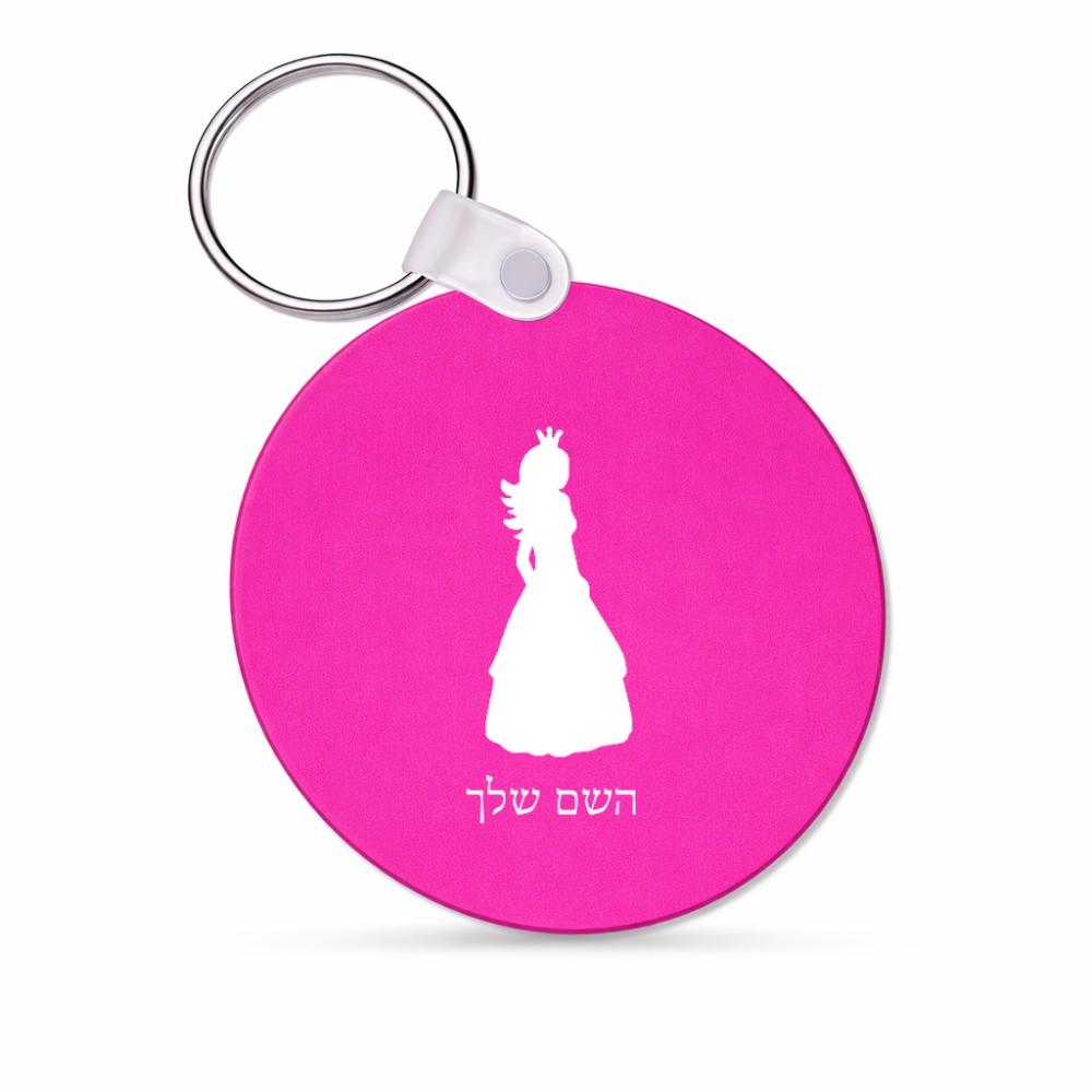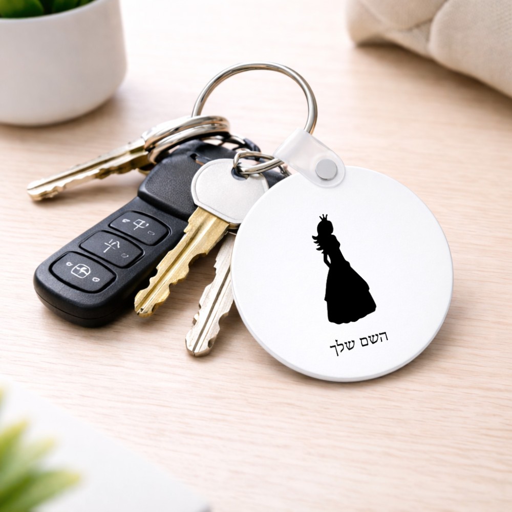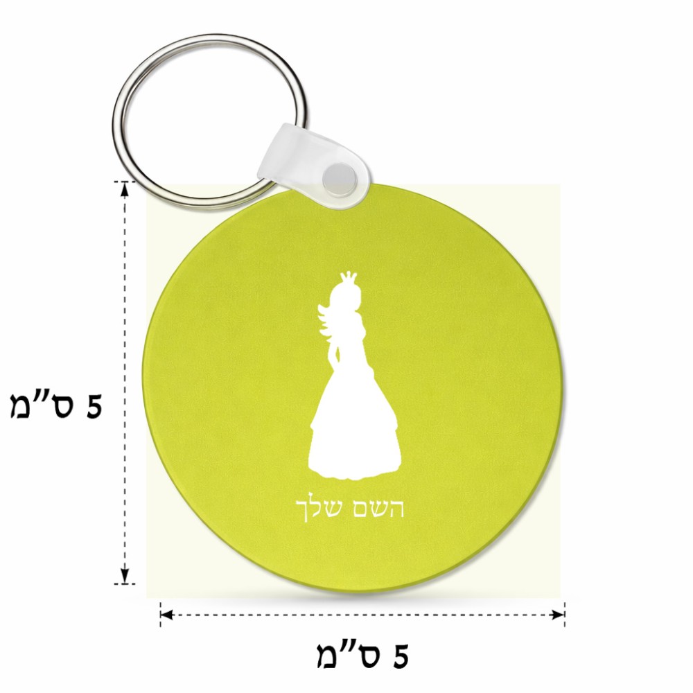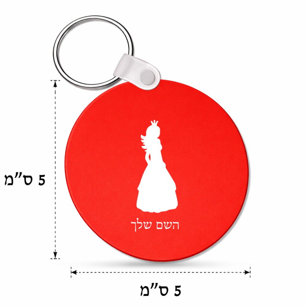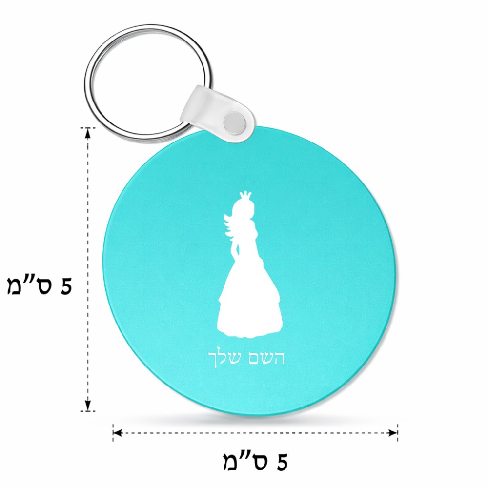 מחזיק מפתחות בצורת עיגול בעיצוב אישי עם השם שלך בעיצוב נסיכה גודל המחזיק 5 × 5 ס"מ. את השם המבוקש ניתן לציין בהזמנה, אם לא צויין אנחנו ניצור קשר לבירור.