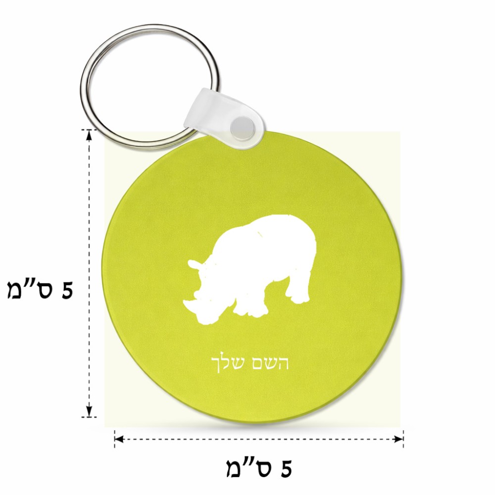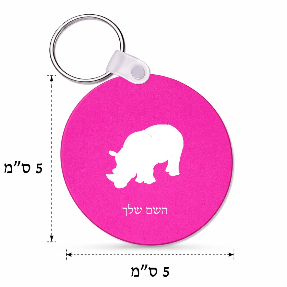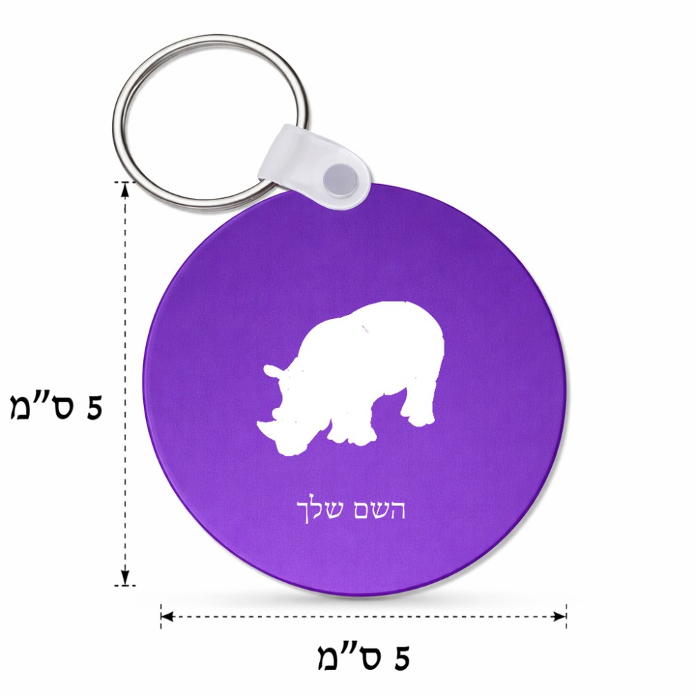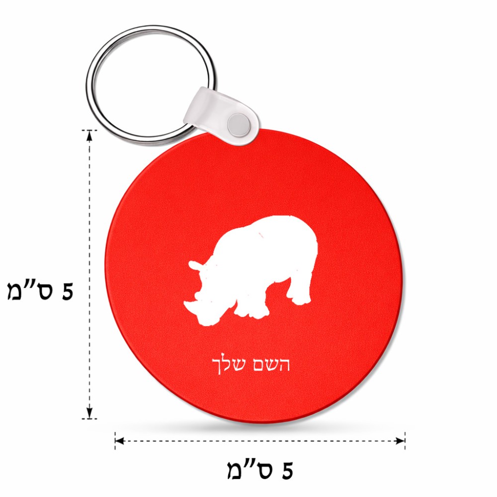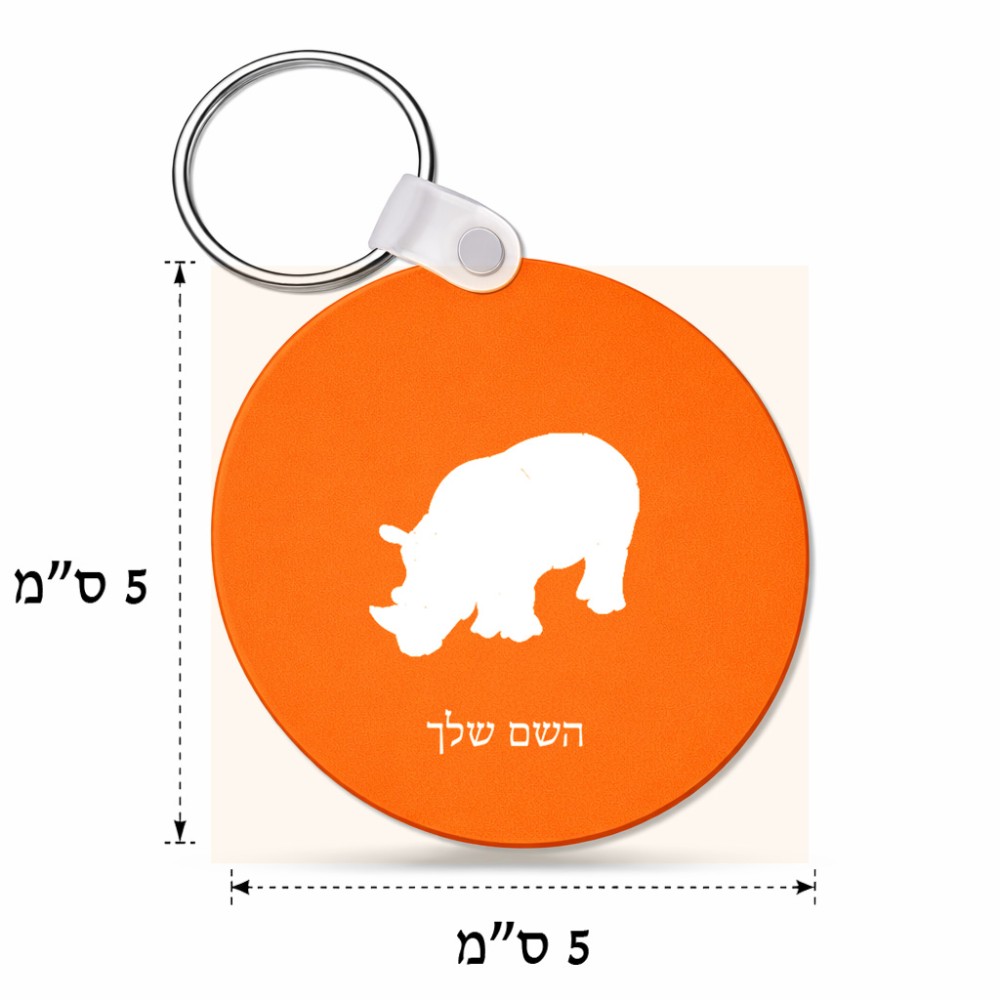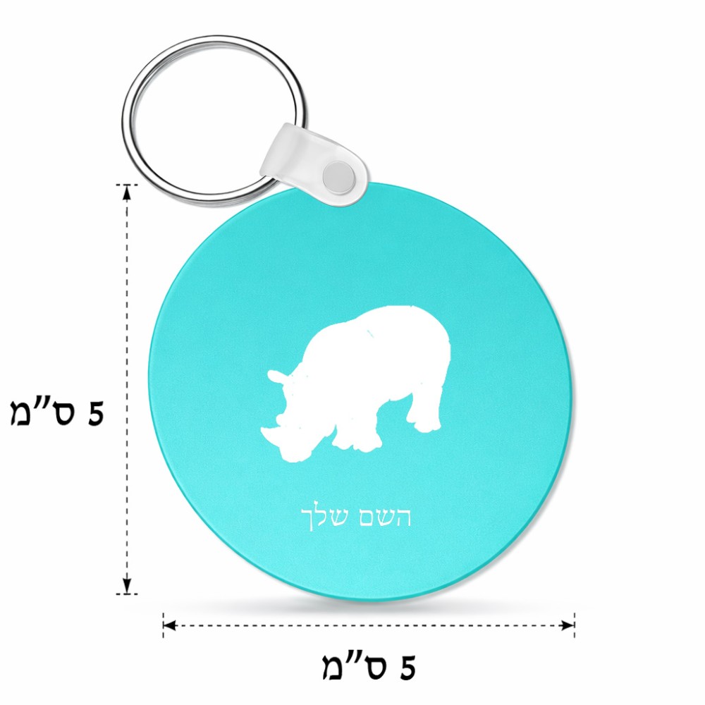 מחזיק מפתחות בצורת עיגול בעיצוב אישי עם השם שלך בעיצוב קרנף גודל המחזיק 5 × 5 ס"מ. את השם המבוקש ניתן לציין בהזמנה, אם לא צויין אנחנו ניצור קשר לבירור.