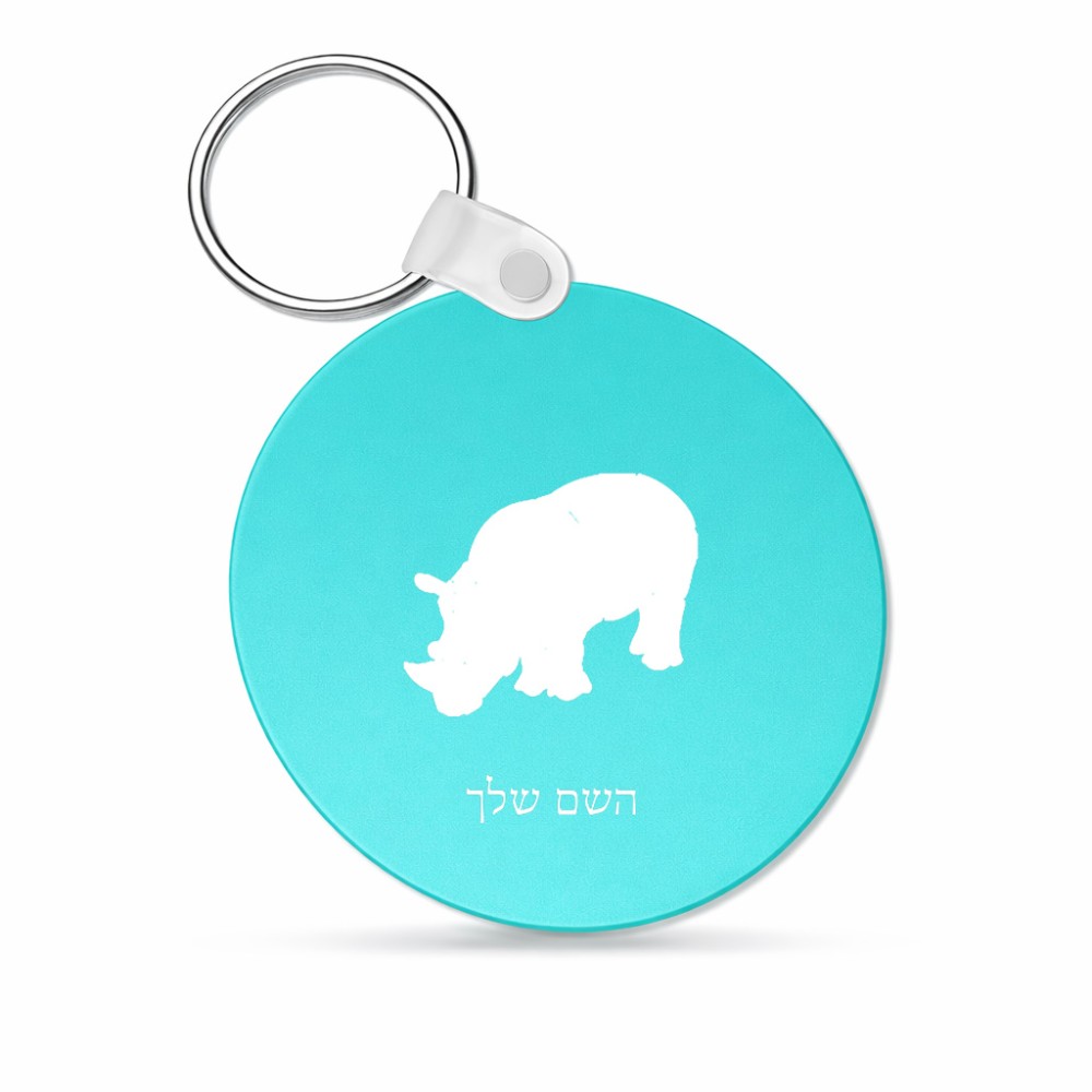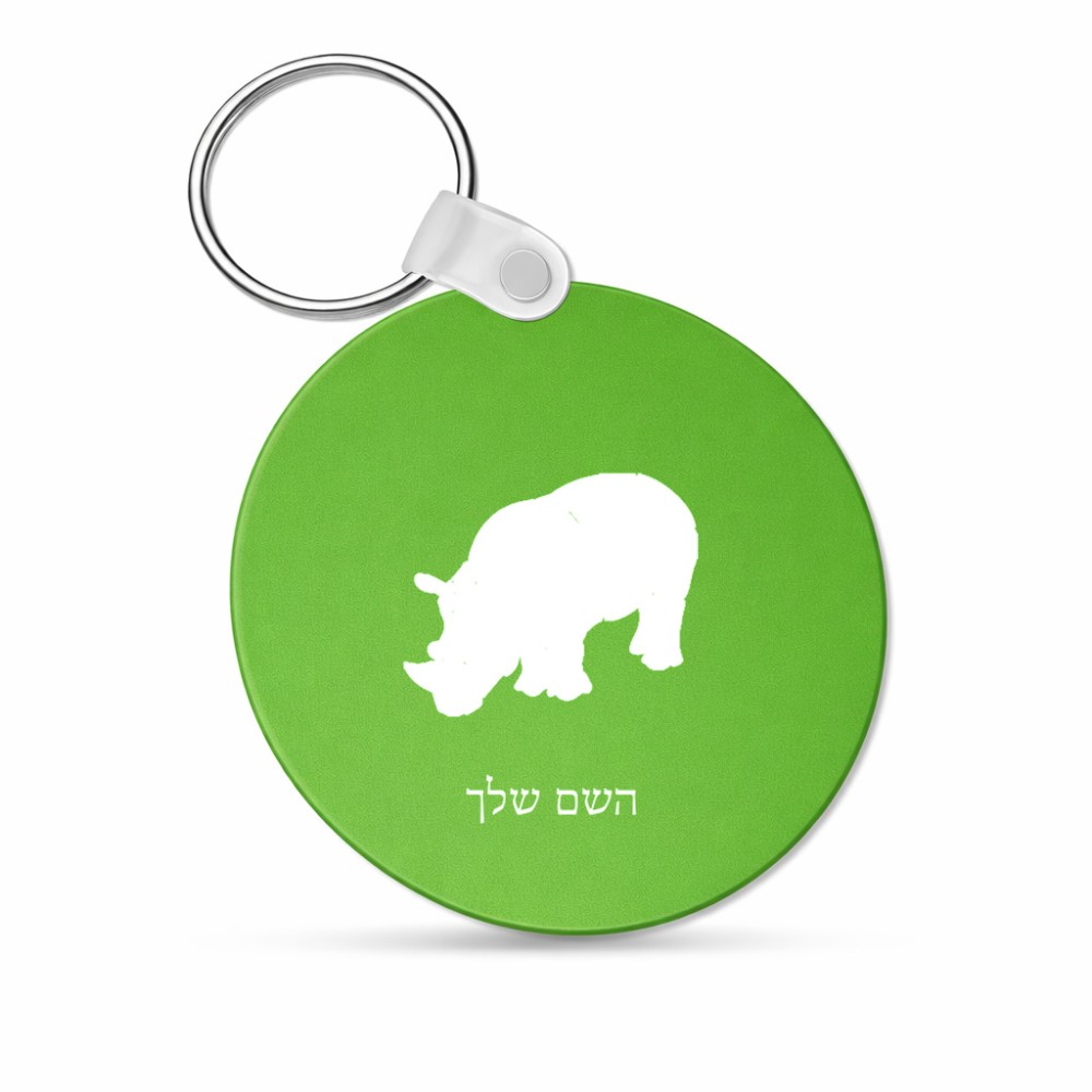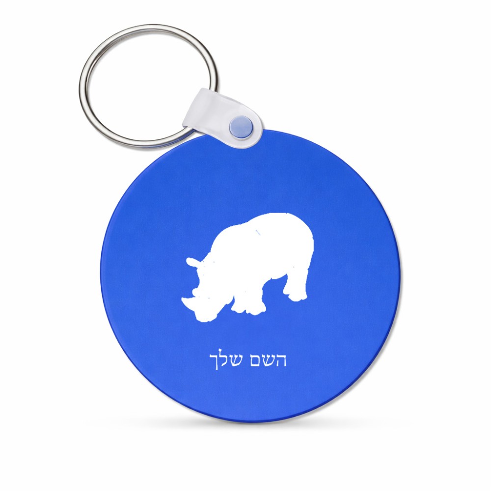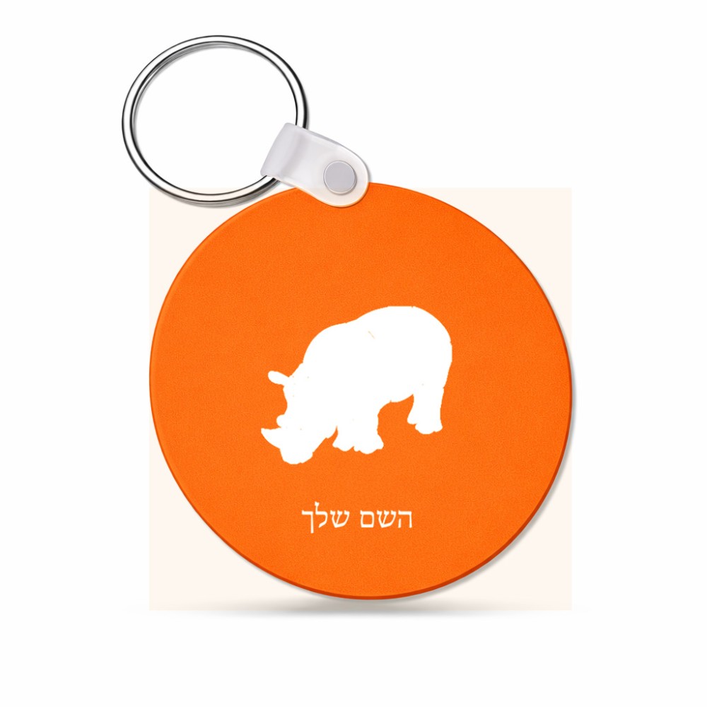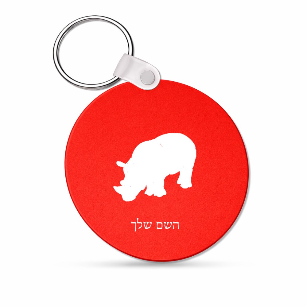 מחזיק מפתחות בצורת עיגול בעיצוב אישי עם השם שלך בעיצוב קרנף גודל המחזיק 5 × 5 ס"מ. את השם המבוקש ניתן לציין בהזמנה, אם לא צויין אנחנו ניצור קשר לבירור.
