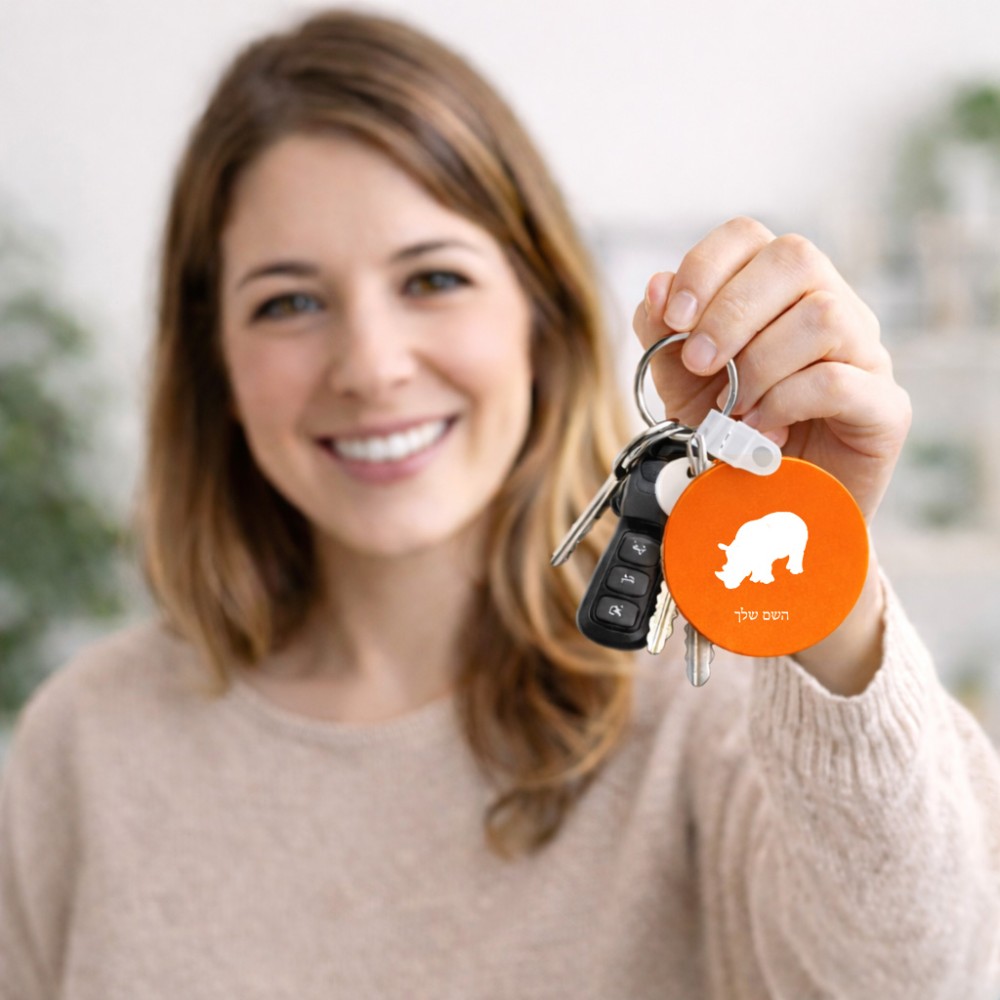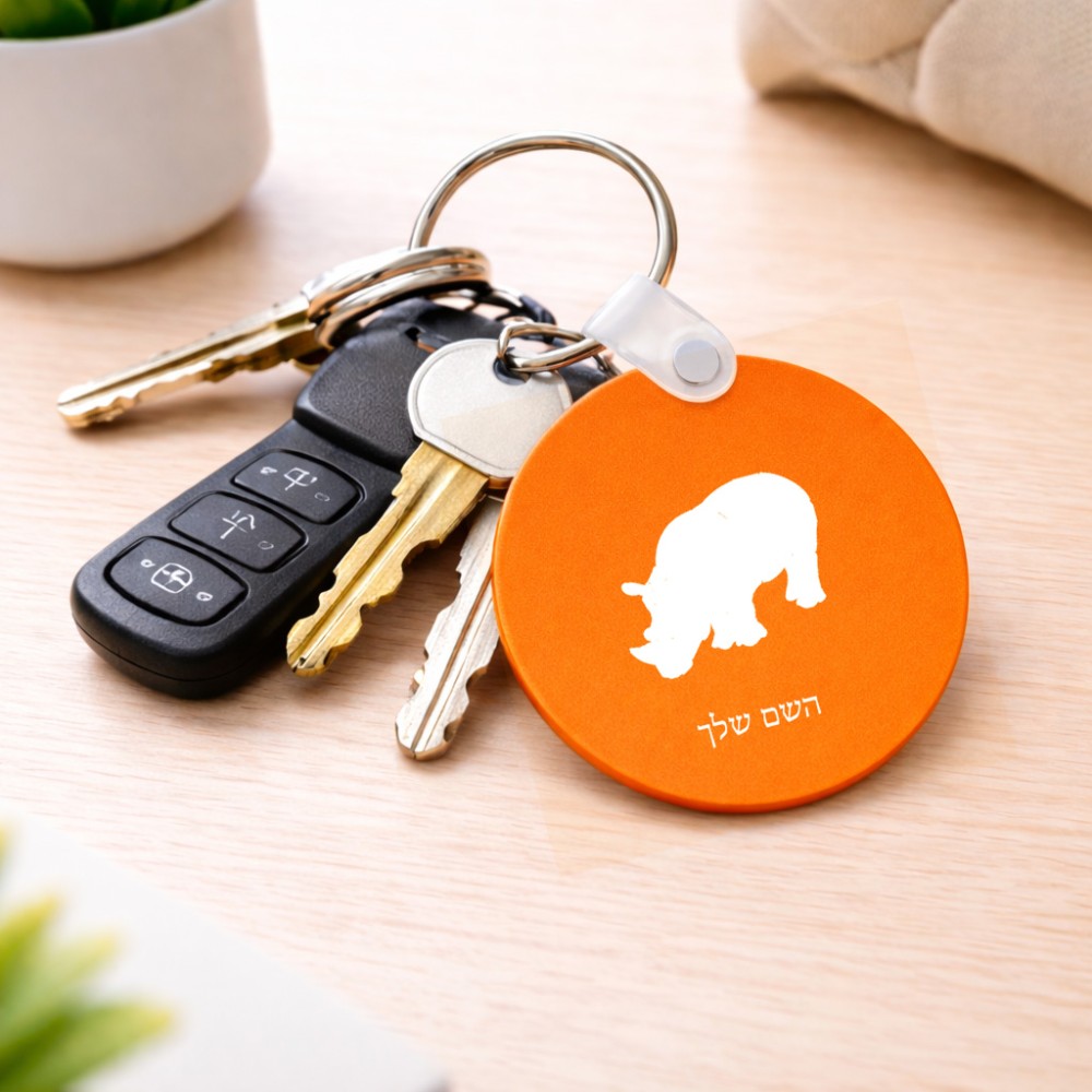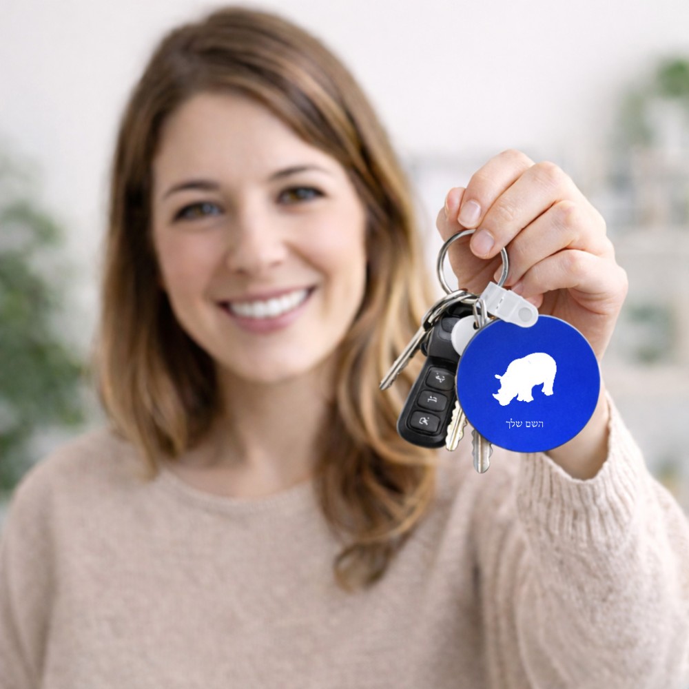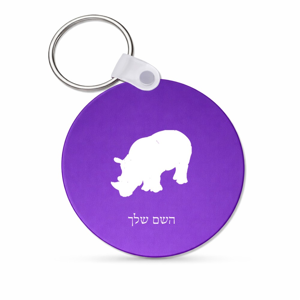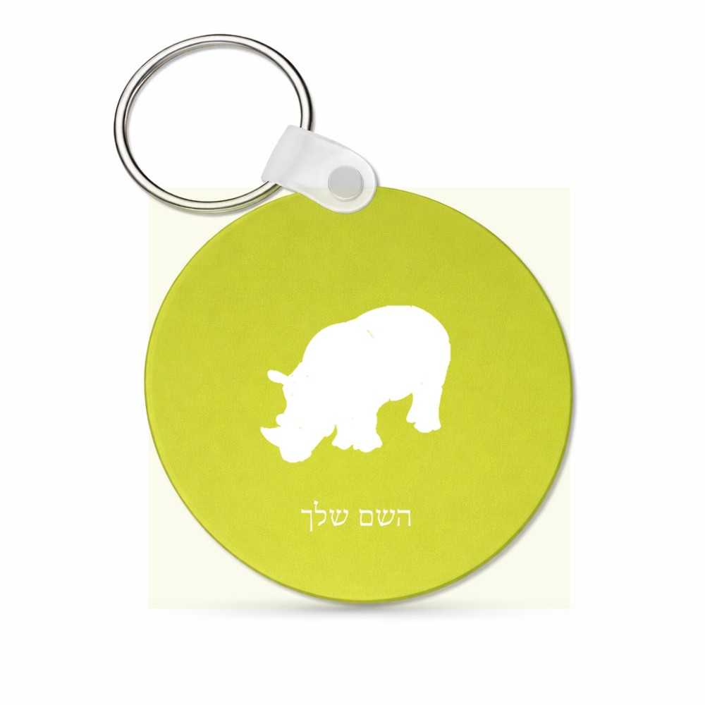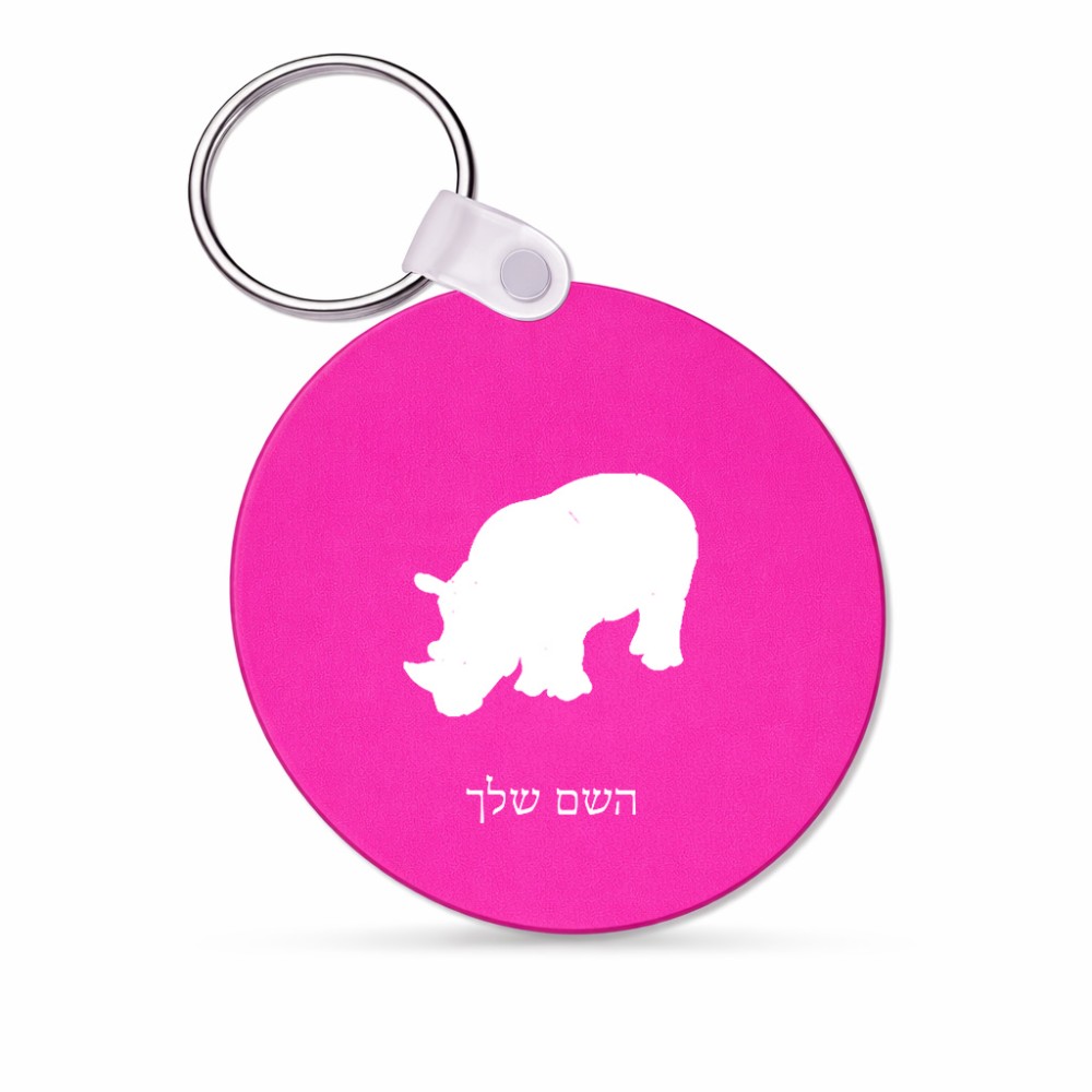 מחזיק מפתחות בצורת עיגול בעיצוב אישי עם השם שלך בעיצוב קרנף גודל המחזיק 5 × 5 ס"מ. את השם המבוקש ניתן לציין בהזמנה, אם לא צויין אנחנו ניצור קשר לבירור.