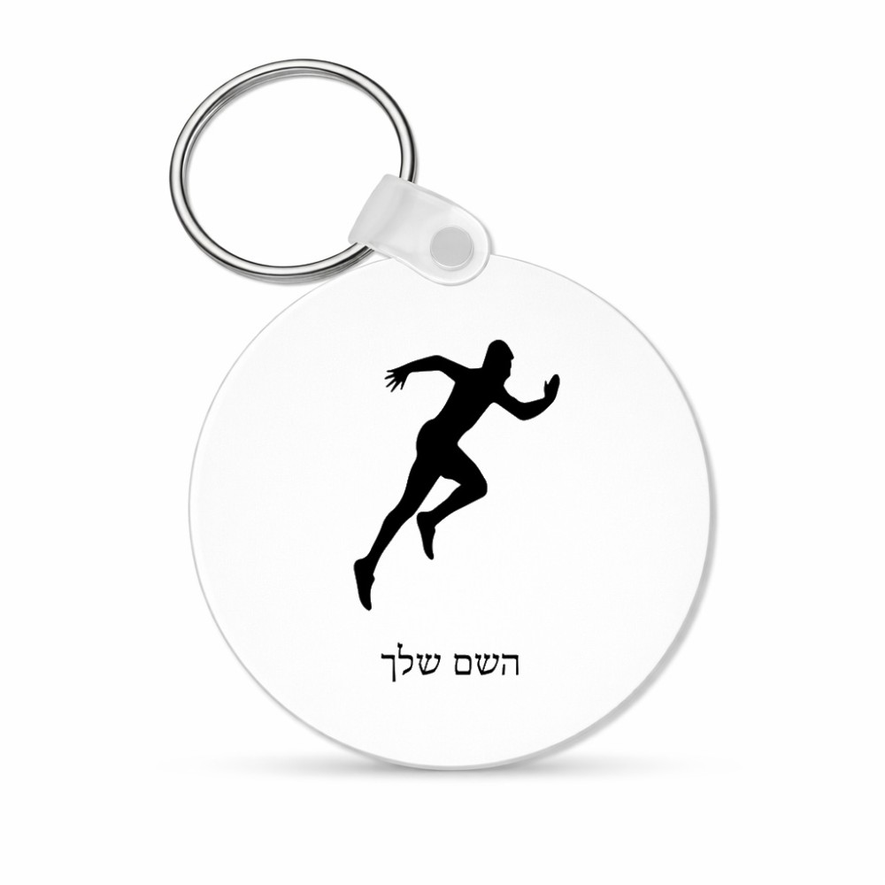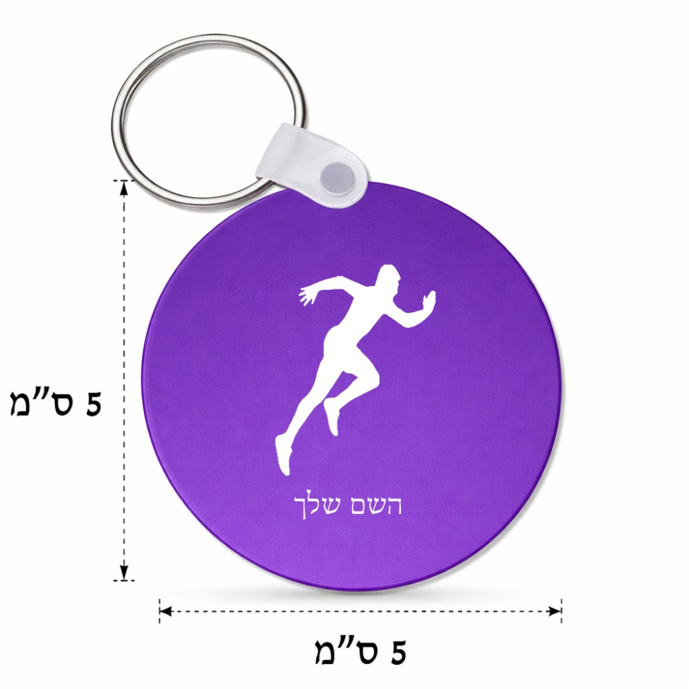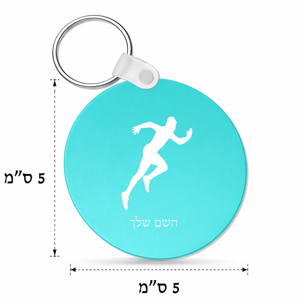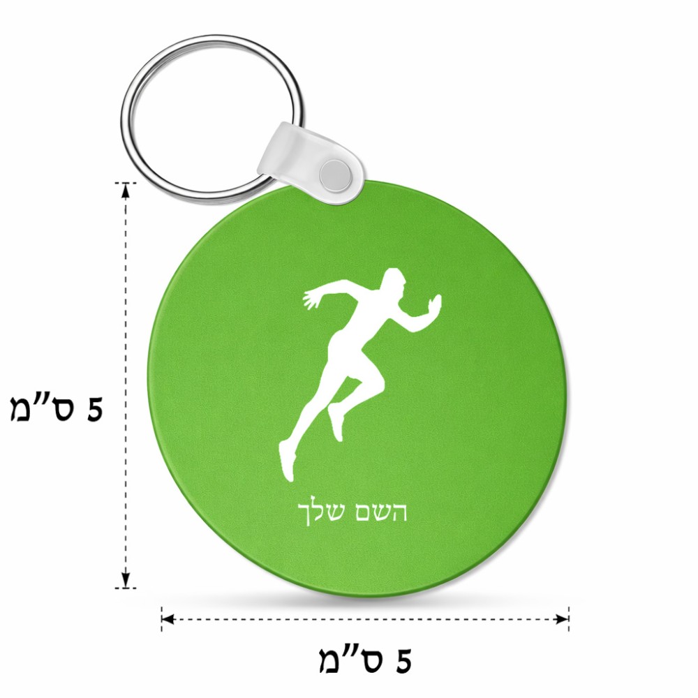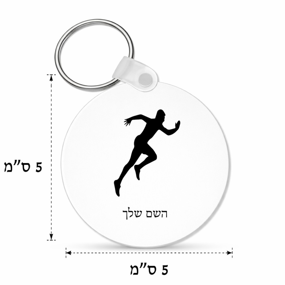 מחזיק מפתחות בצורת עיגול בעיצוב אישי עם השם שלך בעיצוב רץ גודל המחזיק 5 × 5 ס"מ. את השם המבוקש ניתן לציין בהזמנה, אם לא צויין אנחנו ניצור קשר לבירור.