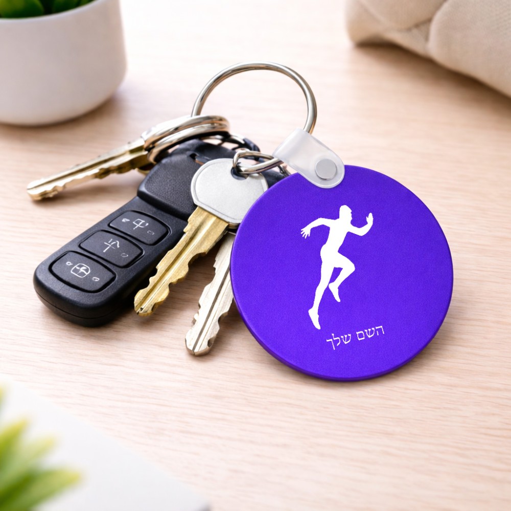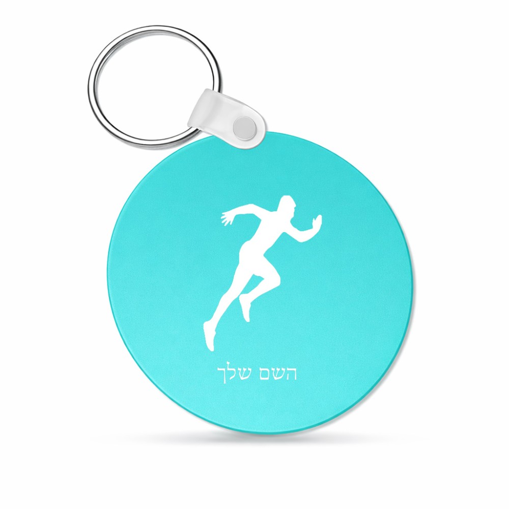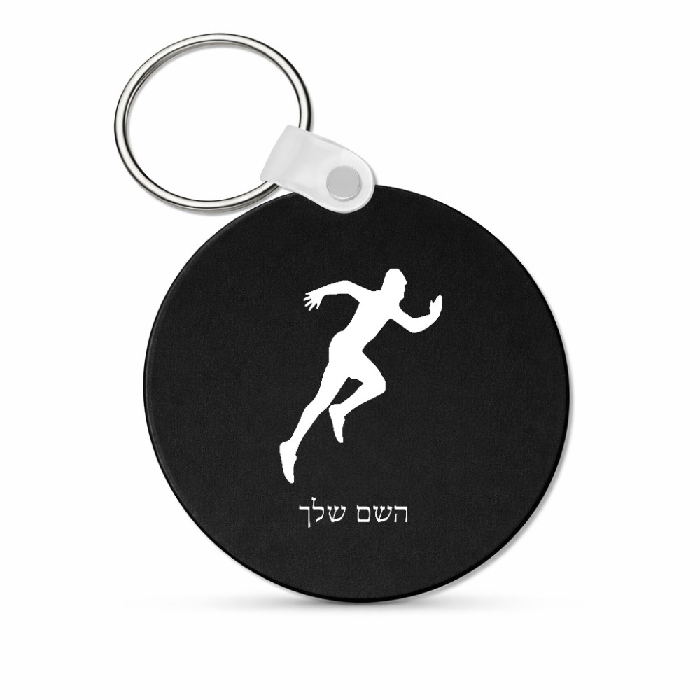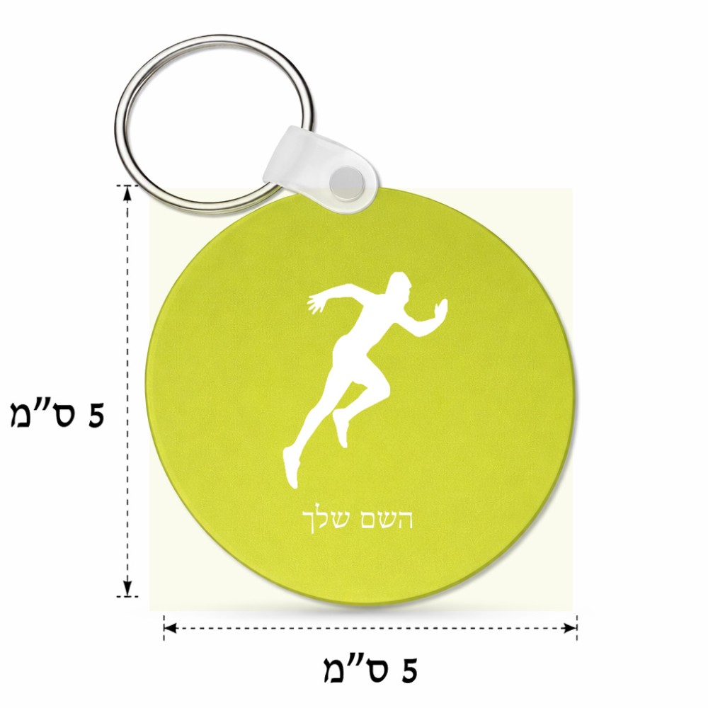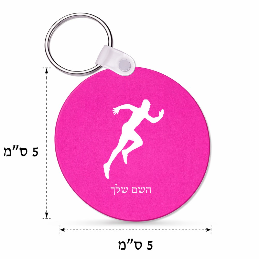 מחזיק מפתחות בצורת עיגול בעיצוב אישי עם השם שלך בעיצוב רץ גודל המחזיק 5 × 5 ס"מ. את השם המבוקש ניתן לציין בהזמנה, אם לא צויין אנחנו ניצור קשר לבירור.