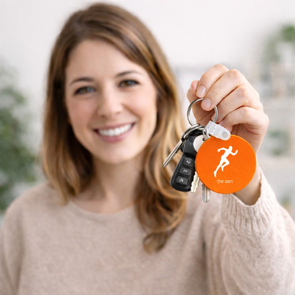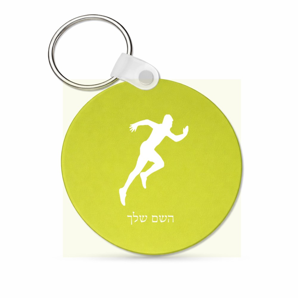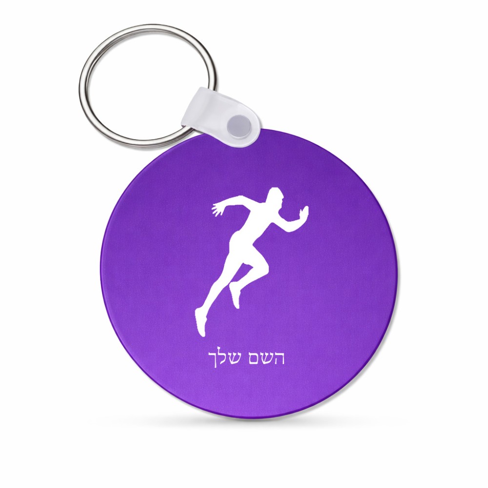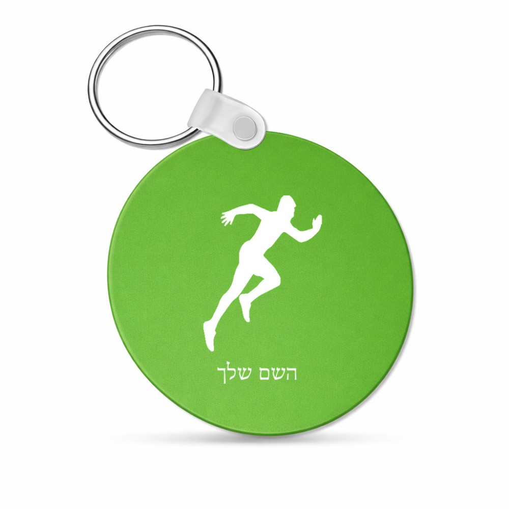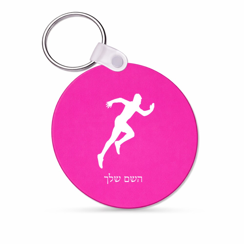 מחזיק מפתחות בצורת עיגול בעיצוב אישי עם השם שלך בעיצוב רץ גודל המחזיק 5 × 5 ס"מ. את השם המבוקש ניתן לציין בהזמנה, אם לא צויין אנחנו ניצור קשר לבירור.