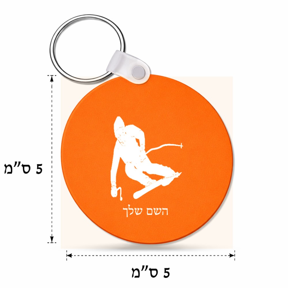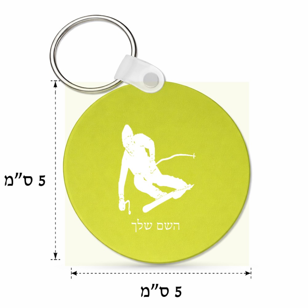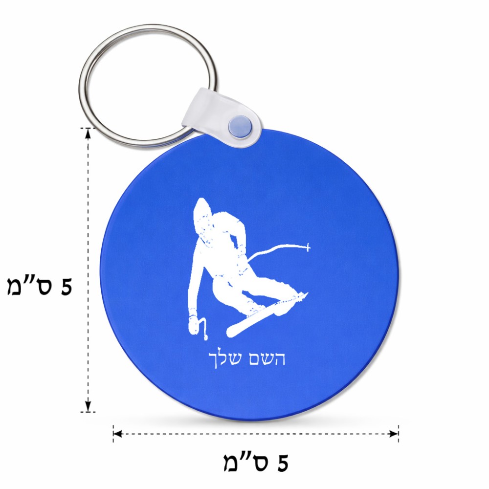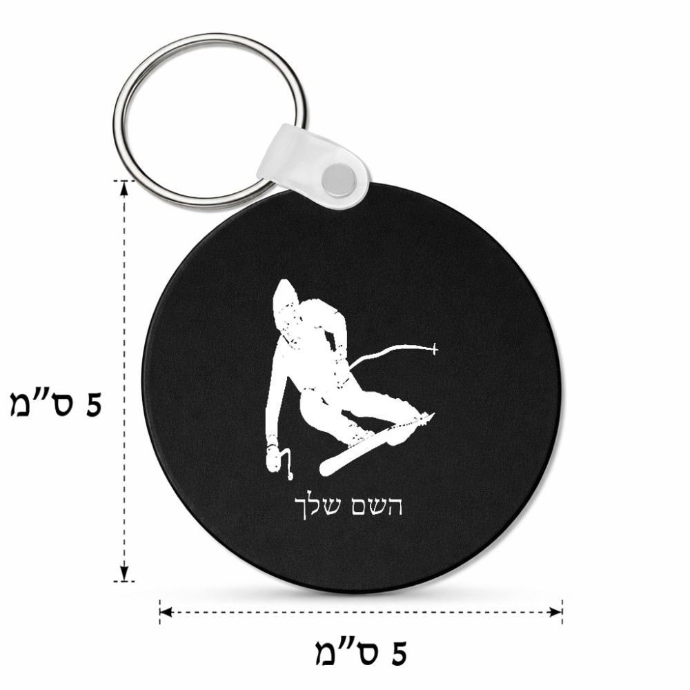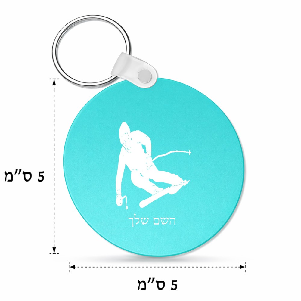 מחזיק מפתחות בצורת עיגול בעיצוב אישי עם השם שלך בעיצוב סקי גודל המחזיק 5 × 5 ס"מ. את השם המבוקש ניתן לציין בהזמנה, אם לא צויין אנחנו ניצור קשר לבירור.