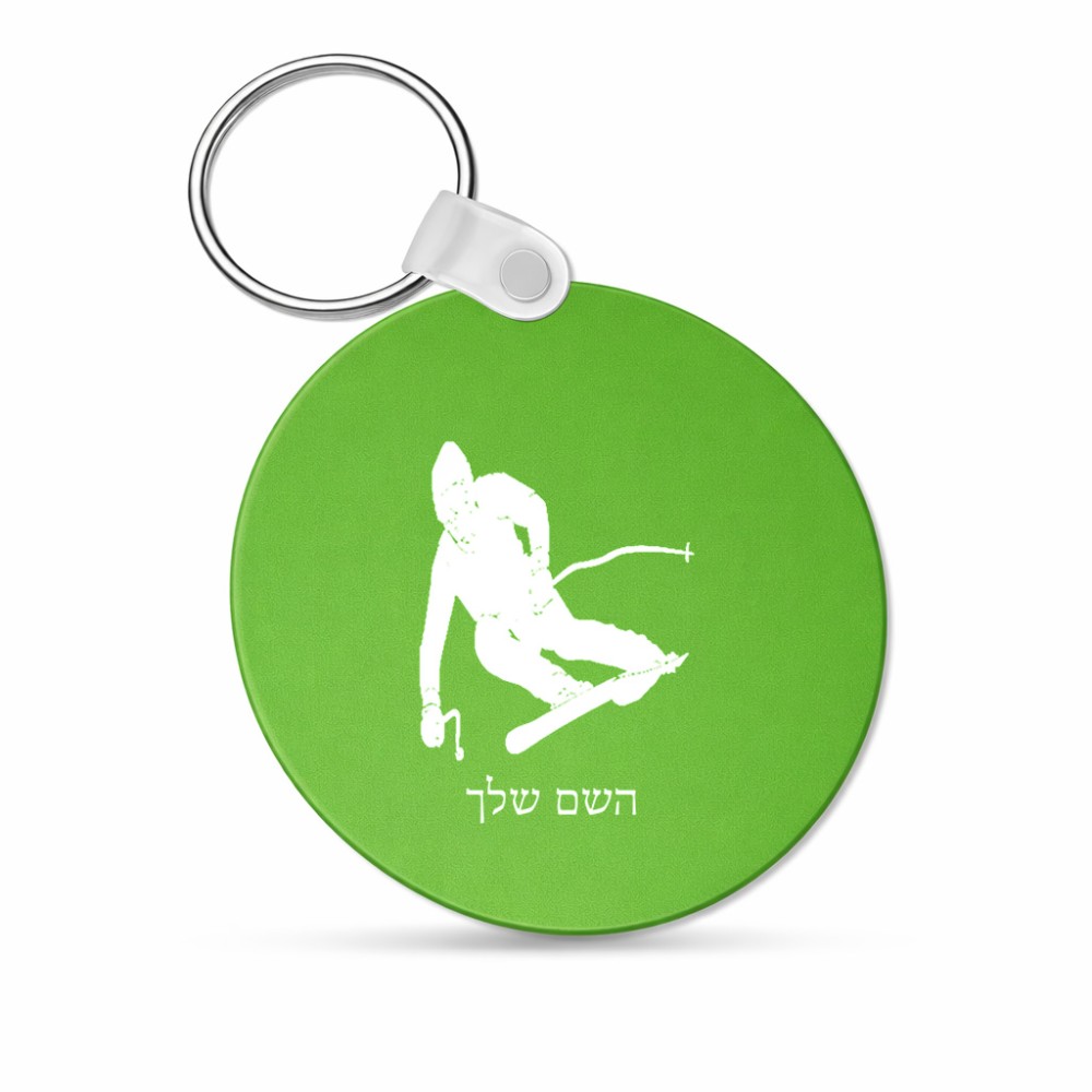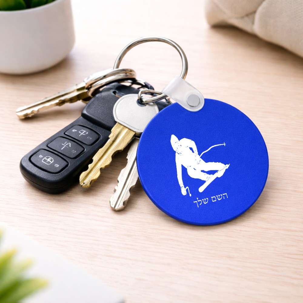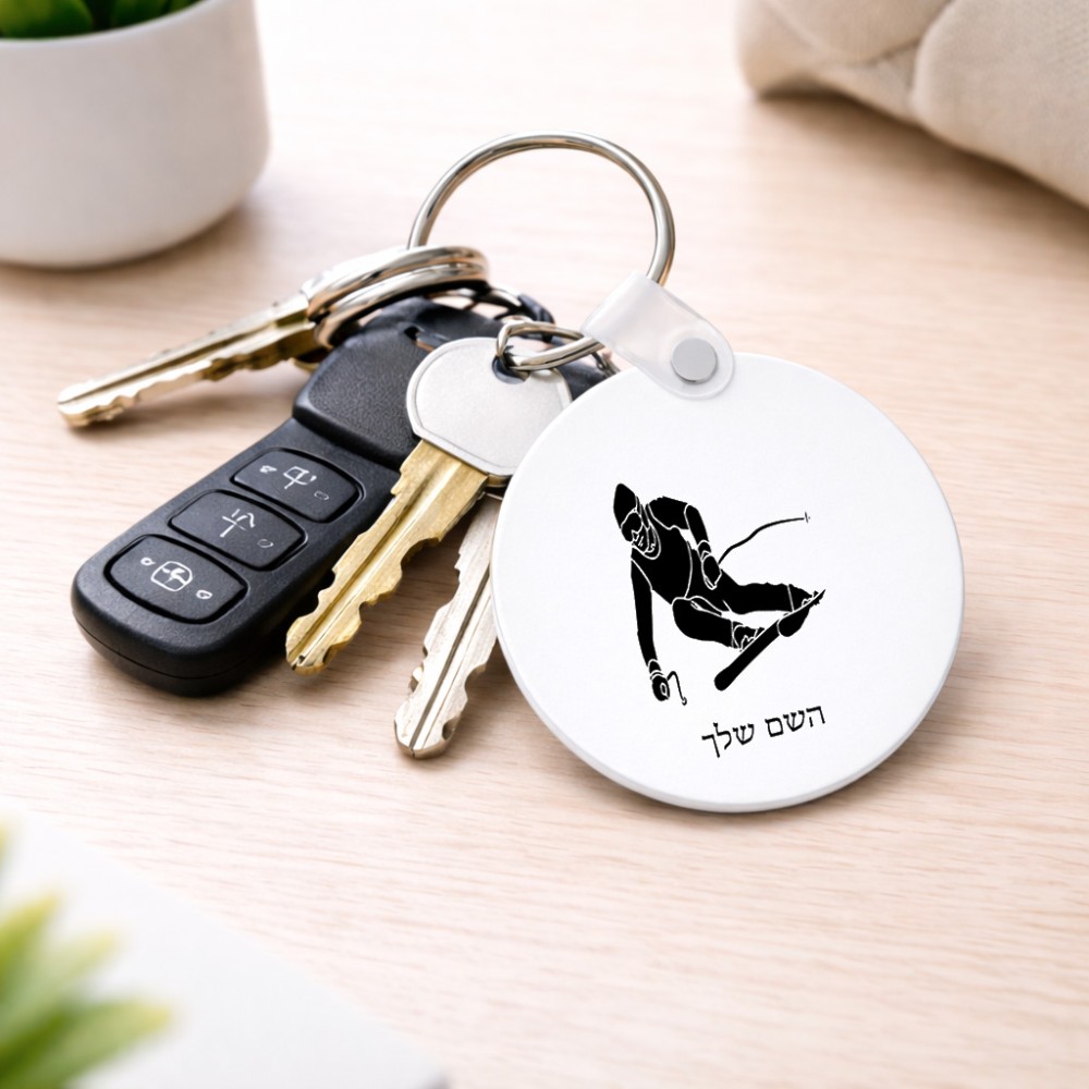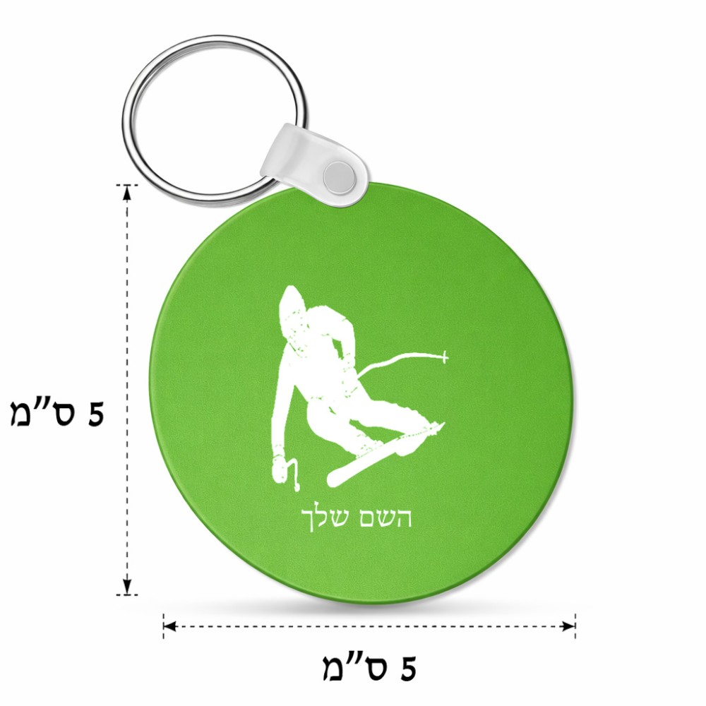 מחזיק מפתחות בצורת עיגול בעיצוב אישי עם השם שלך בעיצוב סקי גודל המחזיק 5 × 5 ס"מ. את השם המבוקש ניתן לציין בהזמנה, אם לא צויין אנחנו ניצור קשר לבירור.