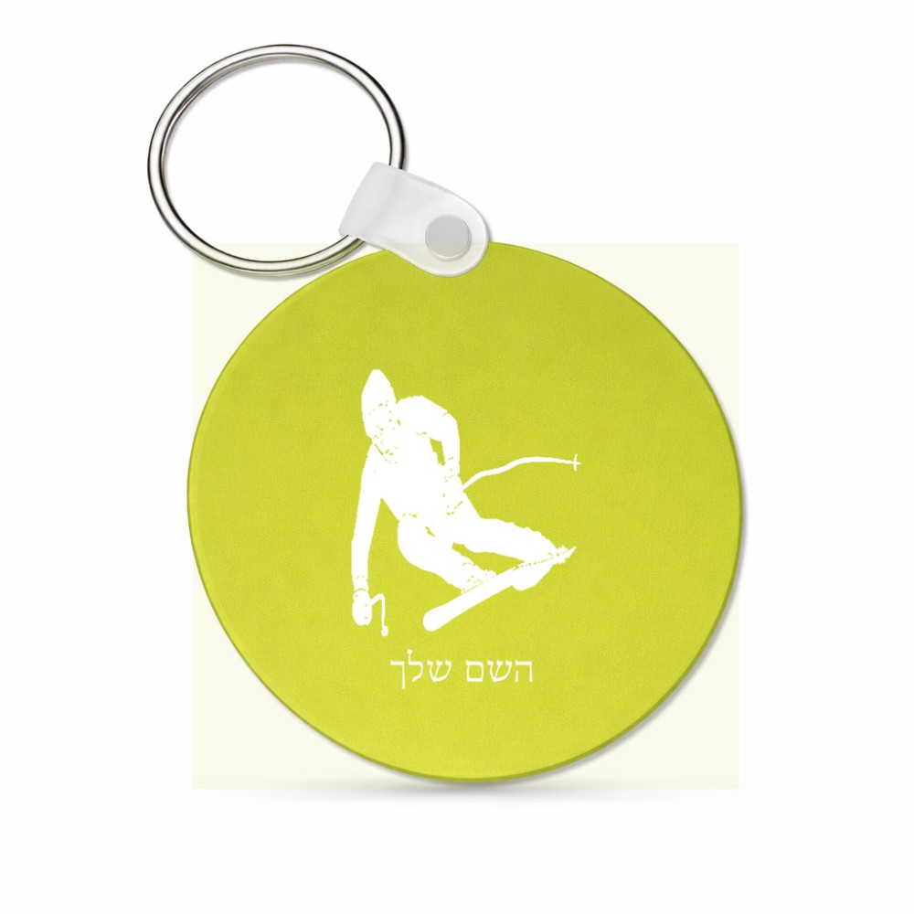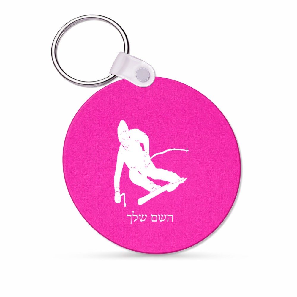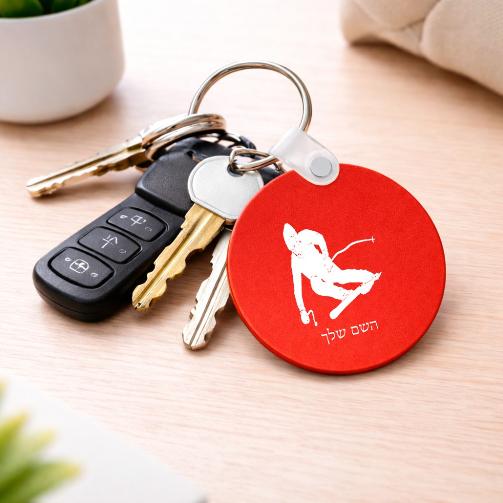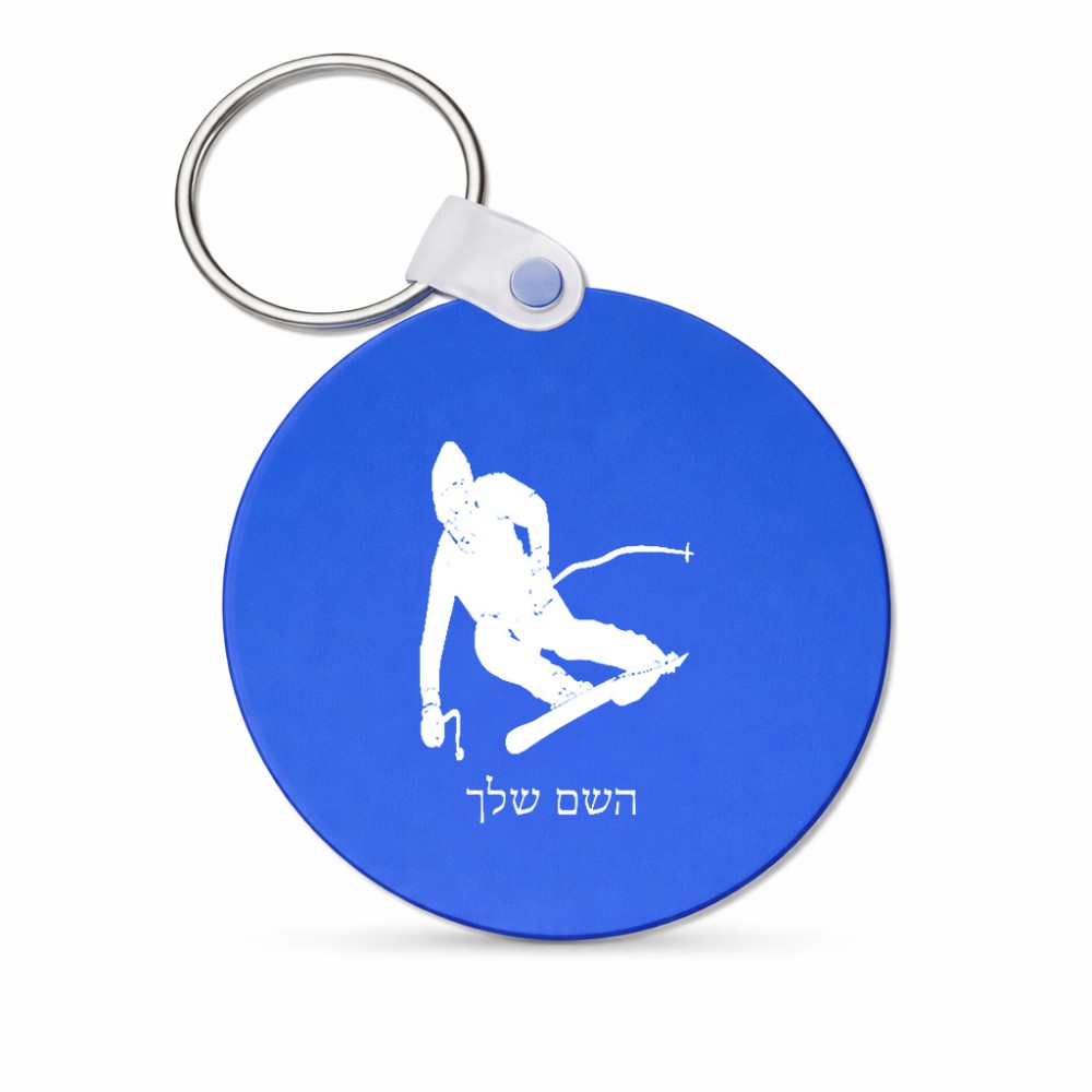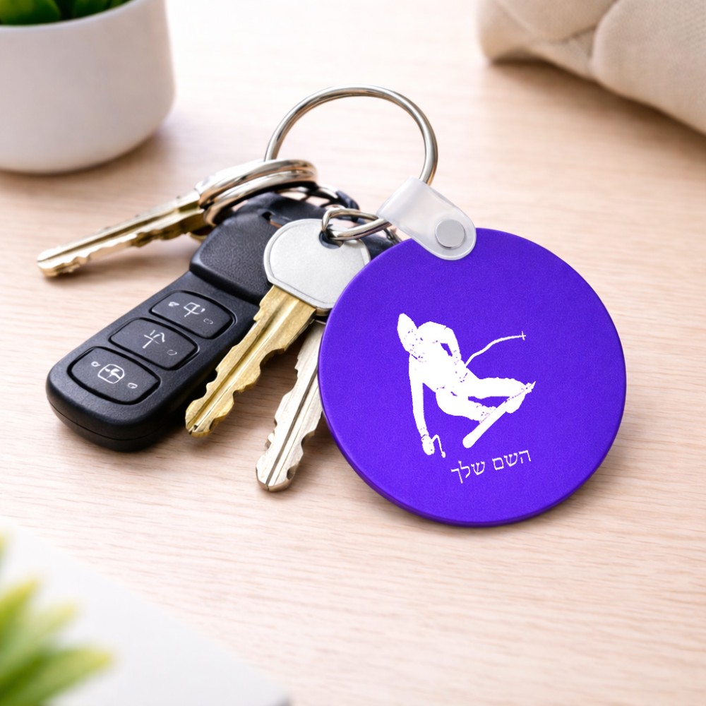 מחזיק מפתחות בצורת עיגול בעיצוב אישי עם השם שלך בעיצוב סקי גודל המחזיק 5 × 5 ס"מ. את השם המבוקש ניתן לציין בהזמנה, אם לא צויין אנחנו ניצור קשר לבירור.
