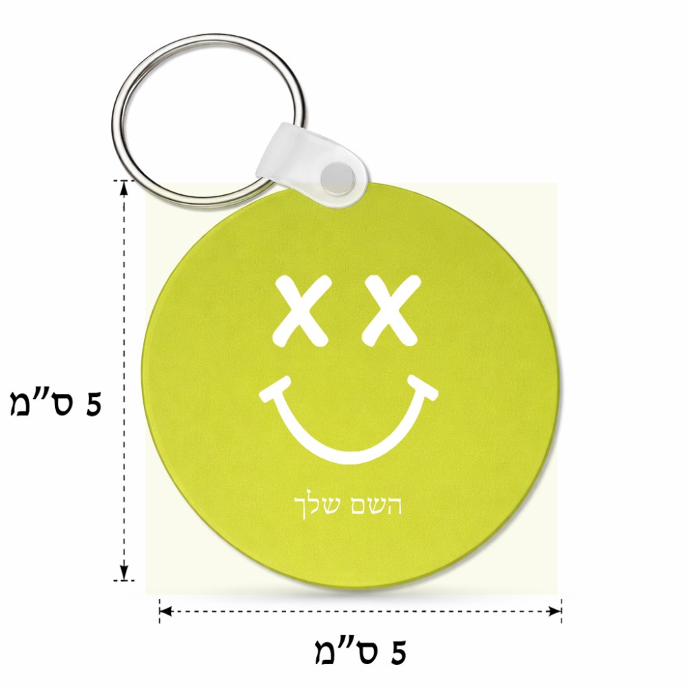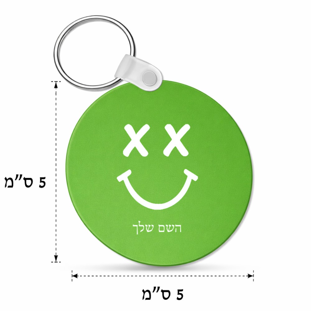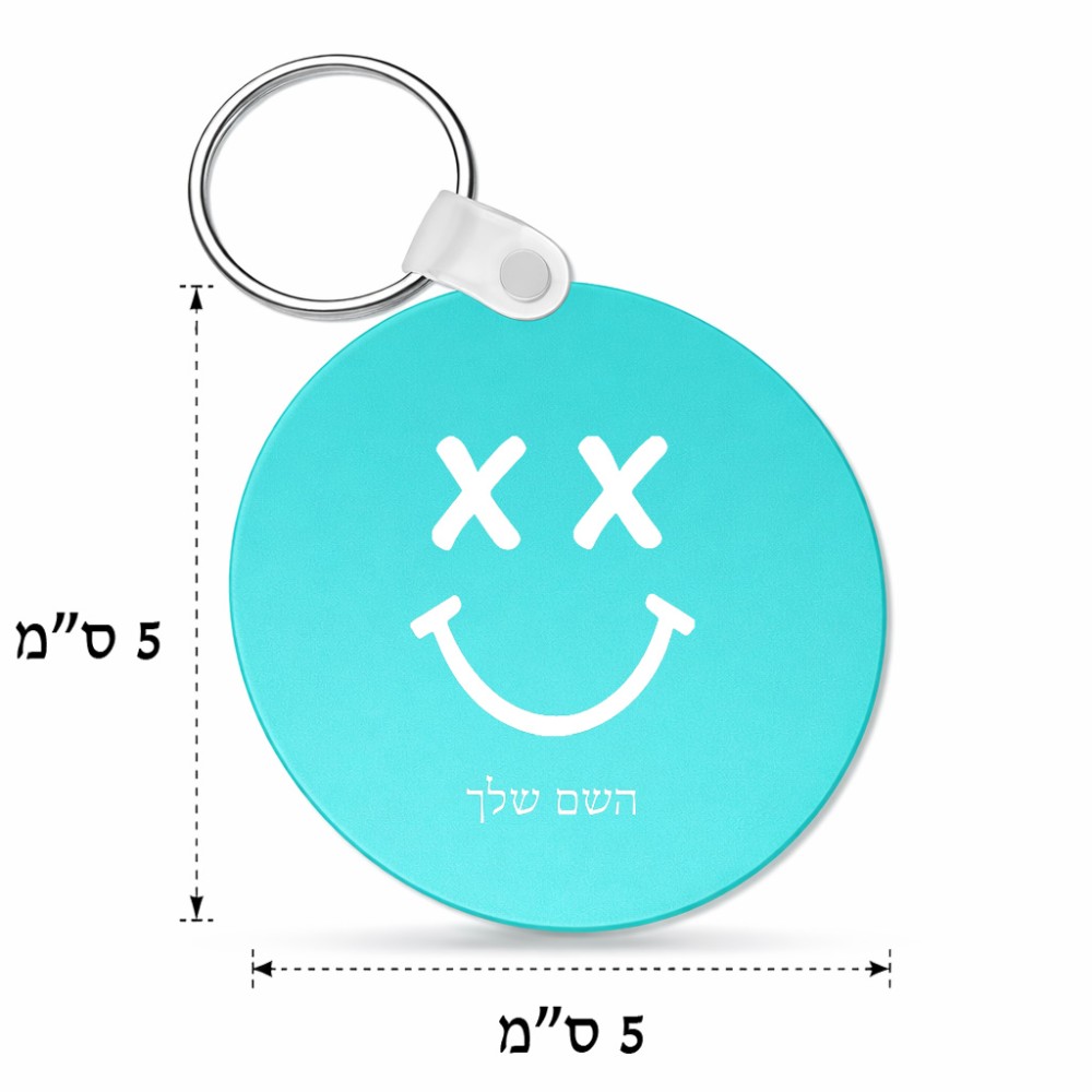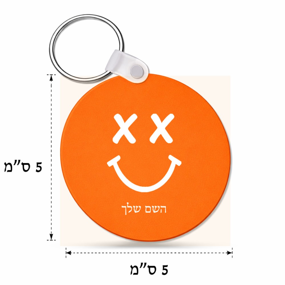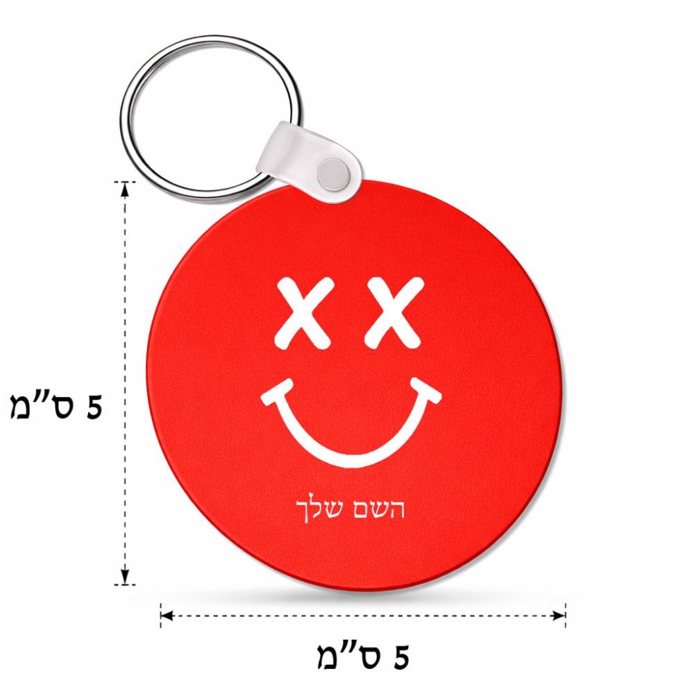 מחזיק מפתחות בצורת עיגול בעיצוב אישי עם השם שלך בעיצוב סמיילי גודל המחזיק 5 × 5 ס"מ. את השם המבוקש ניתן לציין בהזמנה, אם לא צויין אנחנו ניצור קשר לבירור.