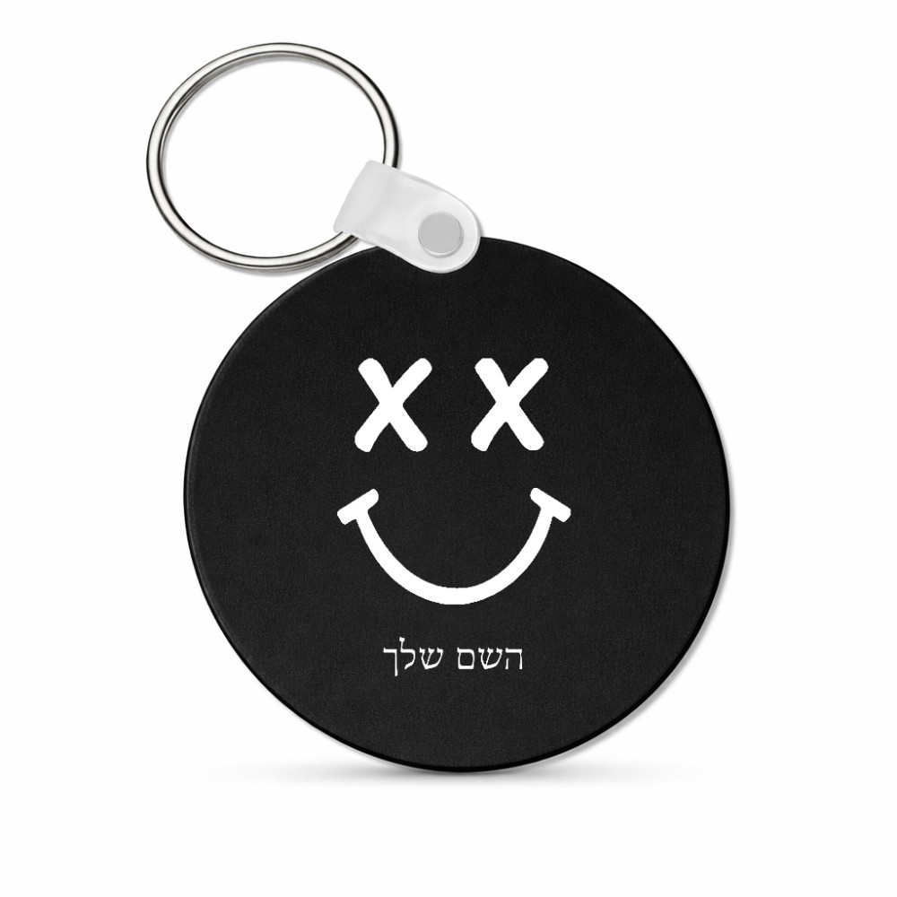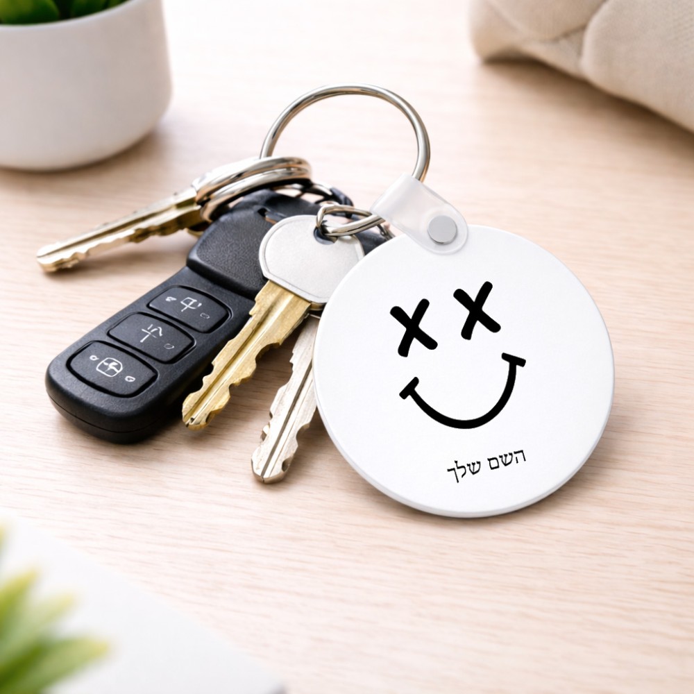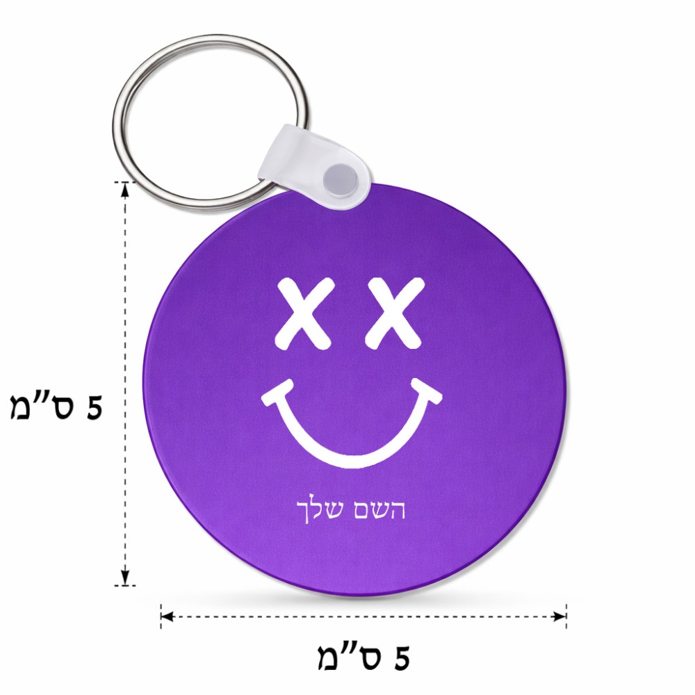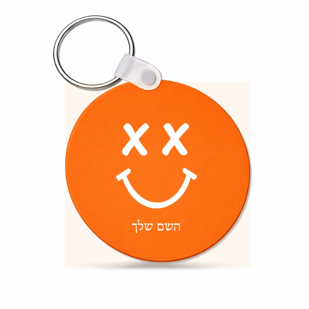 מחזיק מפתחות בצורת עיגול בעיצוב אישי עם השם שלך בעיצוב סמיילי גודל המחזיק 5 × 5 ס"מ. את השם המבוקש ניתן לציין בהזמנה, אם לא צויין אנחנו ניצור קשר לבירור.