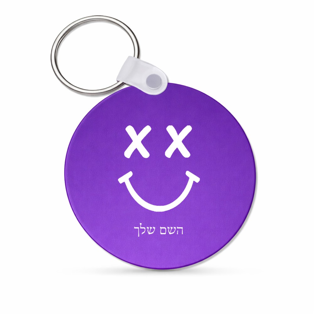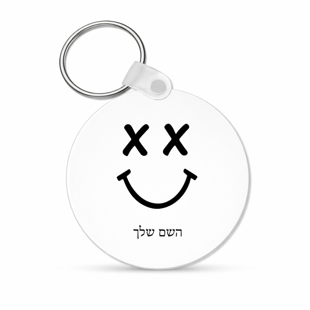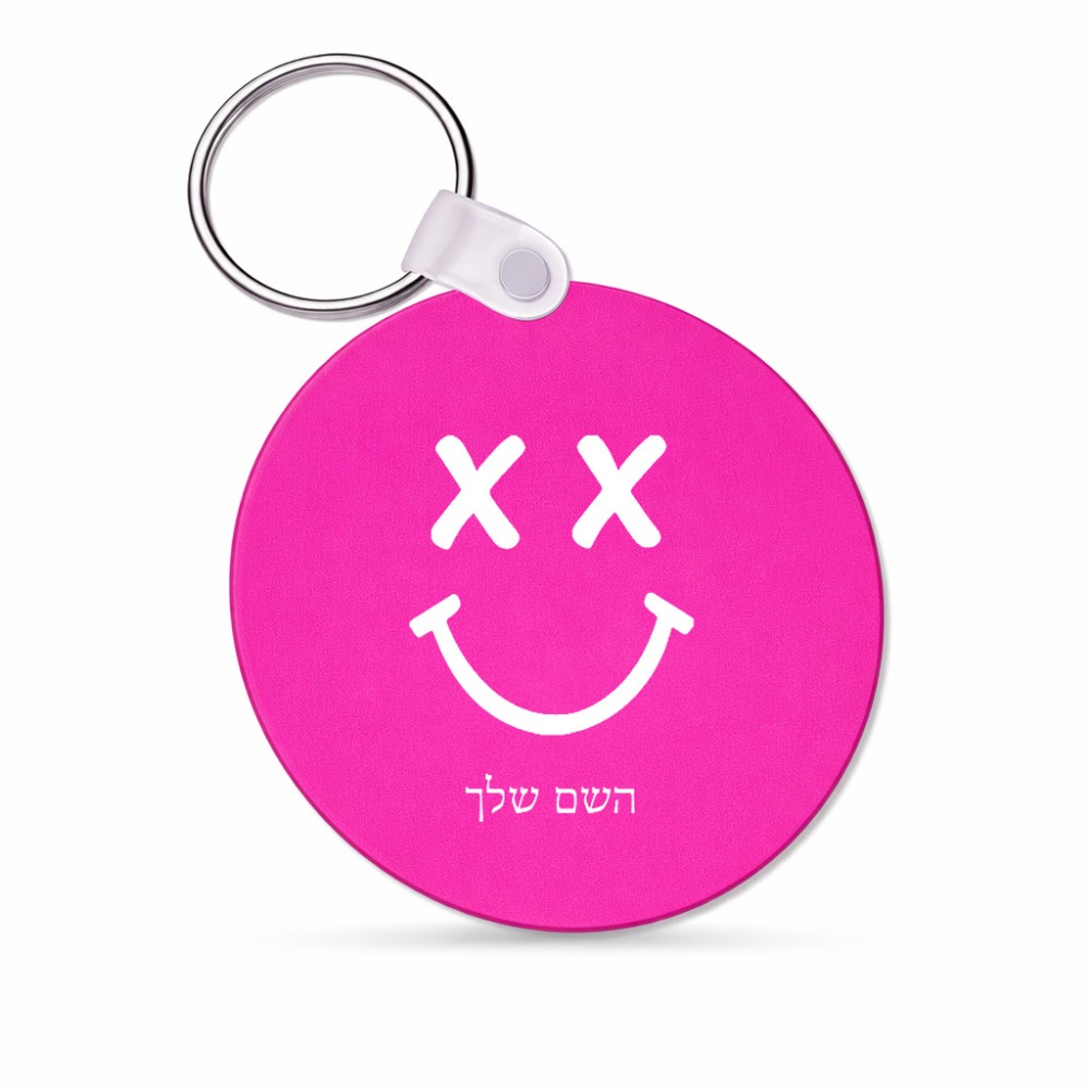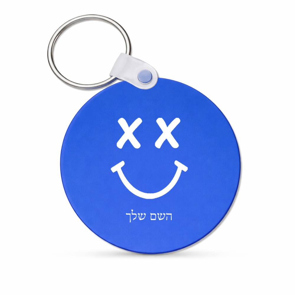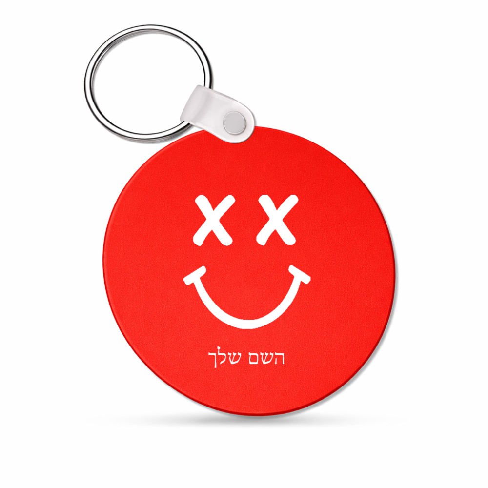 מחזיק מפתחות בצורת עיגול בעיצוב אישי עם השם שלך בעיצוב סמיילי גודל המחזיק 5 × 5 ס"מ. את השם המבוקש ניתן לציין בהזמנה, אם לא צויין אנחנו ניצור קשר לבירור.