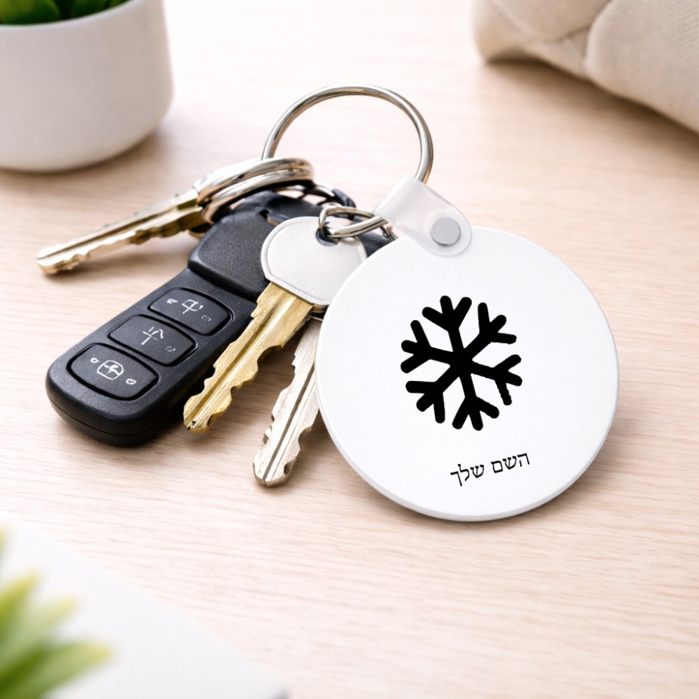 מחזיק מפתחות בצורת עיגול בעיצוב אישי עם השם שלך בעיצוב שלג גודל המחזיק 5 × 5 ס"מ. את השם המבוקש ניתן לציין בהזמנה, אם לא צויין אנחנו ניצור קשר לבירור.