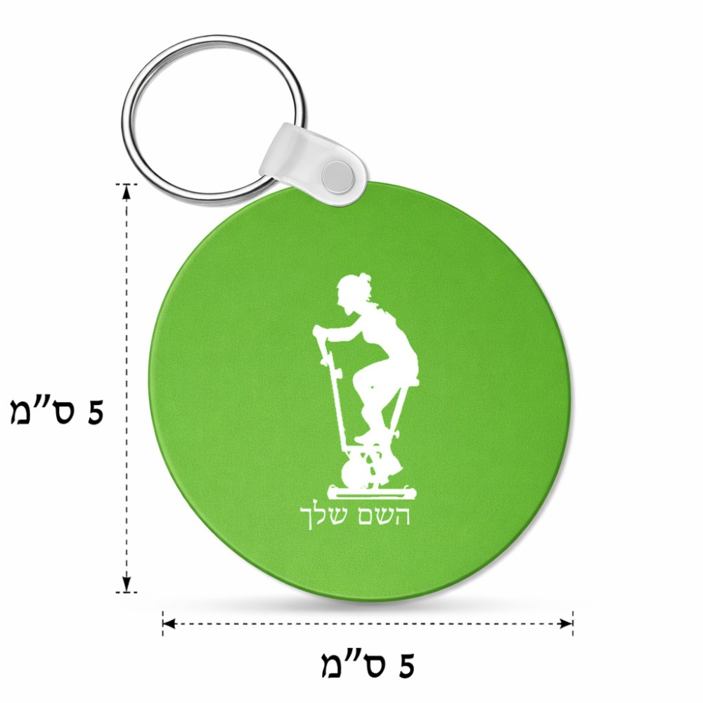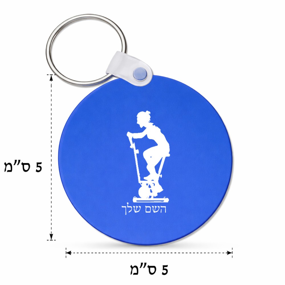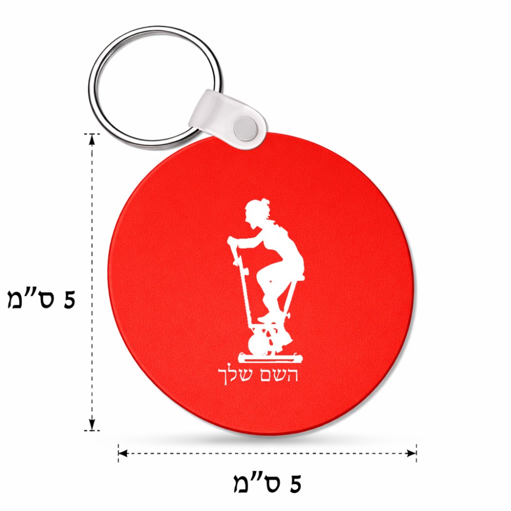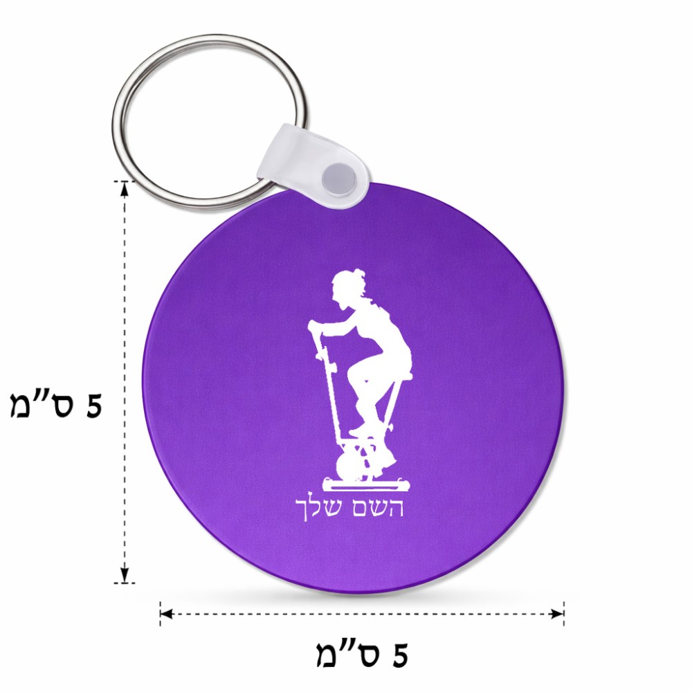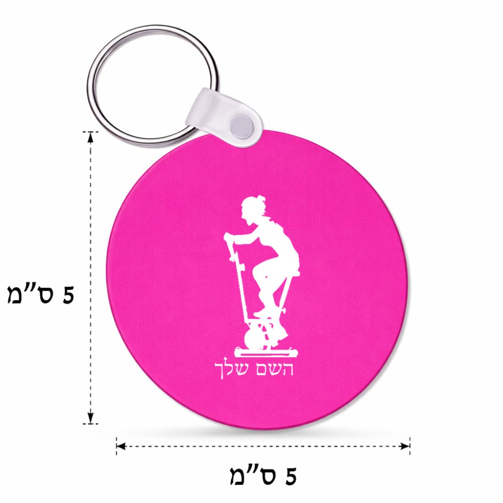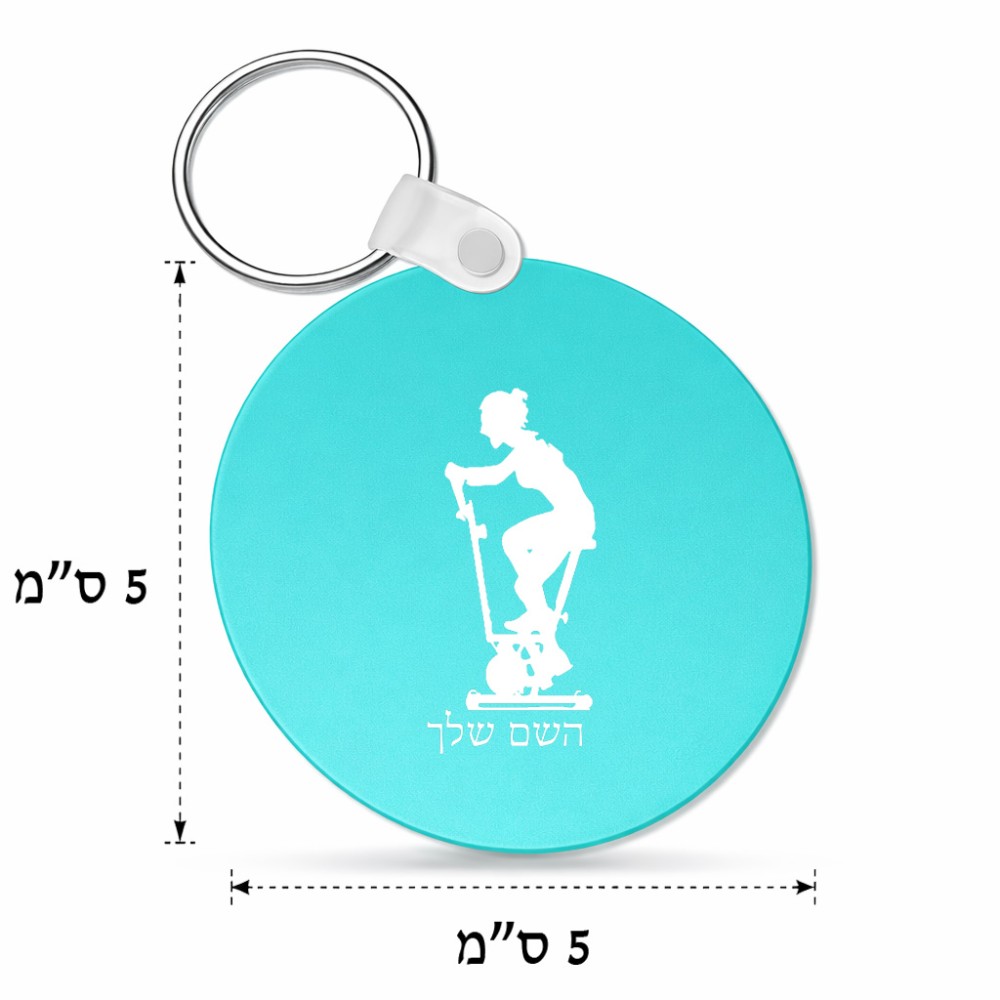מחזיק מפתחות בצורת עיגול בעיצוב אישי עם השם שלך בעיצוב אימון ספינינג - אישה גודל המחזיק 5 × 5 ס"מ. את השם המבוקש ניתן לציין בהזמנה, אם לא צויין אנחנו ניצור קשר לבירור.