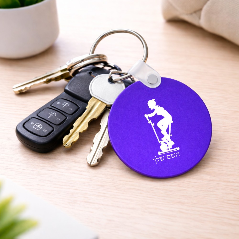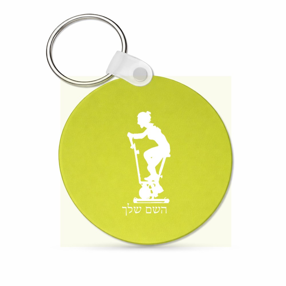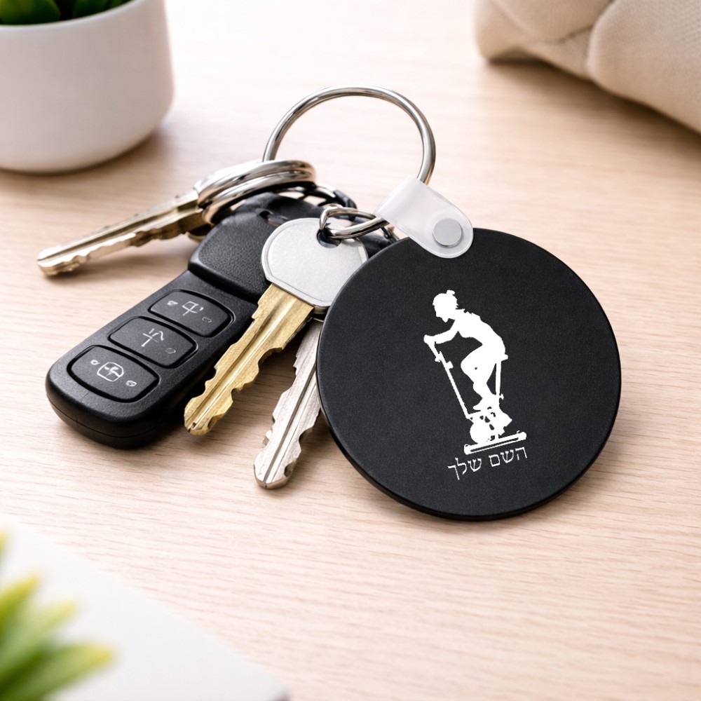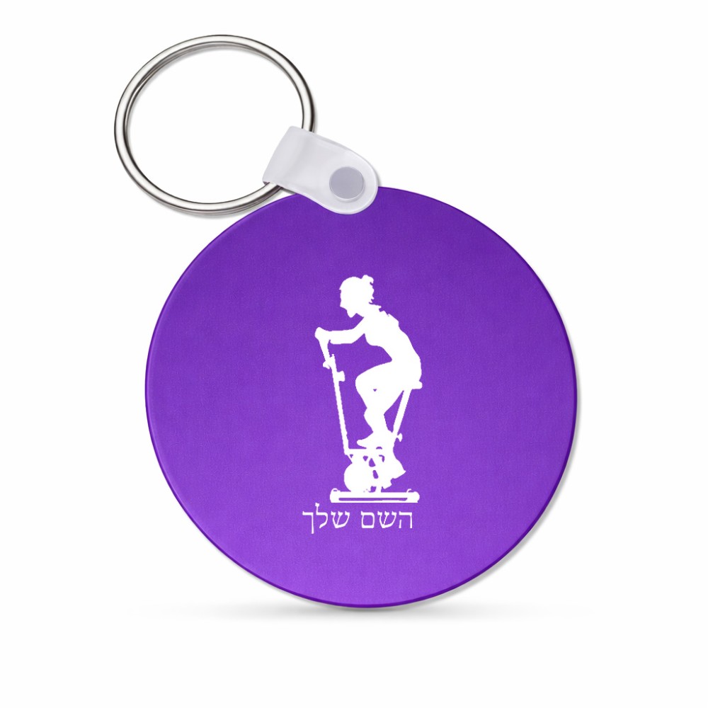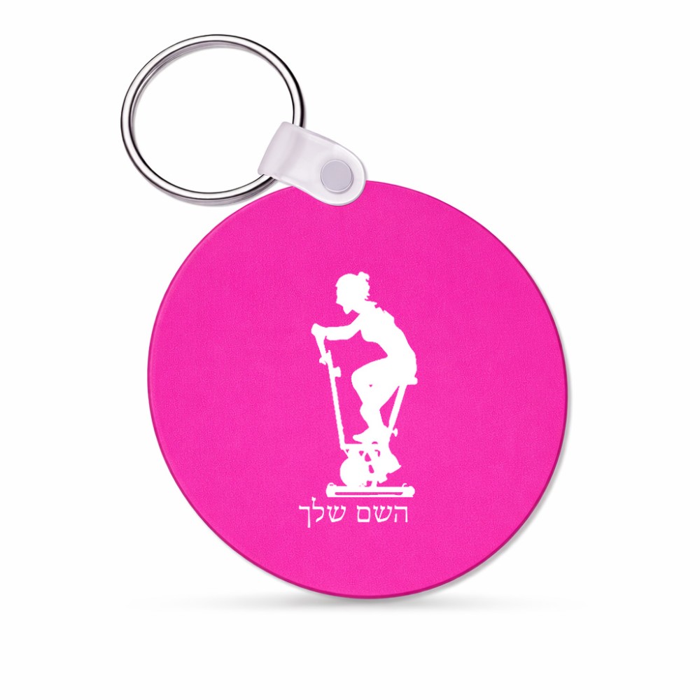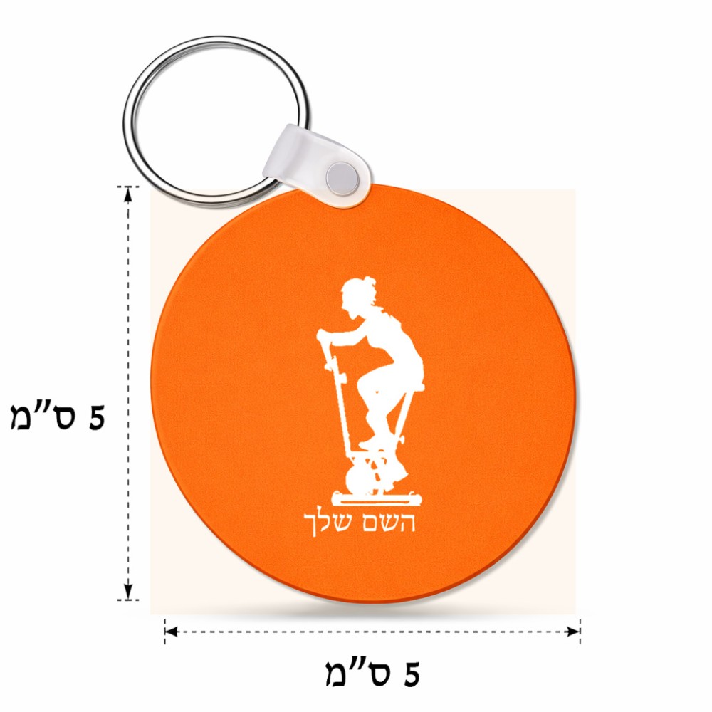 מחזיק מפתחות בצורת עיגול בעיצוב אישי עם השם שלך בעיצוב אימון ספינינג - אישה גודל המחזיק 5 × 5 ס"מ. את השם המבוקש ניתן לציין בהזמנה, אם לא צויין אנחנו ניצור קשר לבירור.