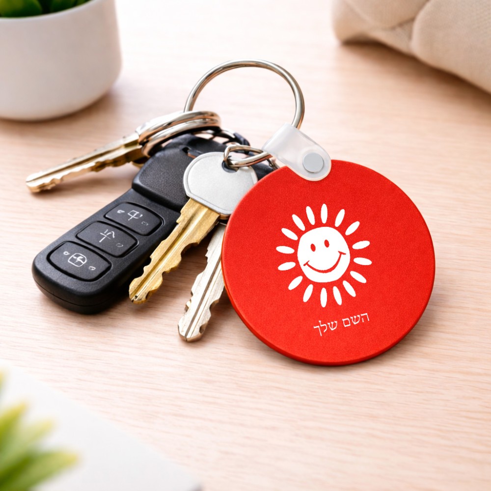 מחזיק מפתחות בצורת עיגול בעיצוב אישי עם השם שלך בעיצוב שמש גודל המחזיק 5 × 5 ס"מ. את השם המבוקש ניתן לציין בהזמנה, אם לא צויין אנחנו ניצור קשר לבירור.