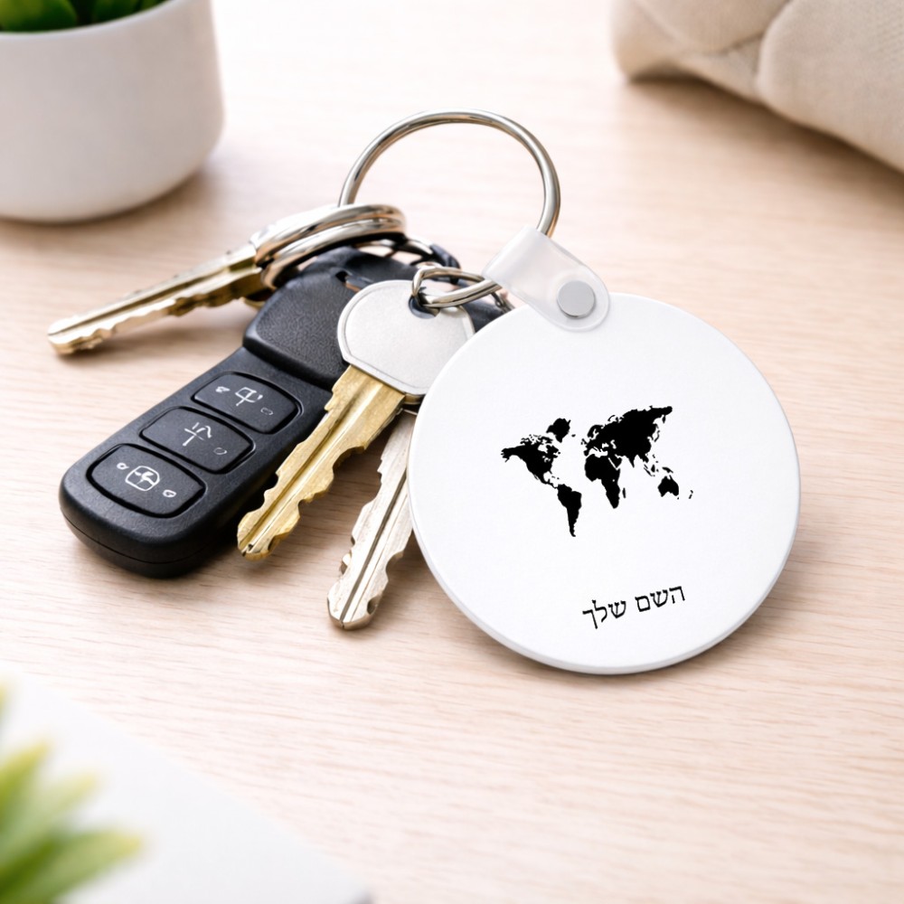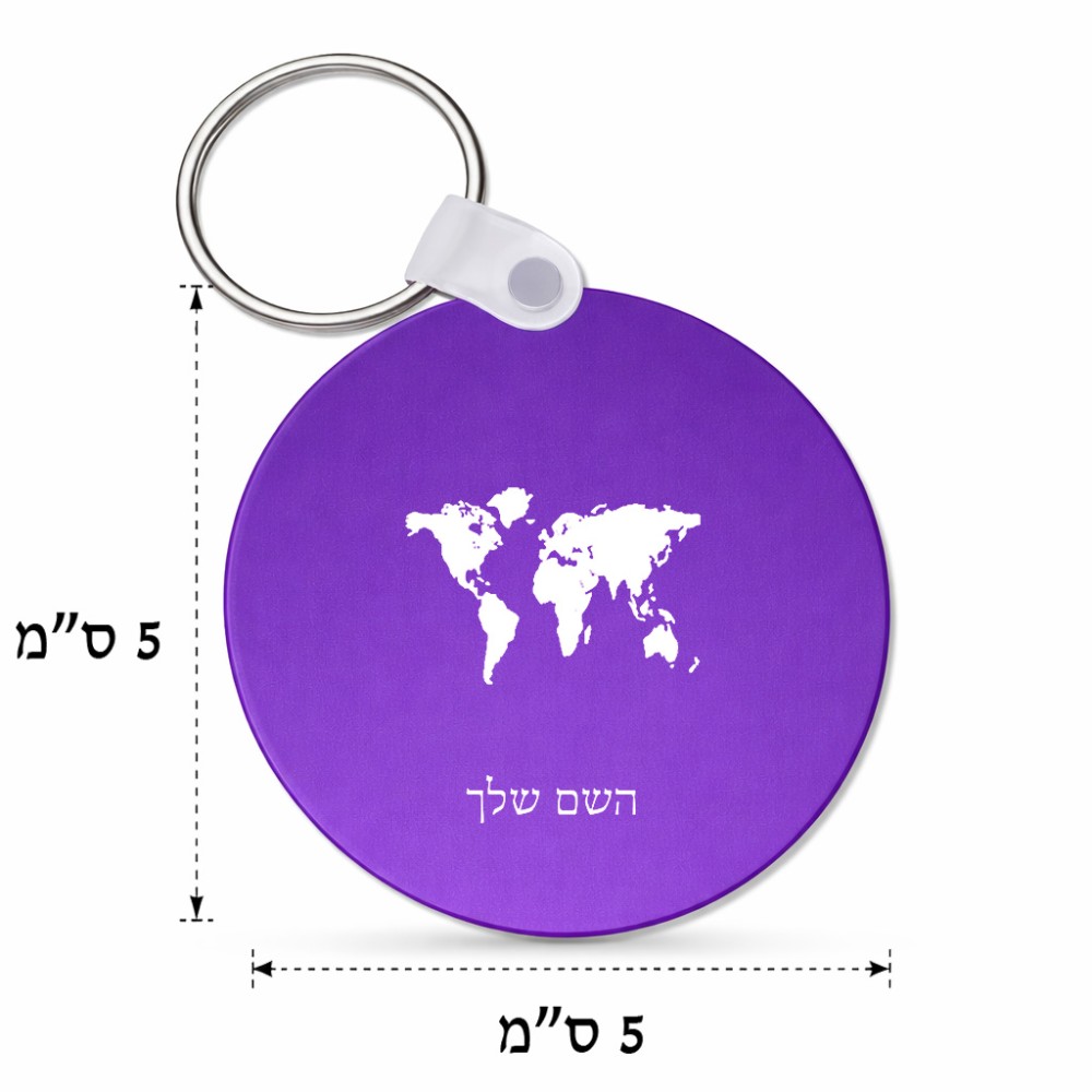 מחזיק מפתחות בצורת עיגול בעיצוב אישי עם השם שלך בעיצוב מפת העולם גודל המחזיק 5 × 5 ס"מ. את השם המבוקש ניתן לציין בהזמנה, אם לא צויין אנחנו ניצור קשר לבירור.