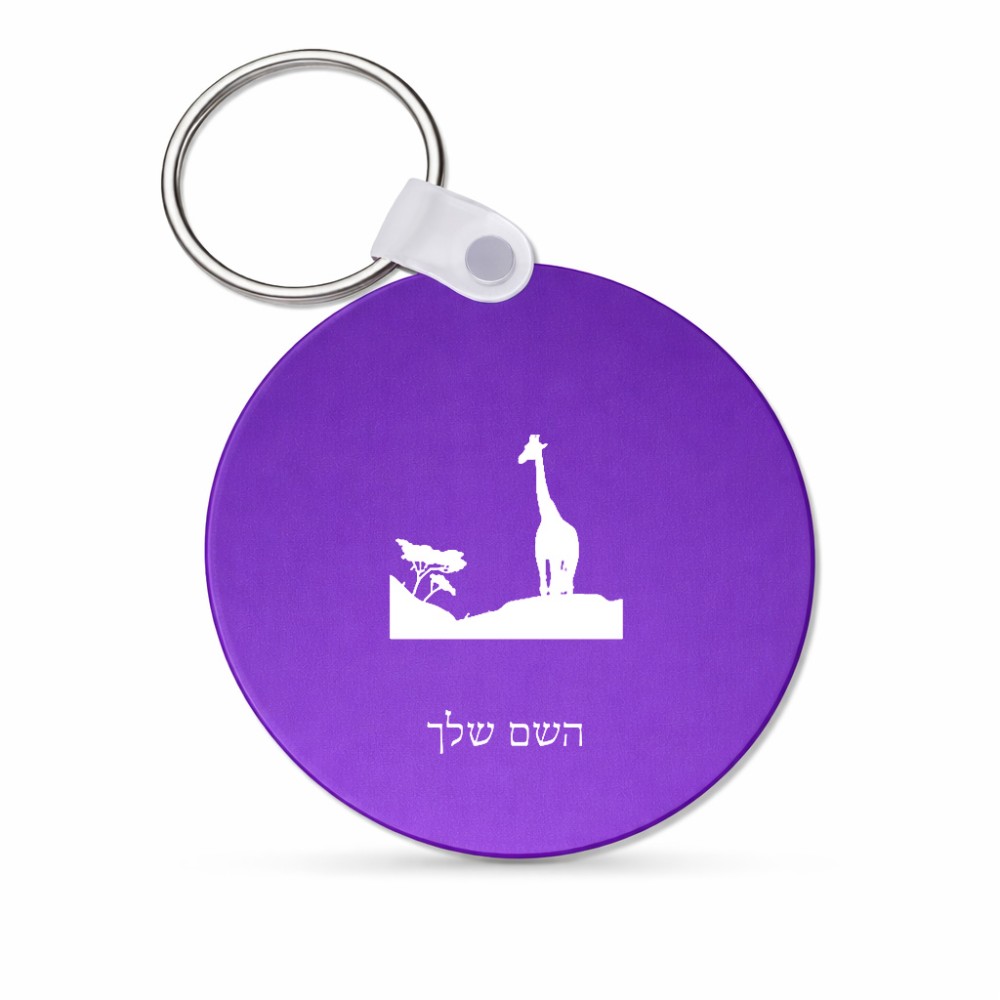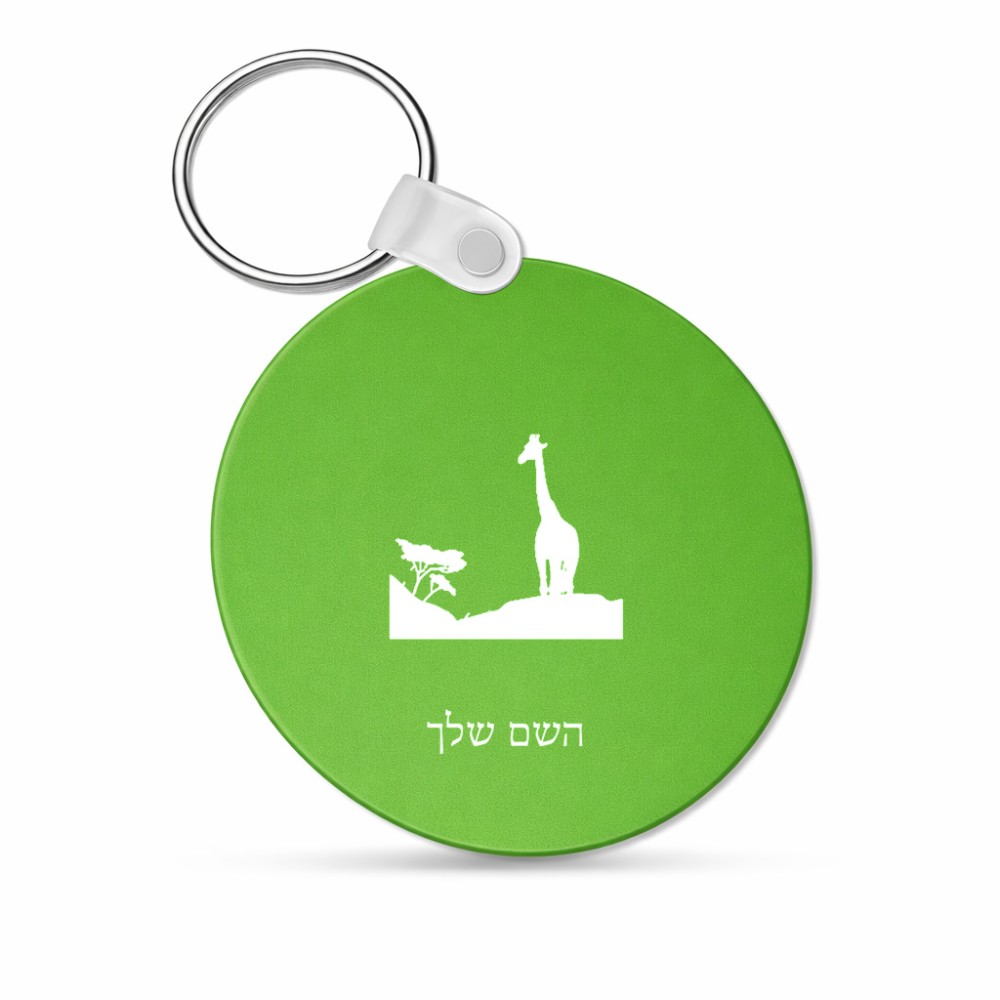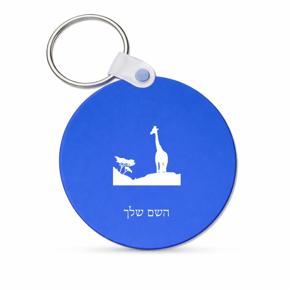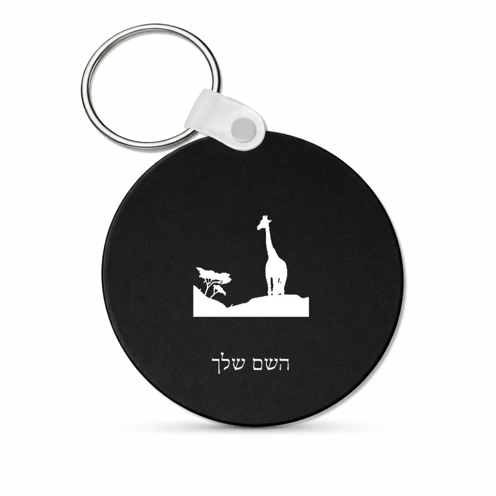 מחזיק מפתחות בצורת עיגול בעיצוב אישי עם השם שלך בעיצוב ג'ירפה באפריקה גודל המחזיק 5 × 5 ס"מ. את השם המבוקש ניתן לציין בהזמנה, אם לא צויין אנחנו ניצור קשר לבירור.