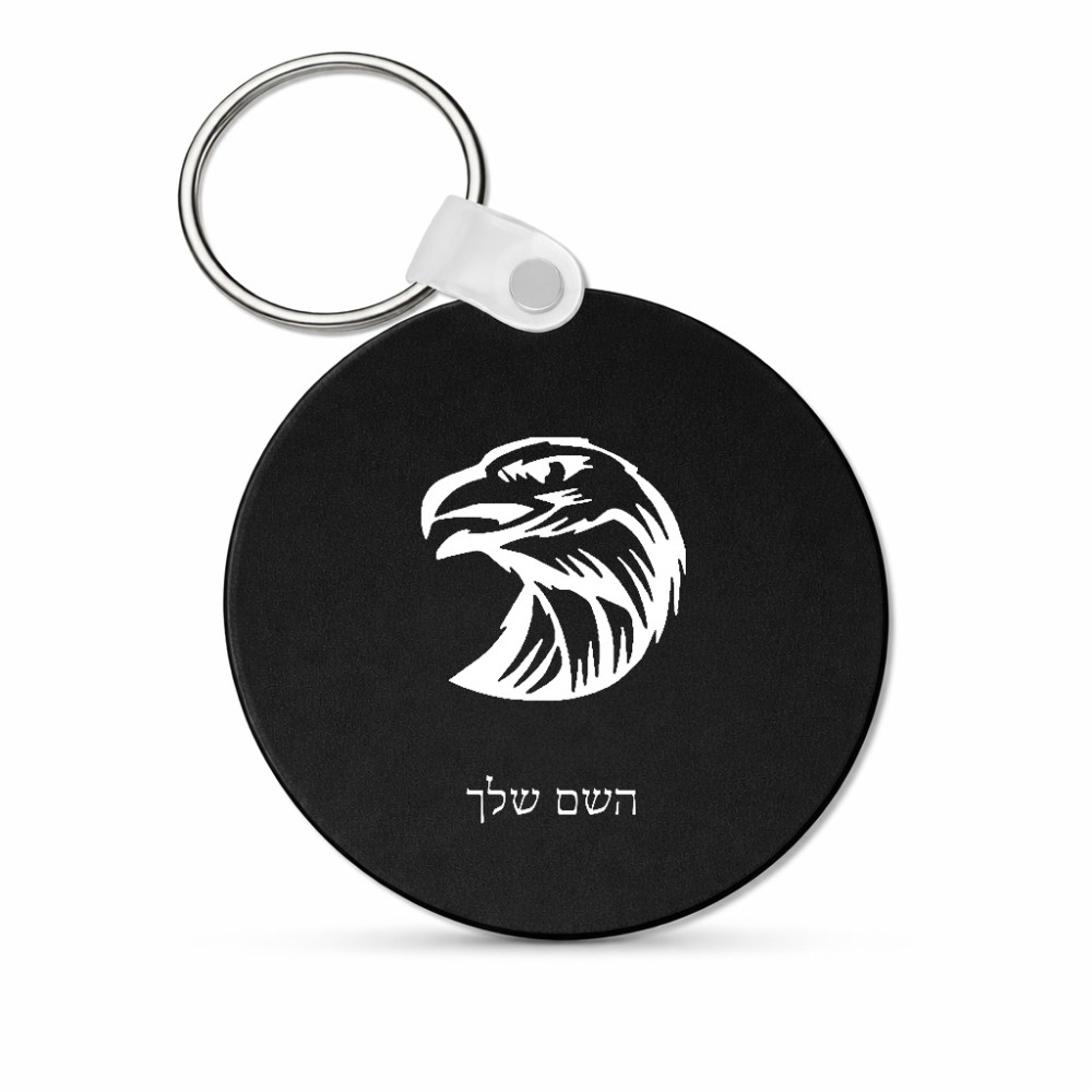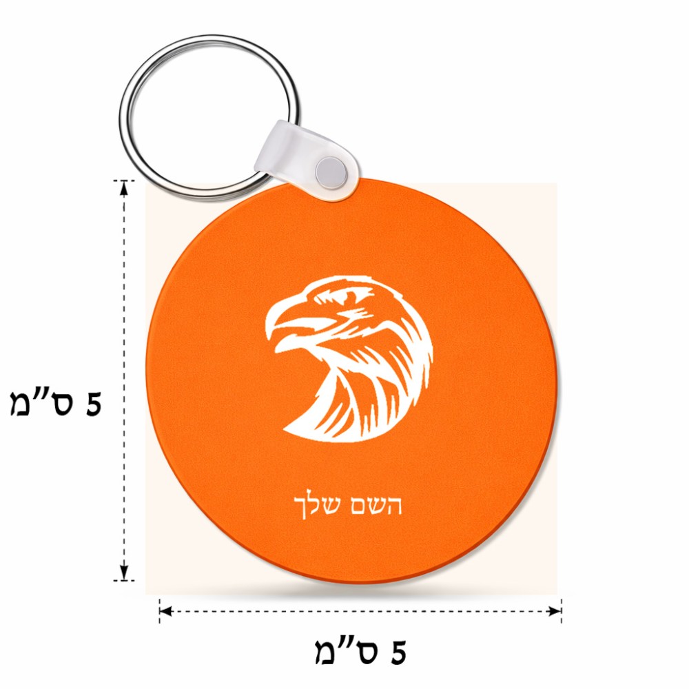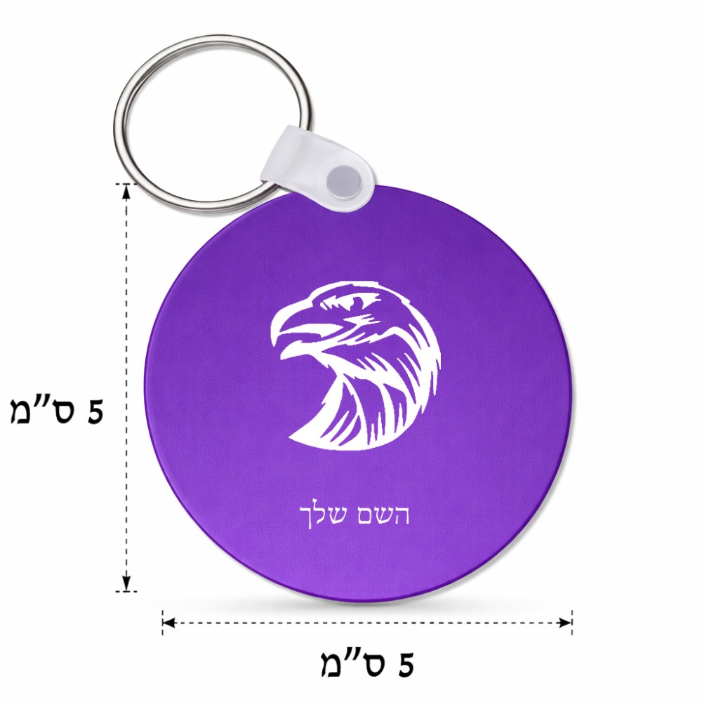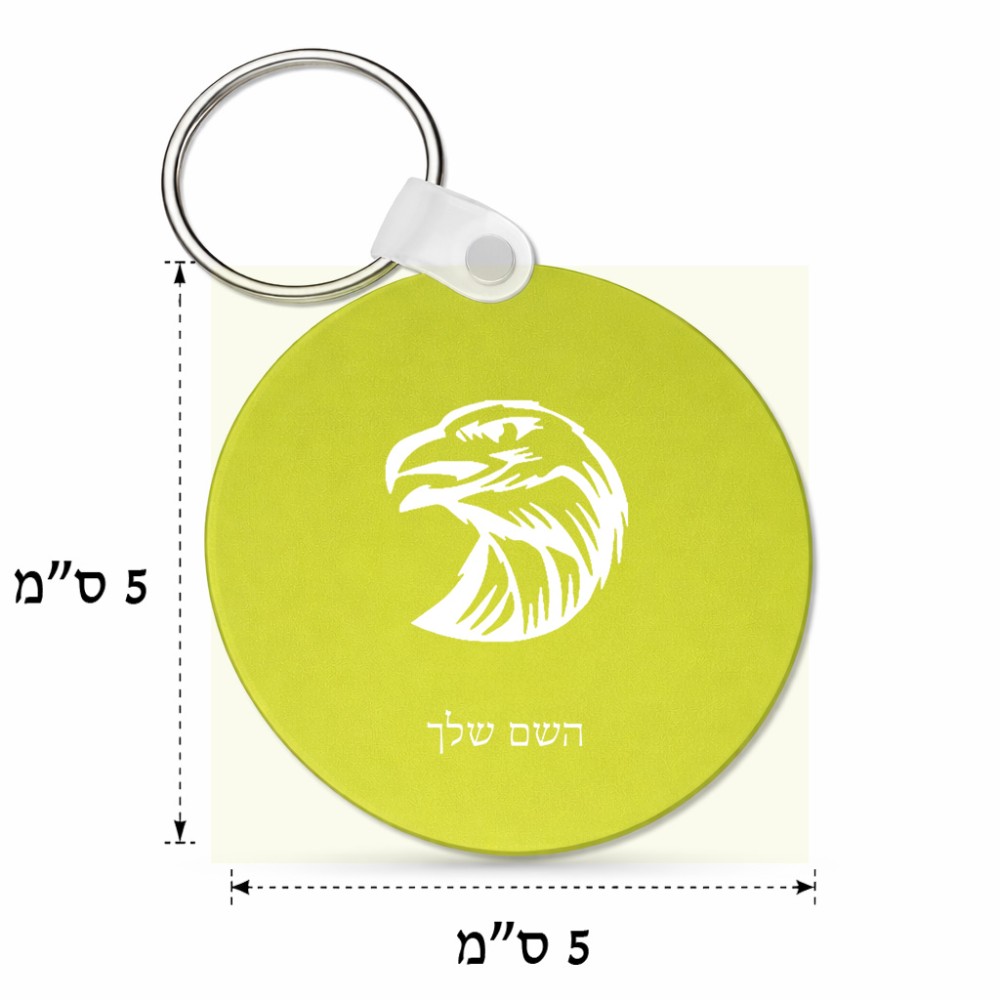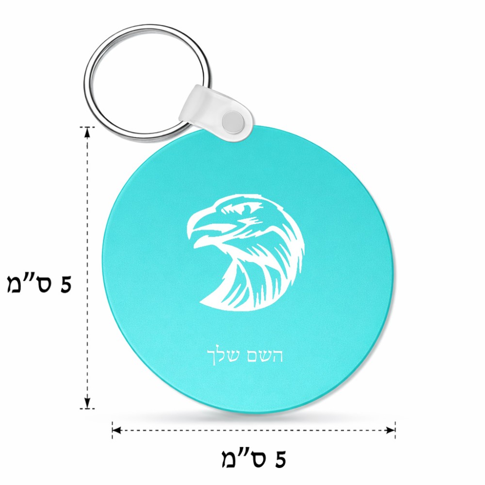 מחזיק מפתחות בצורת עיגול בעיצוב אישי עם השם שלך בעיצוב ראש נשר גודל המחזיק 5 × 5 ס"מ. את השם המבוקש ניתן לציין בהזמנה, אם לא צויין אנחנו ניצור קשר לבירור.