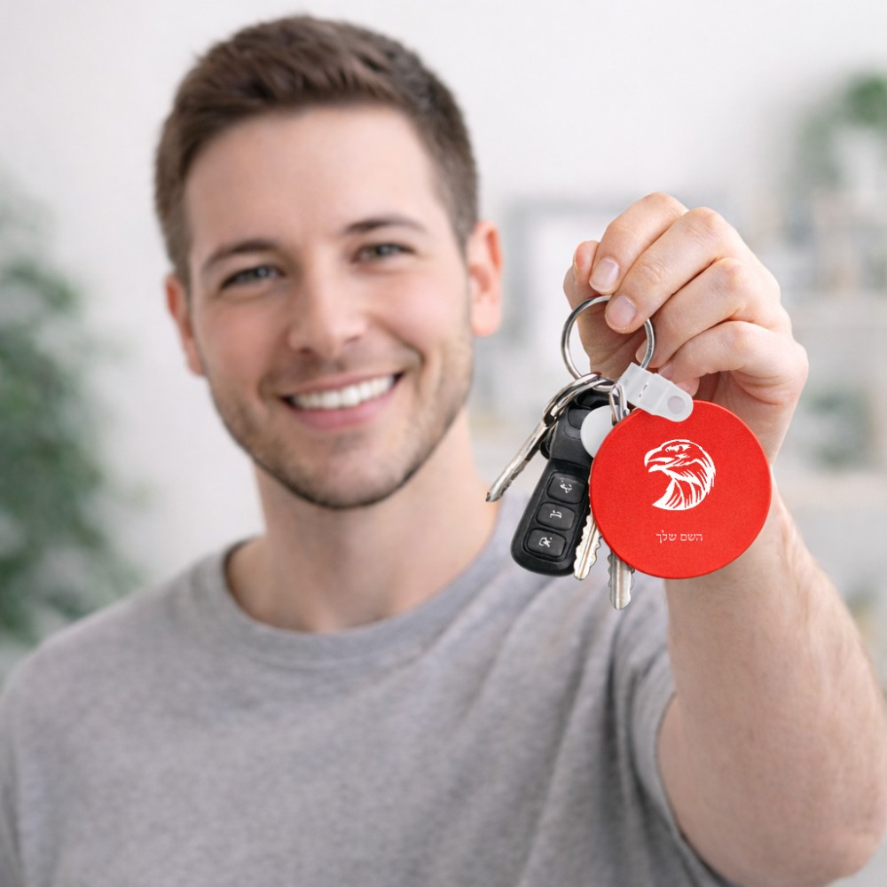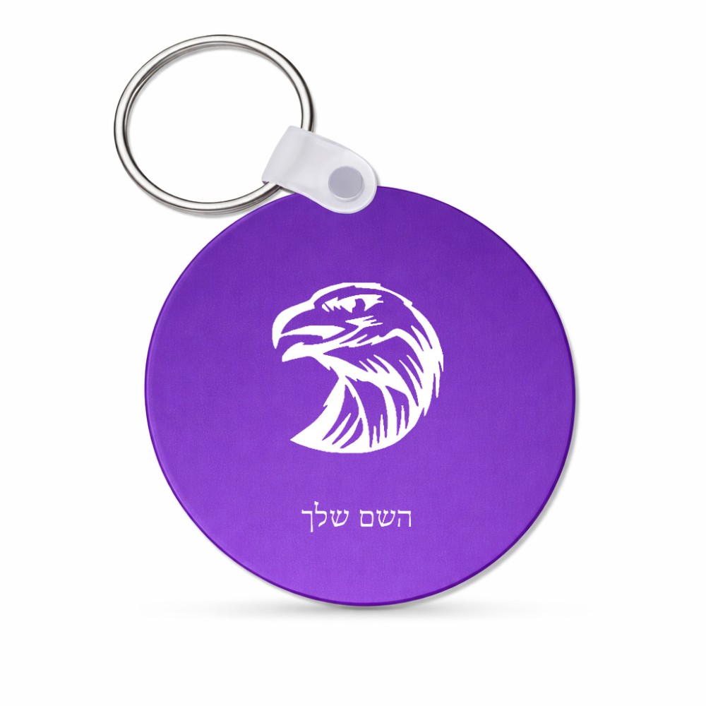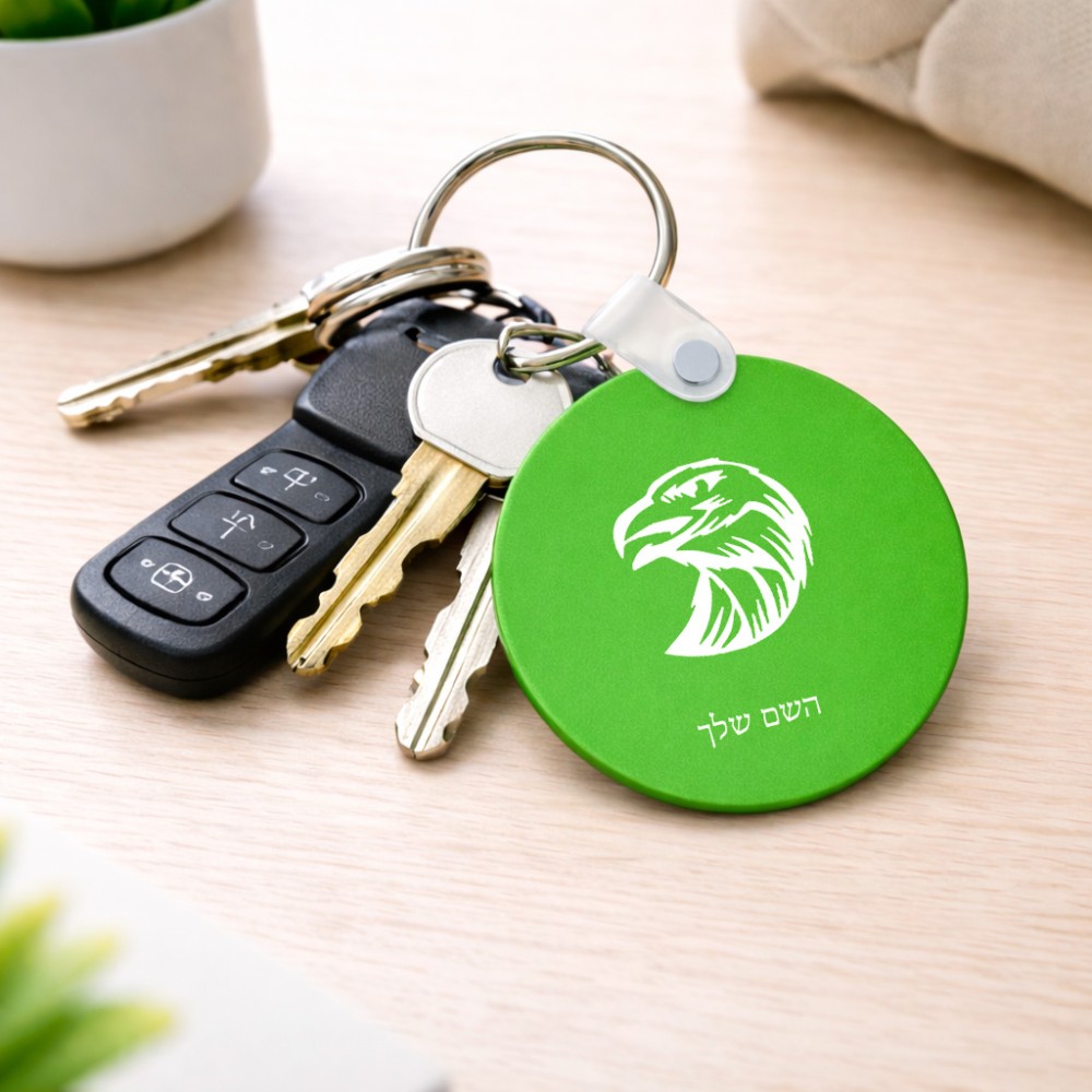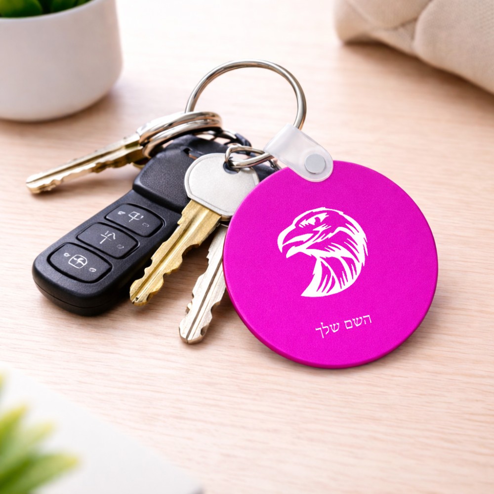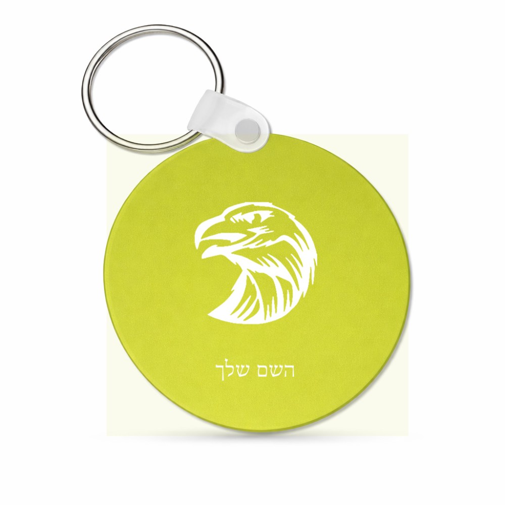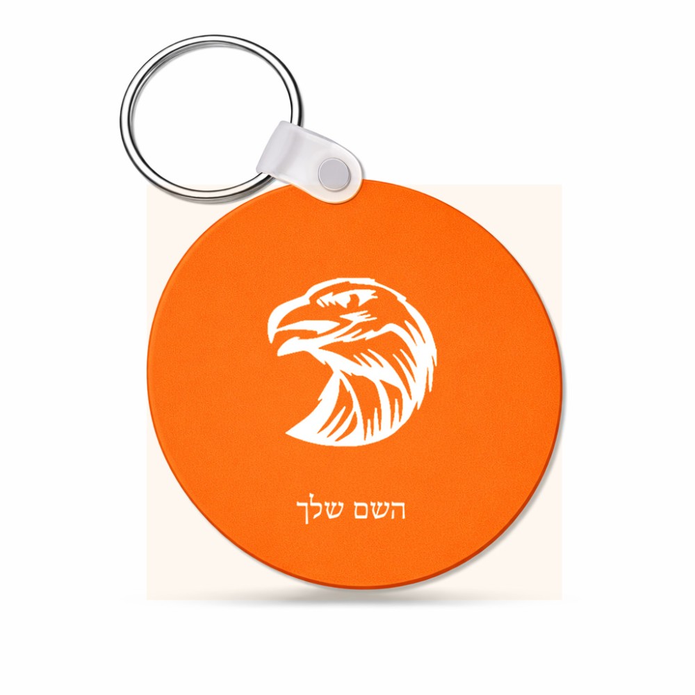 מחזיק מפתחות בצורת עיגול בעיצוב אישי עם השם שלך בעיצוב ראש נשר גודל המחזיק 5 × 5 ס"מ. את השם המבוקש ניתן לציין בהזמנה, אם לא צויין אנחנו ניצור קשר לבירור.