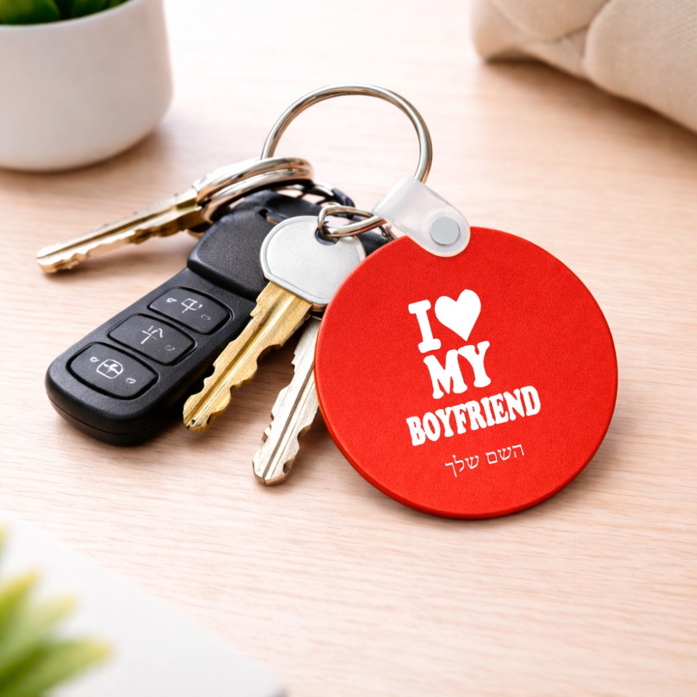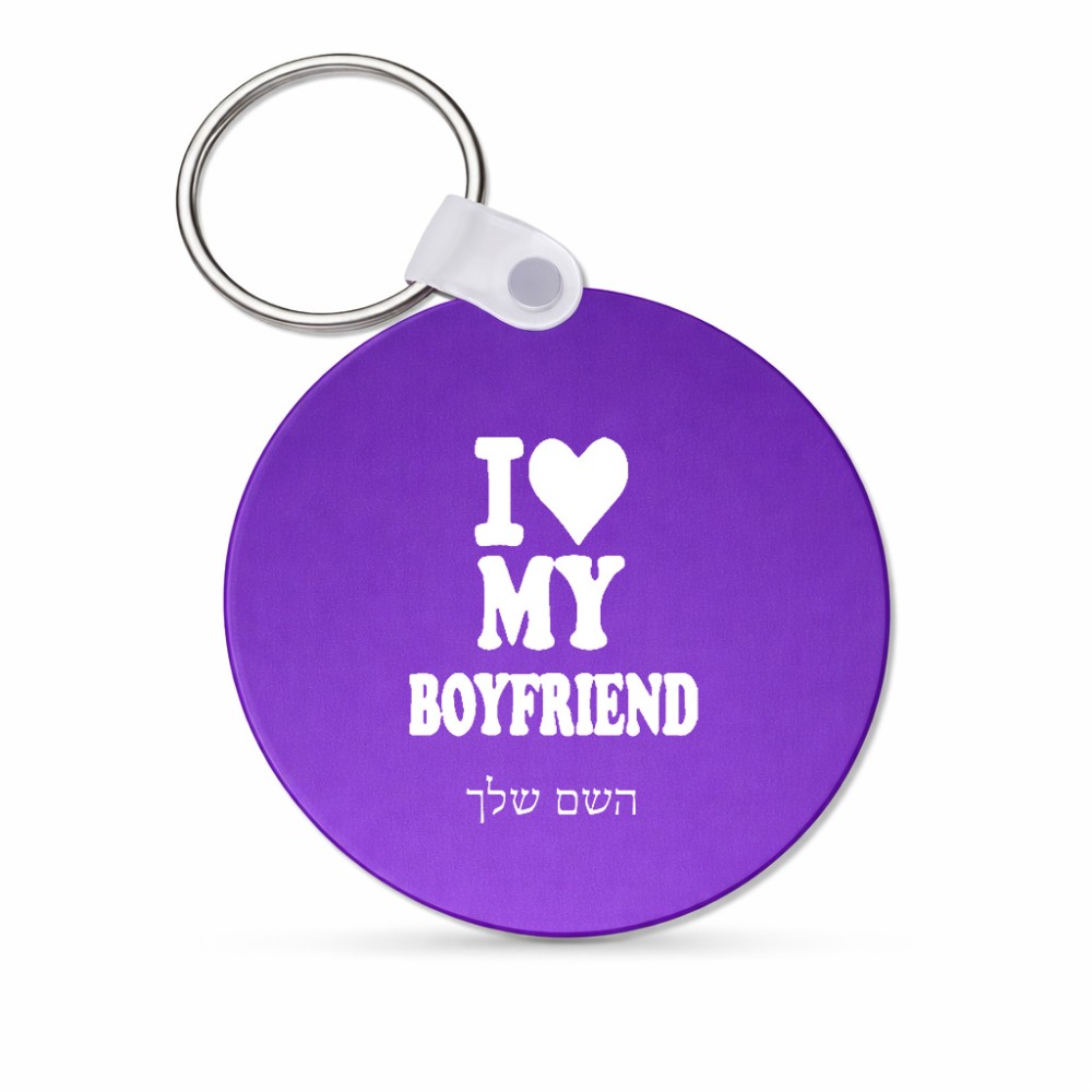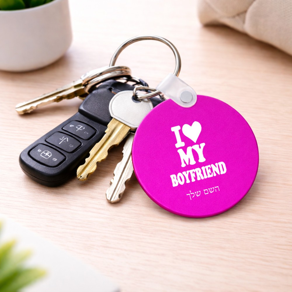 מחזיק מפתחות בצורת עיגול בעיצוב אישי עם השם שלך בעיצוב אוהבת את החבר שלי גודל המחזיק 5 × 5 ס"מ. את השם המבוקש ניתן לציין בהזמנה, אם לא צויין אנחנו ניצור קשר לבירור.