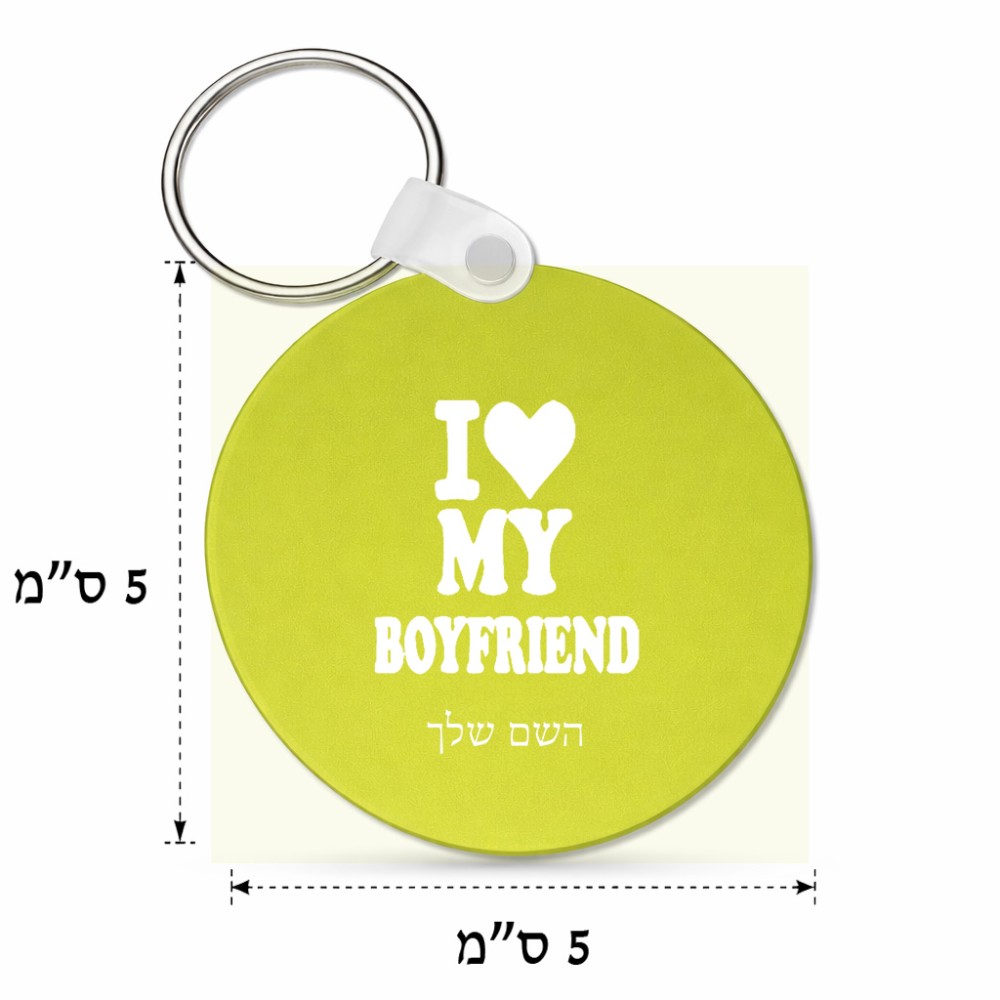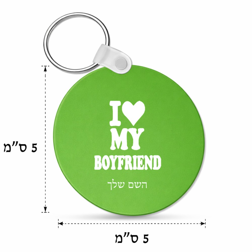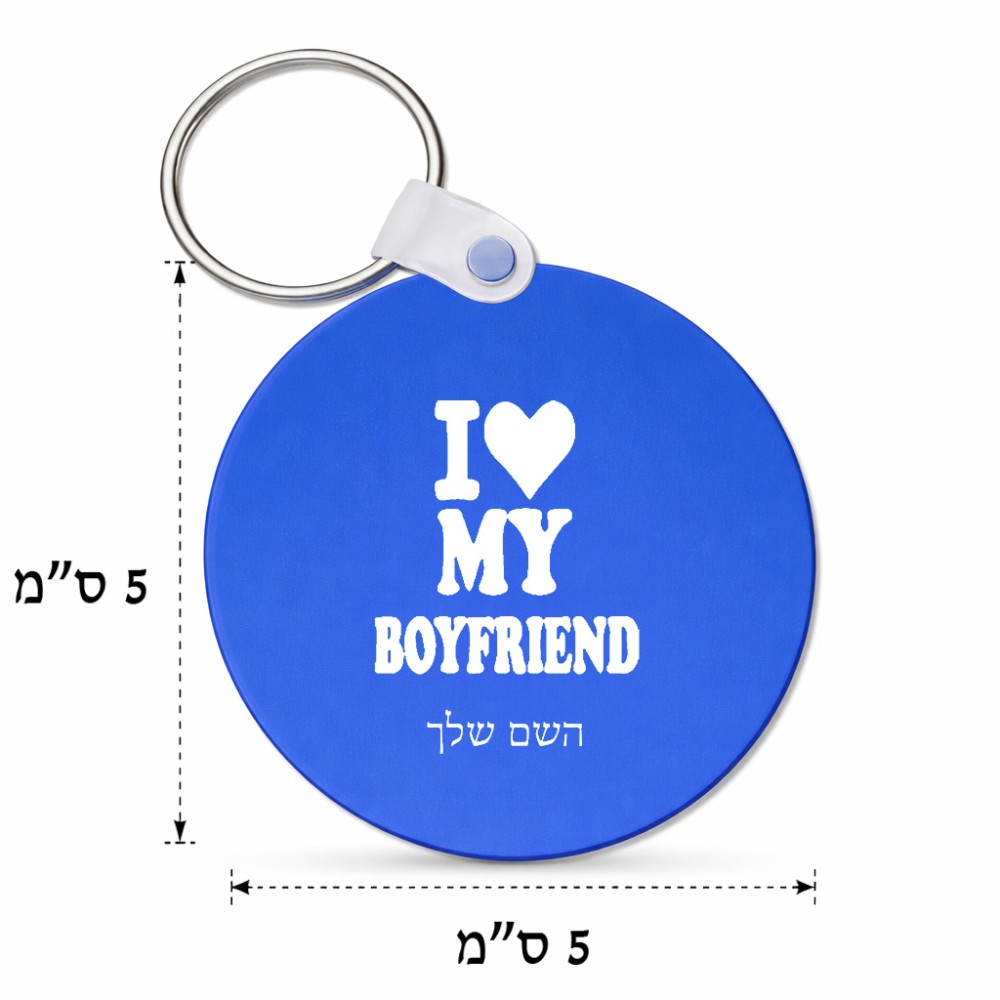 מחזיק מפתחות בצורת עיגול בעיצוב אישי עם השם שלך בעיצוב אוהבת את החבר שלי גודל המחזיק 5 × 5 ס"מ