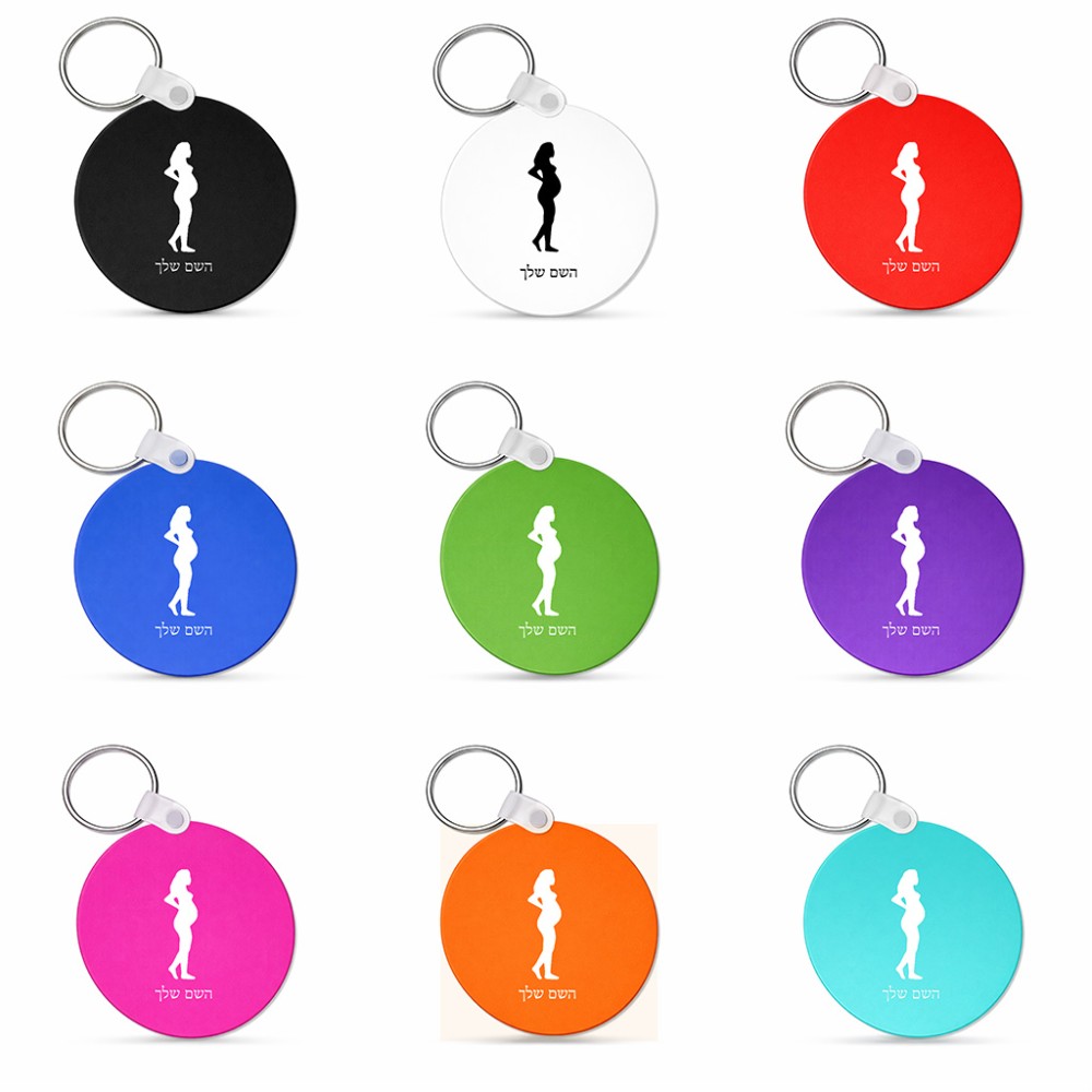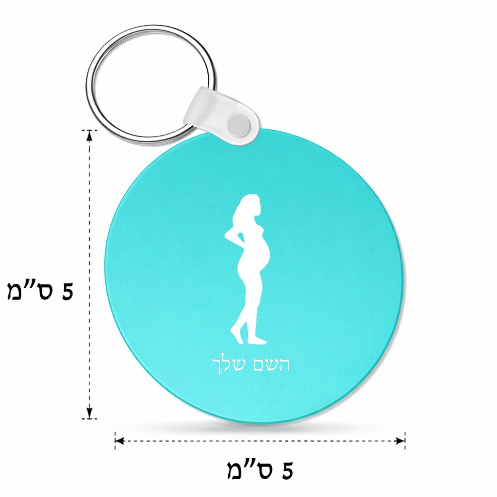מחזיק מפתחות בצורת עיגול בעיצוב אישי עם השם שלך בעיצוב אישה בהריון גודל המחזיק 5 × 5 ס"מ. את השם המבוקש ניתן לציין בהזמנה, אם לא צויין אנחנו ניצור קשר לבירור.