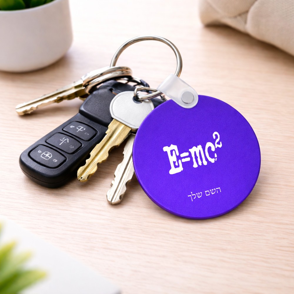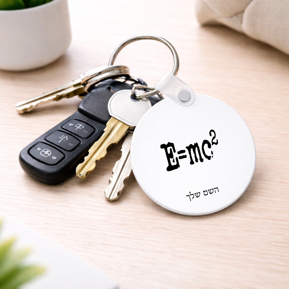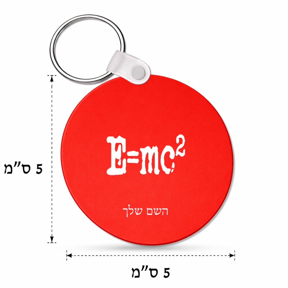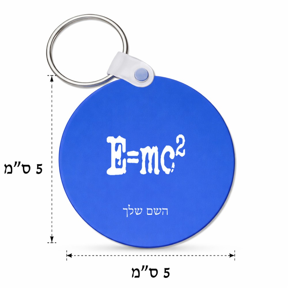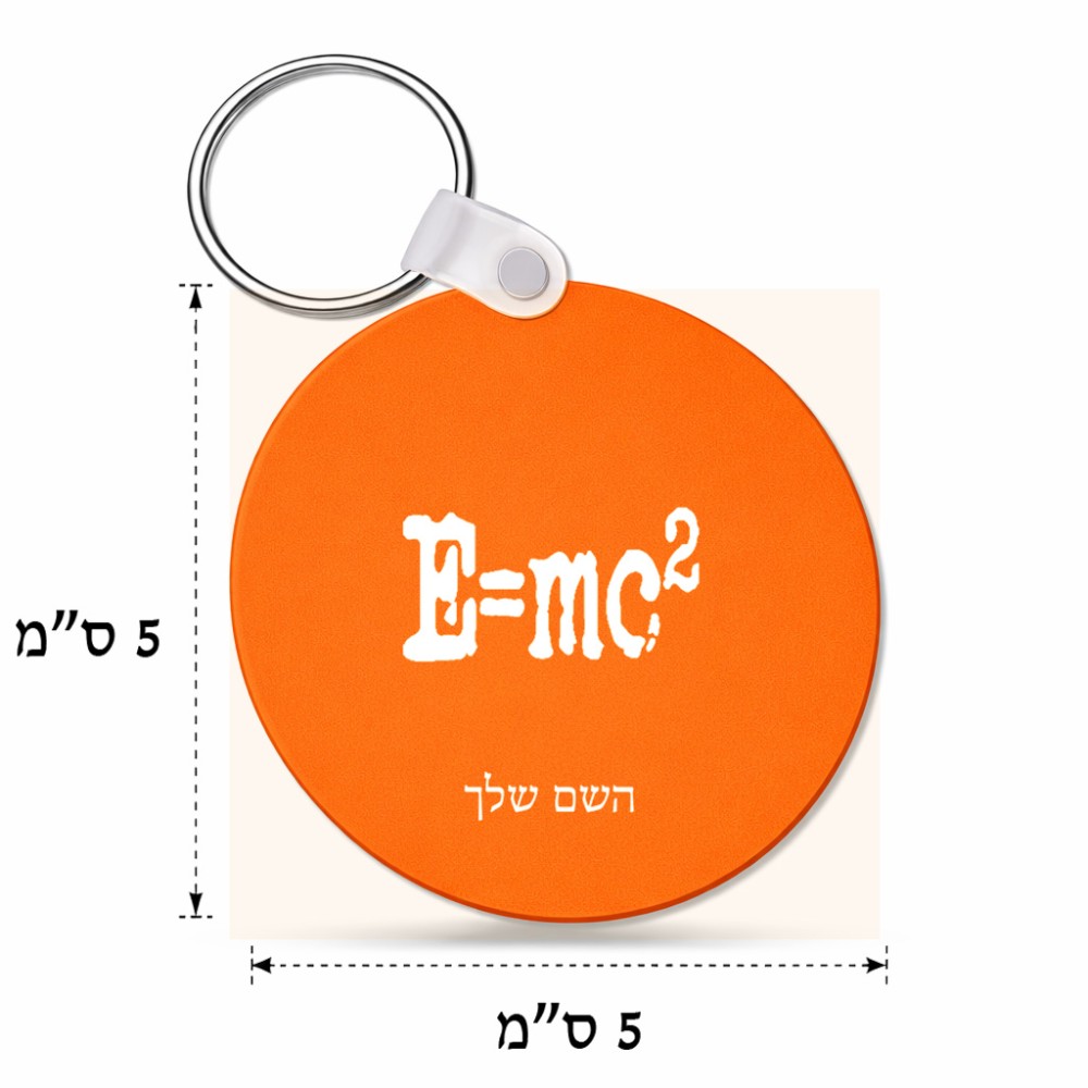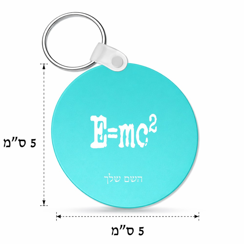 מחזיק מפתחות בצורת עיגול בעיצוב אישי עם השם שלך בעיצוב נוסחת אלברט איינשטיין גודל המחזיק 5 × 5 ס"מ. את השם המבוקש ניתן לציין בהזמנה, אם לא צויין אנחנו ניצור קשר לבירור.