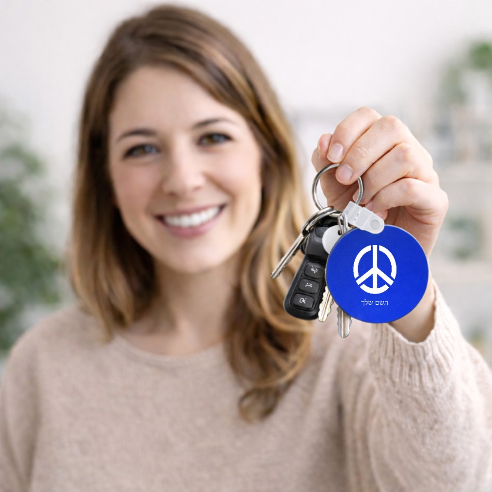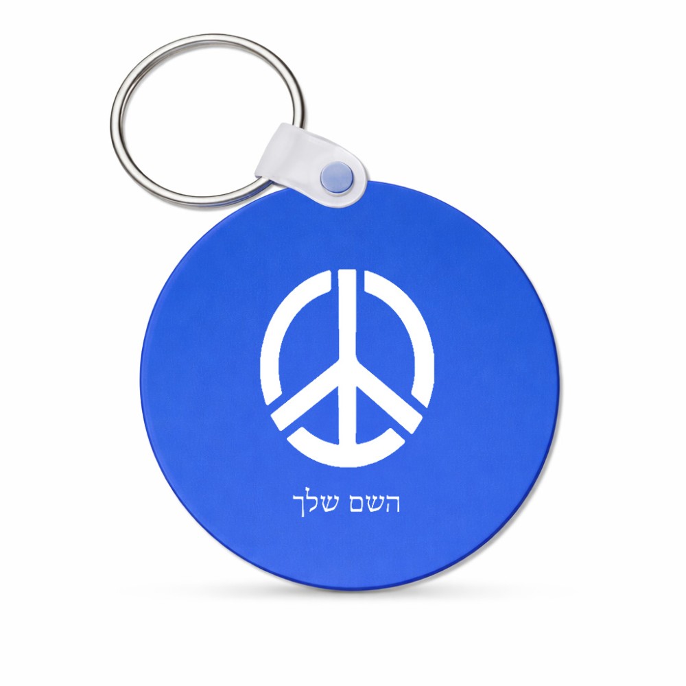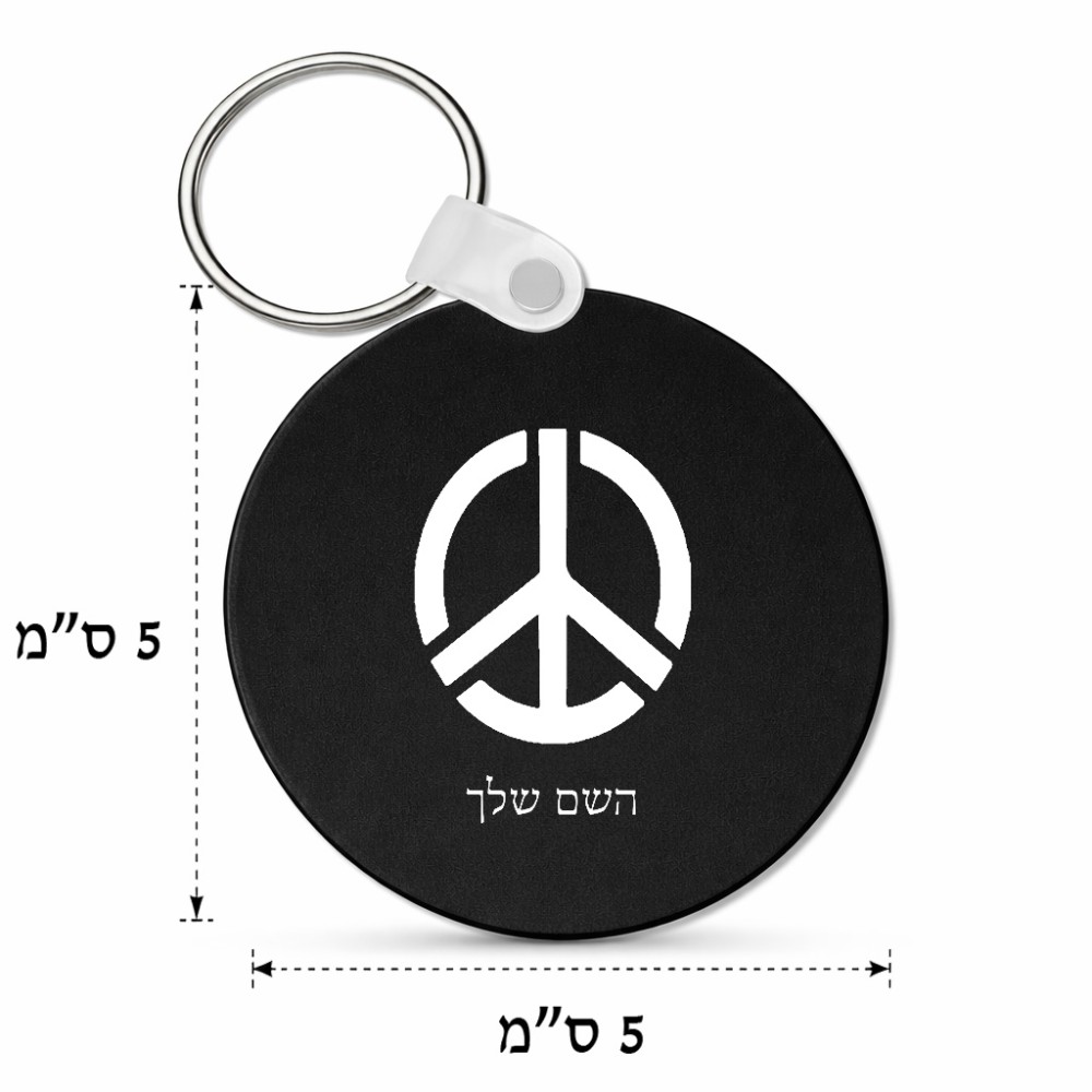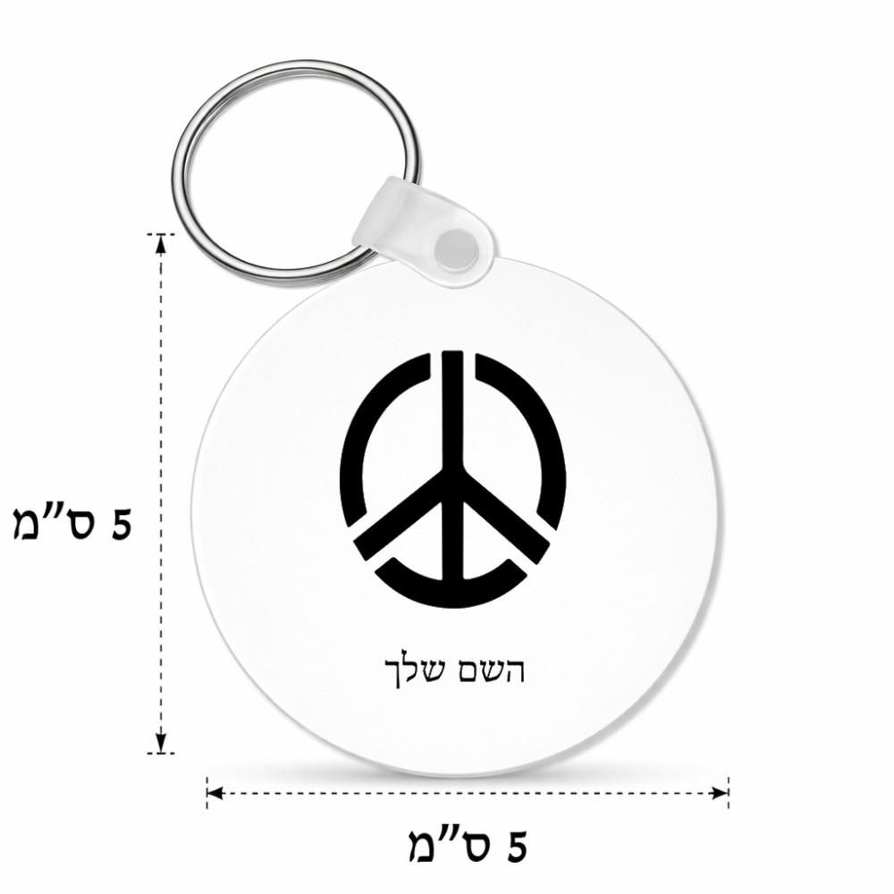 מחזיק מפתחות בצורת עיגול בעיצוב אישי עם השם שלך בעיצוב סמל השלום גודל המחזיק 5 × 5 ס"מ. את השם המבוקש ניתן לציין בהזמנה, אם לא צויין אנחנו ניצור קשר לבירור.