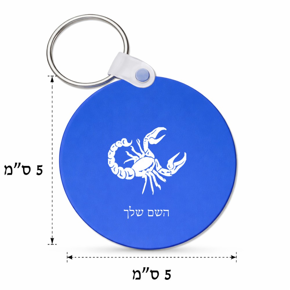 מחזיק מפתחות בצורת עיגול בעיצוב אישי עם השם שלך בעיצוב מזלות - עקרב גודל המחזיק 5 × 5 ס"מ. את השם המבוקש ניתן לציין בהזמנה, אם לא צויין אנחנו ניצור קשר לבירור.