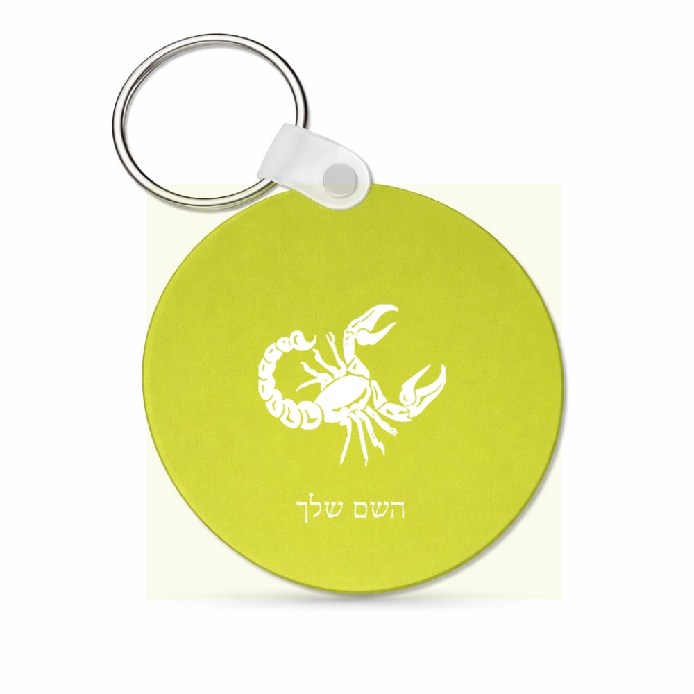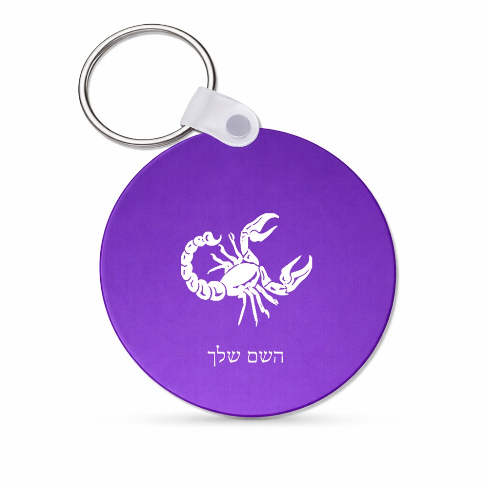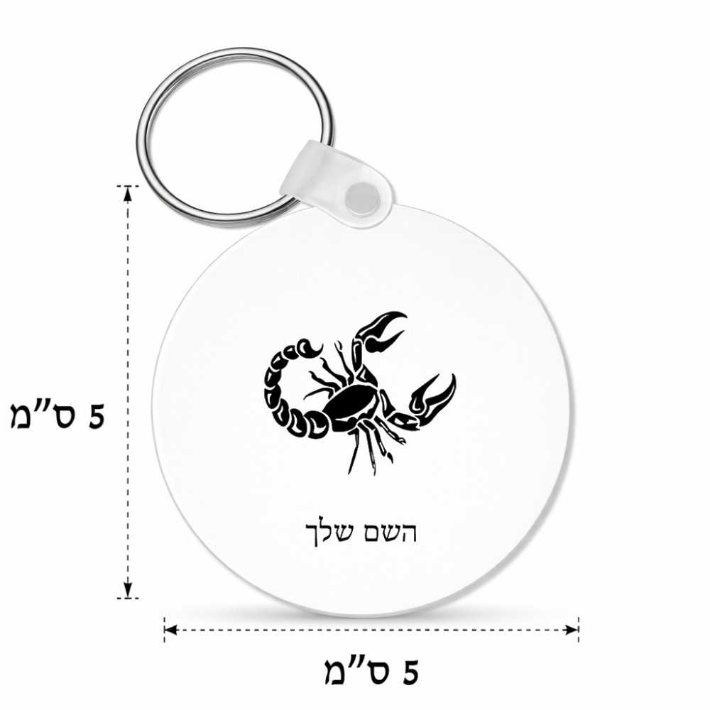 מחזיק מפתחות בצורת עיגול בעיצוב אישי עם השם שלך בעיצוב מזלות - עקרב גודל המחזיק 5 × 5 ס"מ