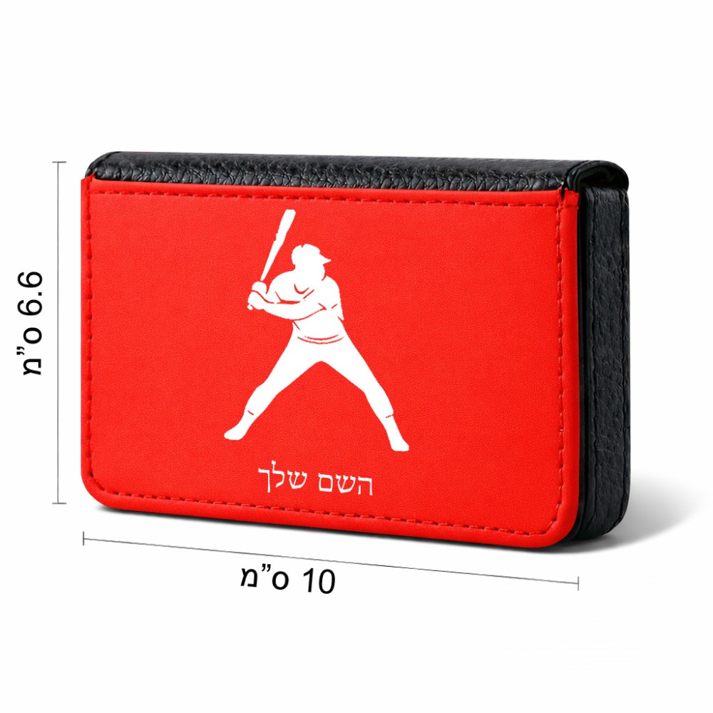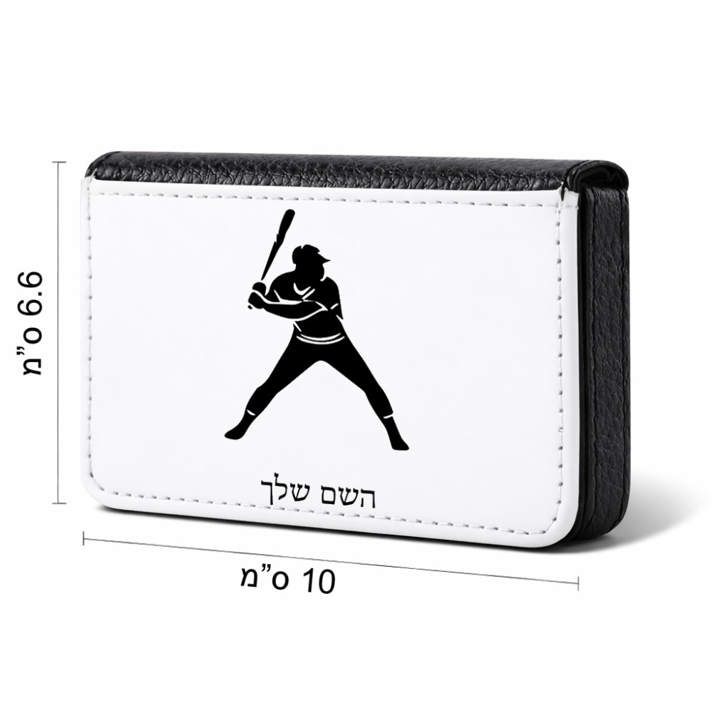 ארנק כרטיסי אשראי בעיצוב אישי עם השם שלך בעיצוב שחקן בייסבול גודל גודל ארנק כרטיסי אשראי 10 × 6.6 ס"מ. את השם המבוקש ניתן לציין בהזמנה, אם לא צויין אנחנו ניצור קשר לבירור.