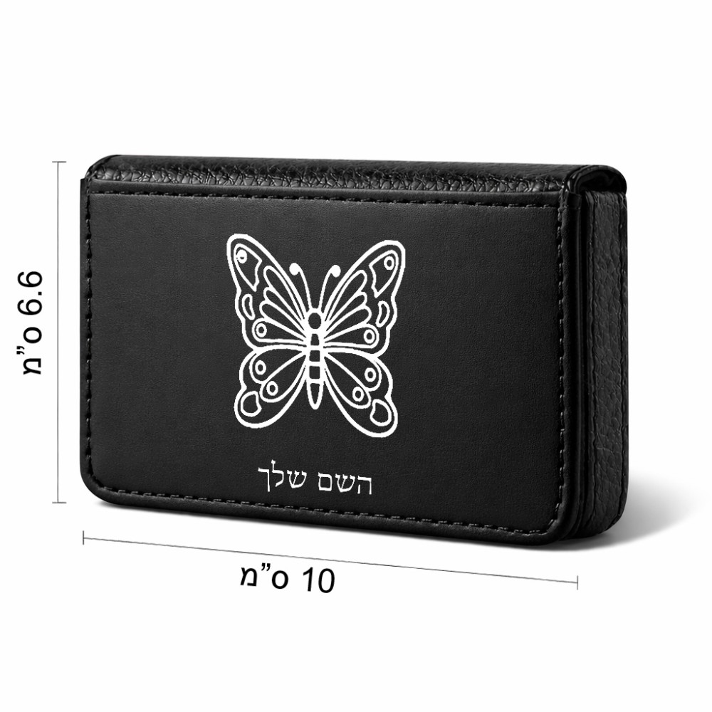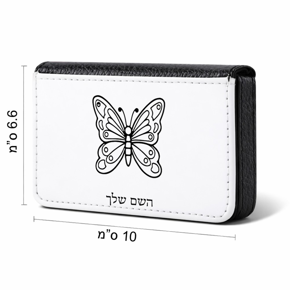 ארנק כרטיסי אשראי בעיצוב אישי עם השם שלך בעיצוב פרפר גודל גודל ארנק כרטיסי אשראי 10 × 6.6 ס"מ. את השם המבוקש ניתן לציין בהזמנה, אם לא צויין אנחנו ניצור קשר לבירור.