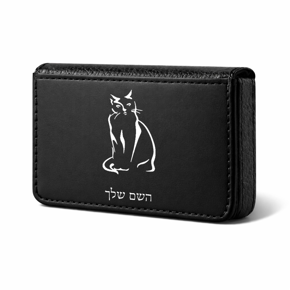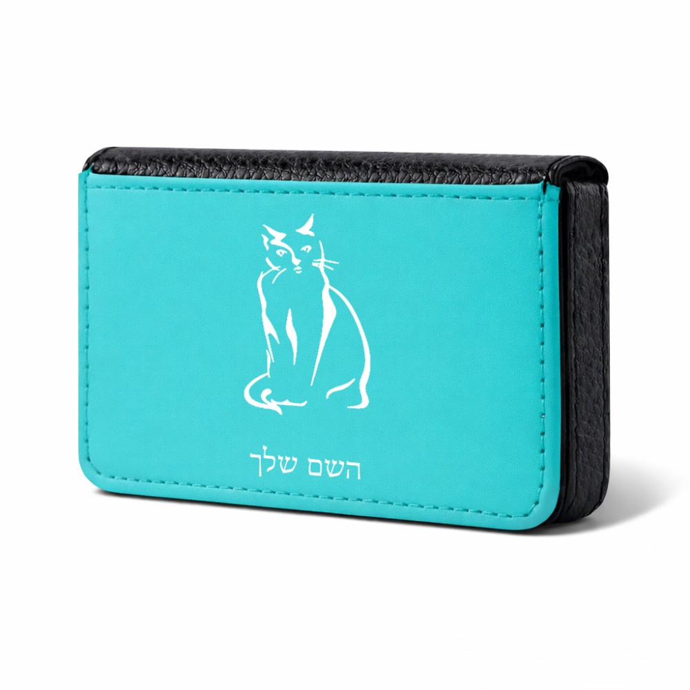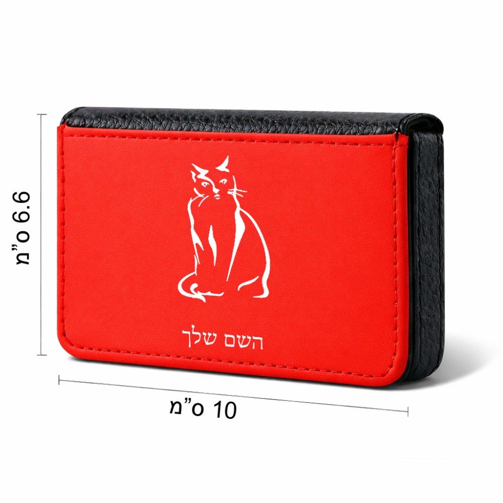 ארנק כרטיסי אשראי בעיצוב אישי עם השם שלך בעיצוב חתול גודל גודל ארנק כרטיסי אשראי 10 × 6.6 ס"מ
