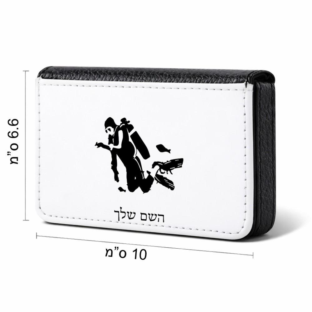 ארנק כרטיסי אשראי בעיצוב אישי עם השם שלך בעיצוב צוללן גודל גודל ארנק כרטיסי אשראי 10 × 6.6 ס"מ. את השם המבוקש ניתן לציין בהזמנה, אם לא צויין אנחנו ניצור קשר לבירור.