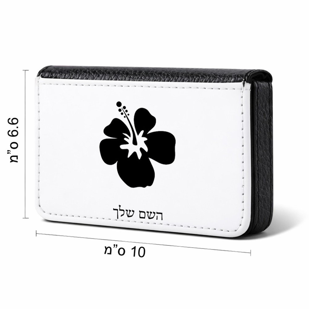 ארנק כרטיסי אשראי בעיצוב אישי עם השם שלך בעיצוב פרח היביסקוס גודל גודל ארנק כרטיסי אשראי 10 × 6.6 ס"מ. את השם המבוקש ניתן לציין בהזמנה, אם לא צויין אנחנו ניצור קשר לבירור.