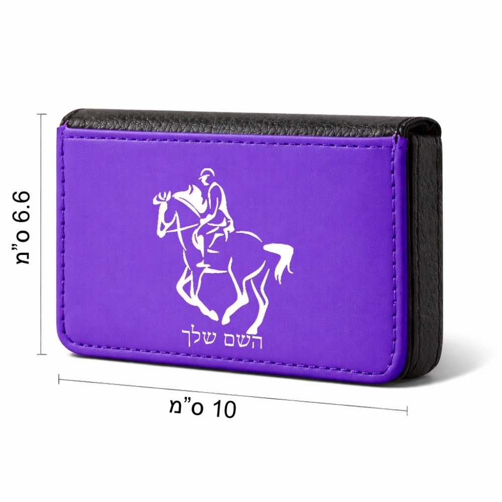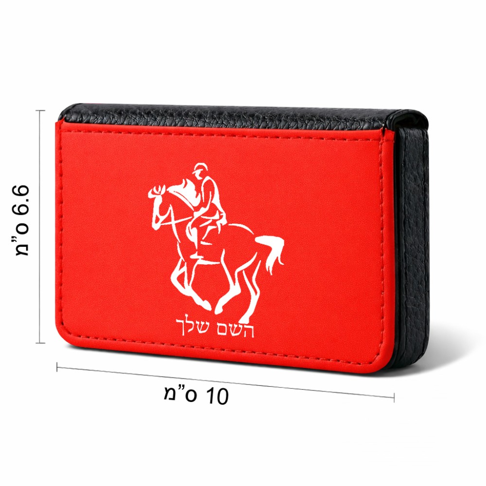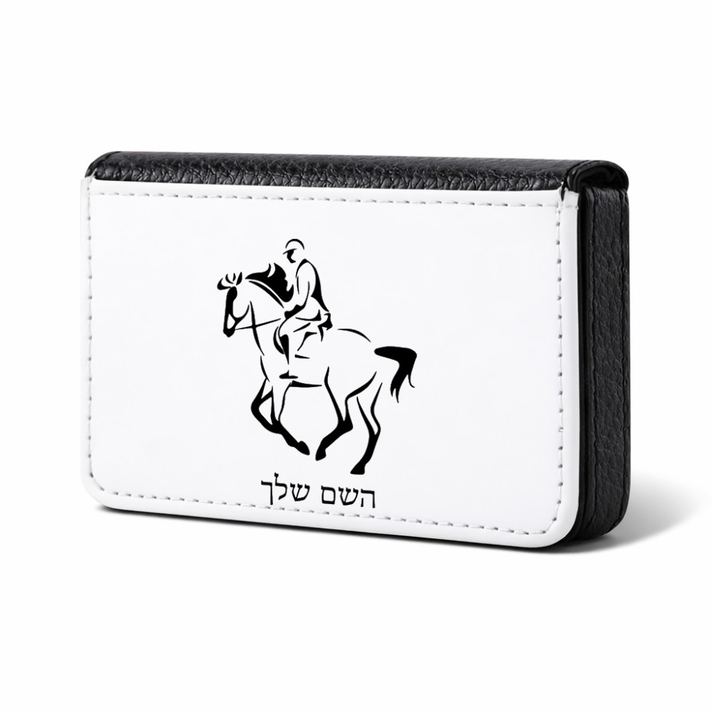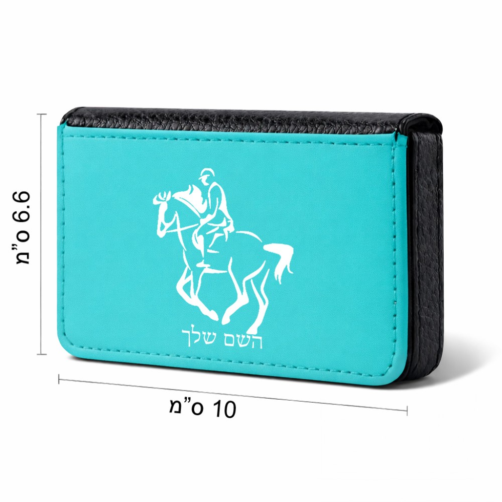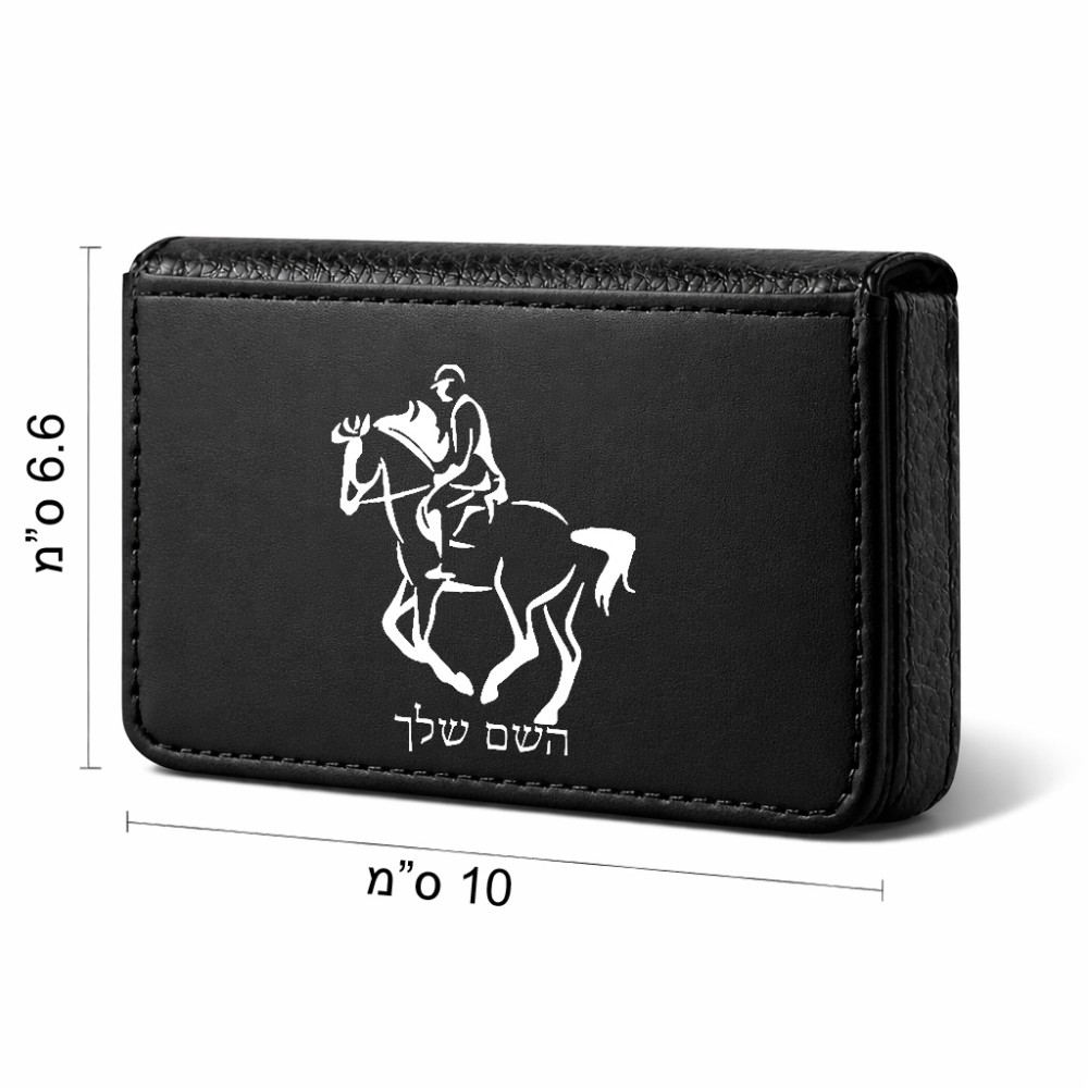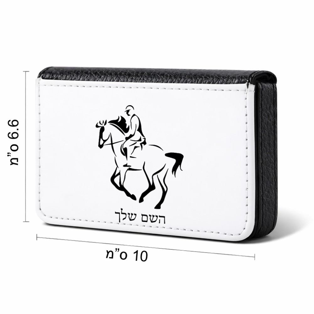 ארנק כרטיסי אשראי בעיצוב אישי עם השם שלך בעיצוב רוכב סוסים 2 גודל גודל ארנק כרטיסי אשראי 10 × 6.6 ס"מ. את השם המבוקש ניתן לציין בהזמנה, אם לא צויין אנחנו ניצור קשר לבירור.