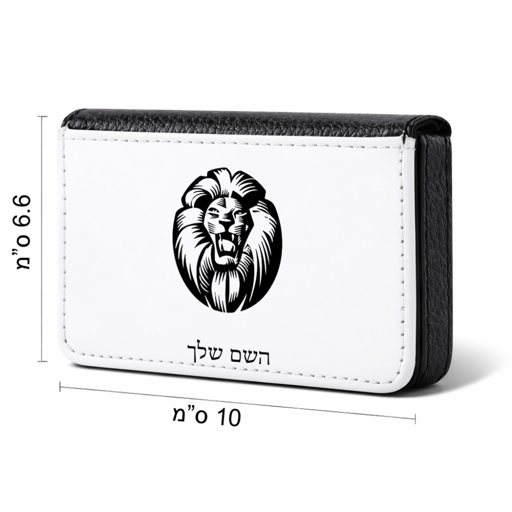 ארנק כרטיסי אשראי בעיצוב אישי עם השם שלך בעיצוב פני אריה גודל גודל ארנק כרטיסי אשראי 10 × 6.6 ס"מ. את השם המבוקש ניתן לציין בהזמנה, אם לא צויין אנחנו ניצור קשר לבירור.