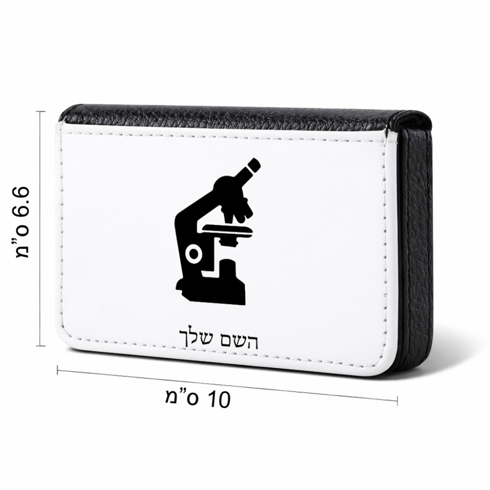 ארנק כרטיסי אשראי בעיצוב אישי עם השם שלך בעיצוב מיקרוסקופ גודל גודל ארנק כרטיסי אשראי 10 × 6.6 ס"מ. את השם המבוקש ניתן לציין בהזמנה, אם לא צויין אנחנו ניצור קשר לבירור.