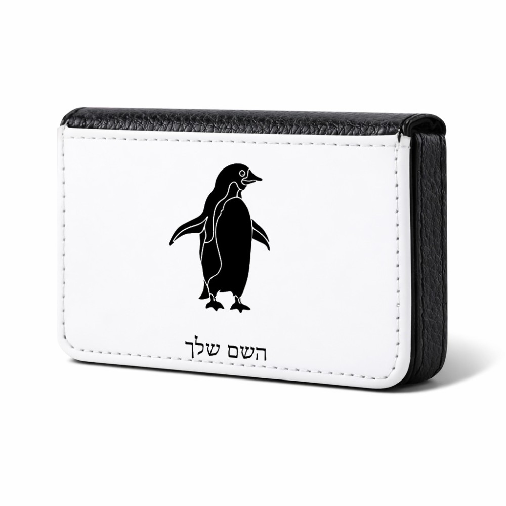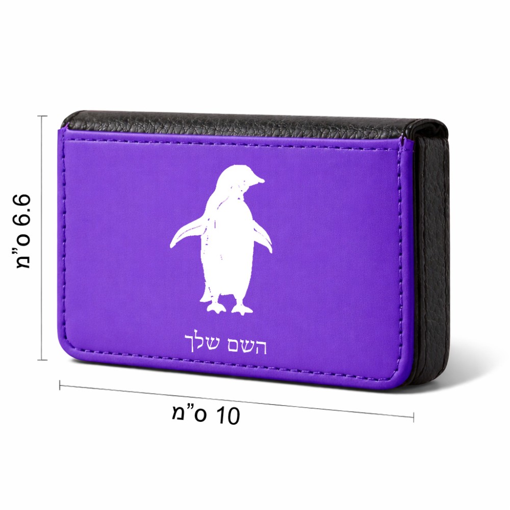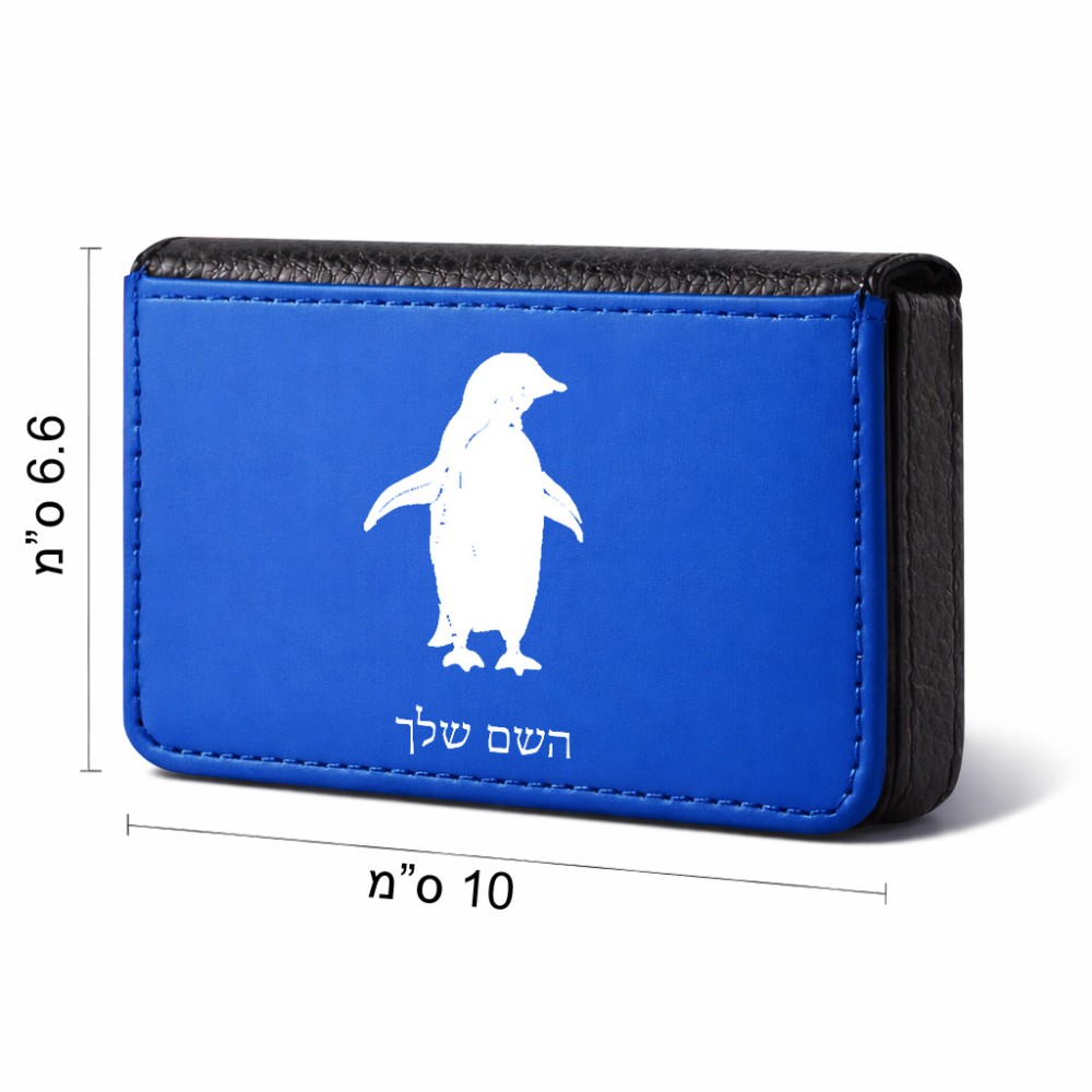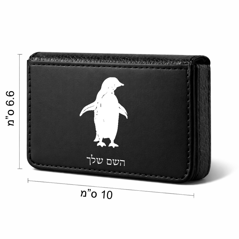 ארנק כרטיסי אשראי בעיצוב אישי עם השם שלך בעיצוב פינגווין גודל גודל ארנק כרטיסי אשראי 10 × 6.6 ס"מ. את השם המבוקש ניתן לציין בהזמנה, אם לא צויין אנחנו ניצור קשר לבירור.