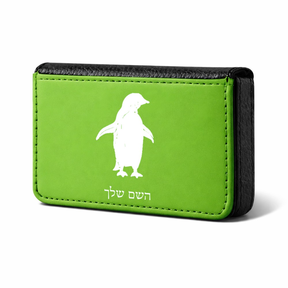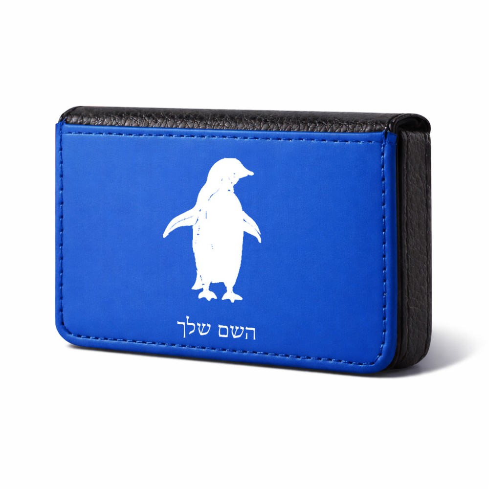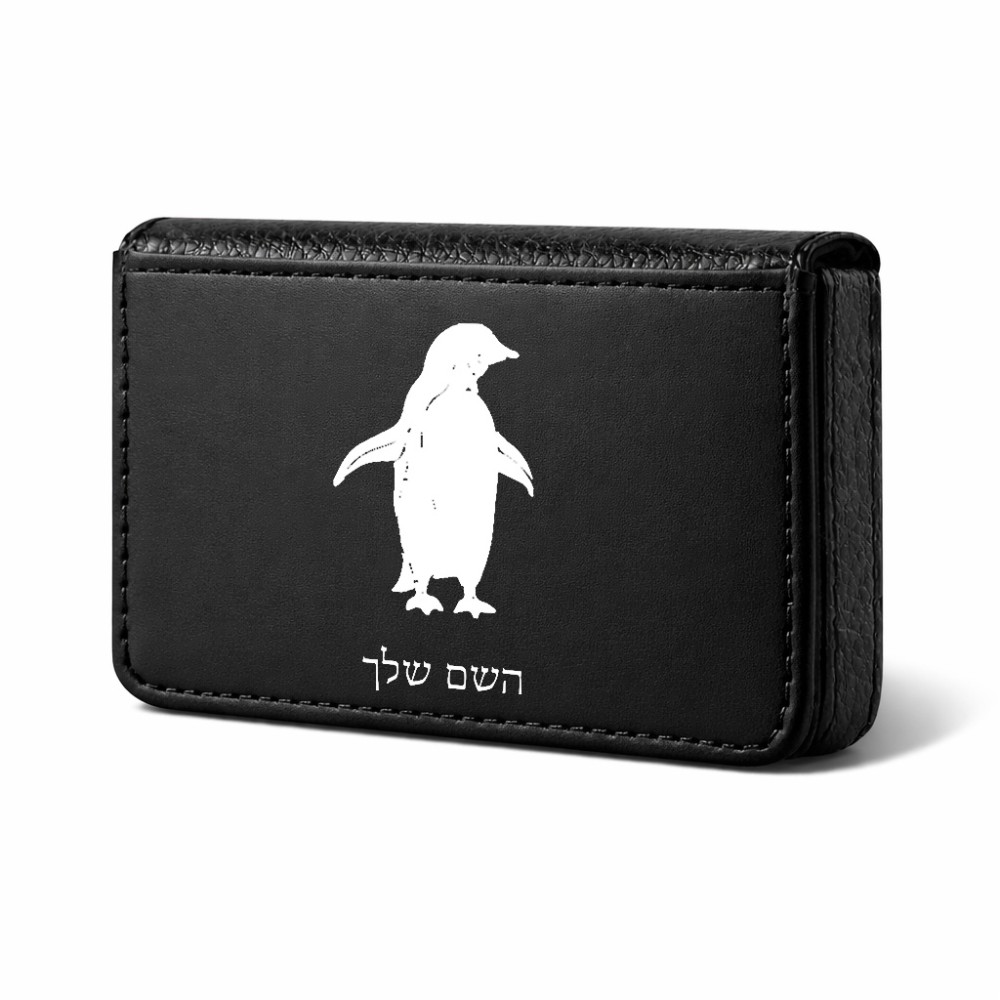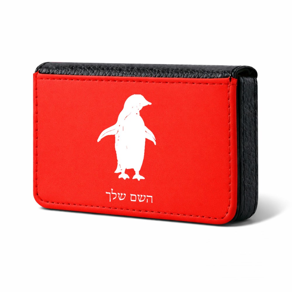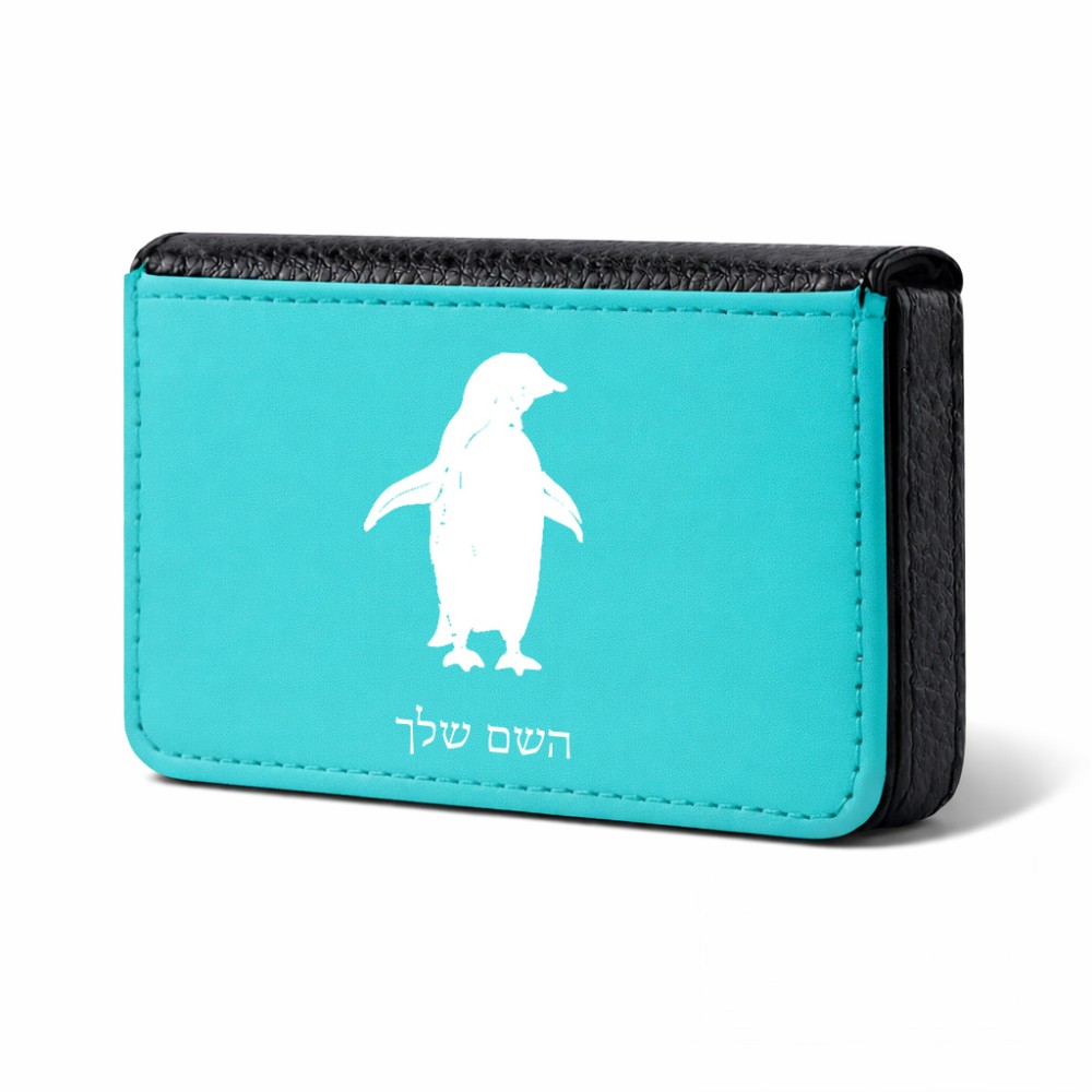 ארנק כרטיסי אשראי בעיצוב אישי עם השם שלך בעיצוב פינגווין גודל גודל ארנק כרטיסי אשראי 10 × 6.6 ס"מ. את השם המבוקש ניתן לציין בהזמנה, אם לא צויין אנחנו ניצור קשר לבירור.