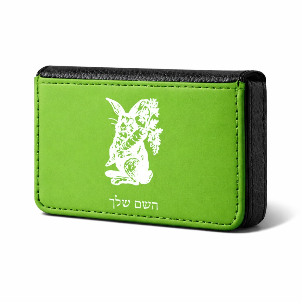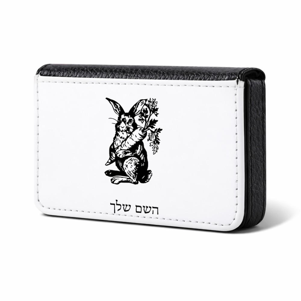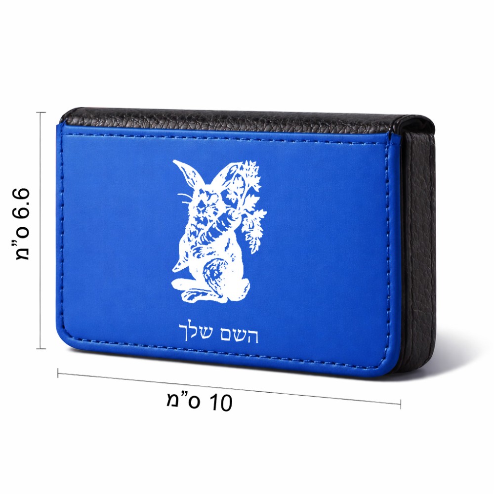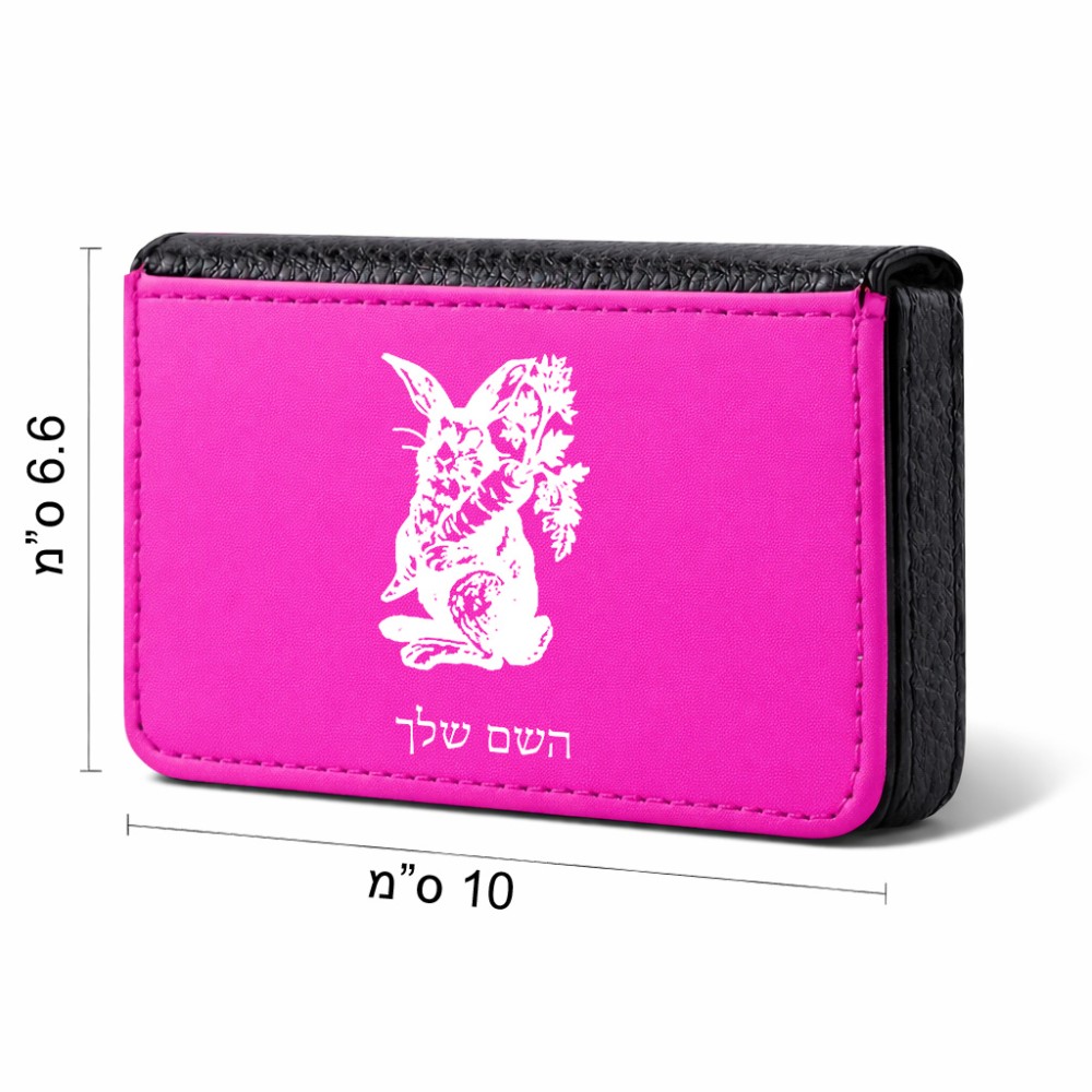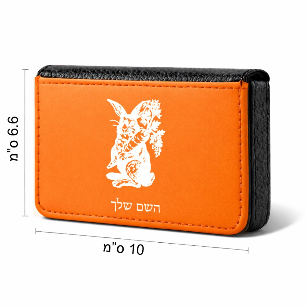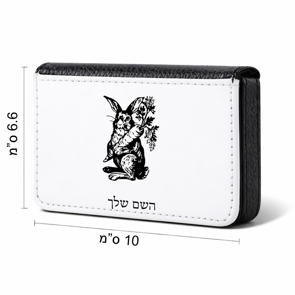 ארנק כרטיסי אשראי בעיצוב אישי עם השם שלך בעיצוב ארנב מחזיק גזר גודל גודל ארנק כרטיסי אשראי 10 × 6.6 ס"מ. את השם המבוקש ניתן לציין בהזמנה, אם לא צויין אנחנו ניצור קשר לבירור.