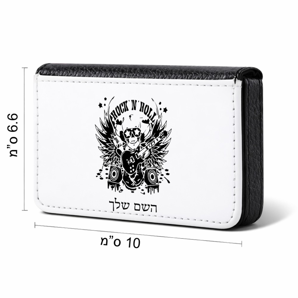 ארנק כרטיסי אשראי בעיצוב אישי עם השם שלך בעיצוב רוקנרול גודל גודל ארנק כרטיסי אשראי 10 × 6.6 ס"מ. את השם המבוקש ניתן לציין בהזמנה, אם לא צויין אנחנו ניצור קשר לבירור.
