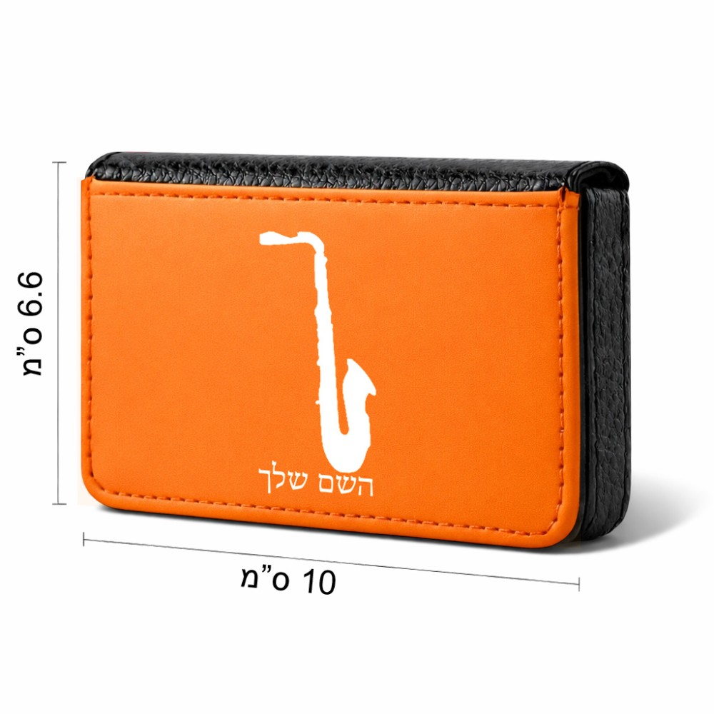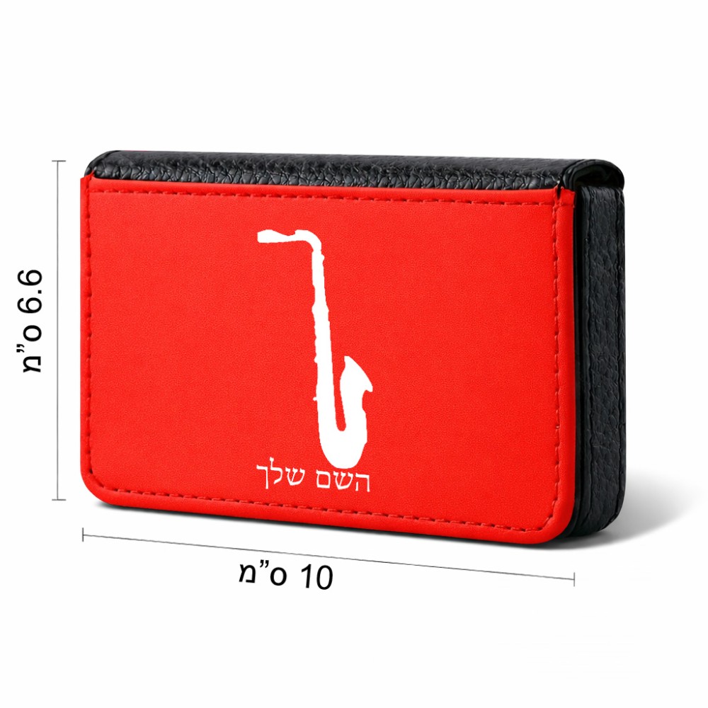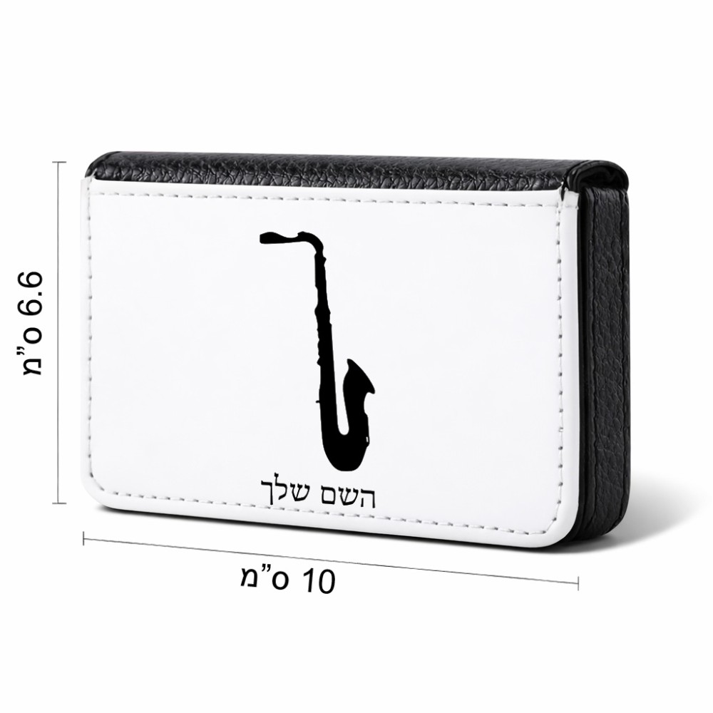 ארנק כרטיסי אשראי בעיצוב אישי עם השם שלך בעיצוב סקסופון גודל גודל ארנק כרטיסי אשראי 10 × 6.6 ס"מ