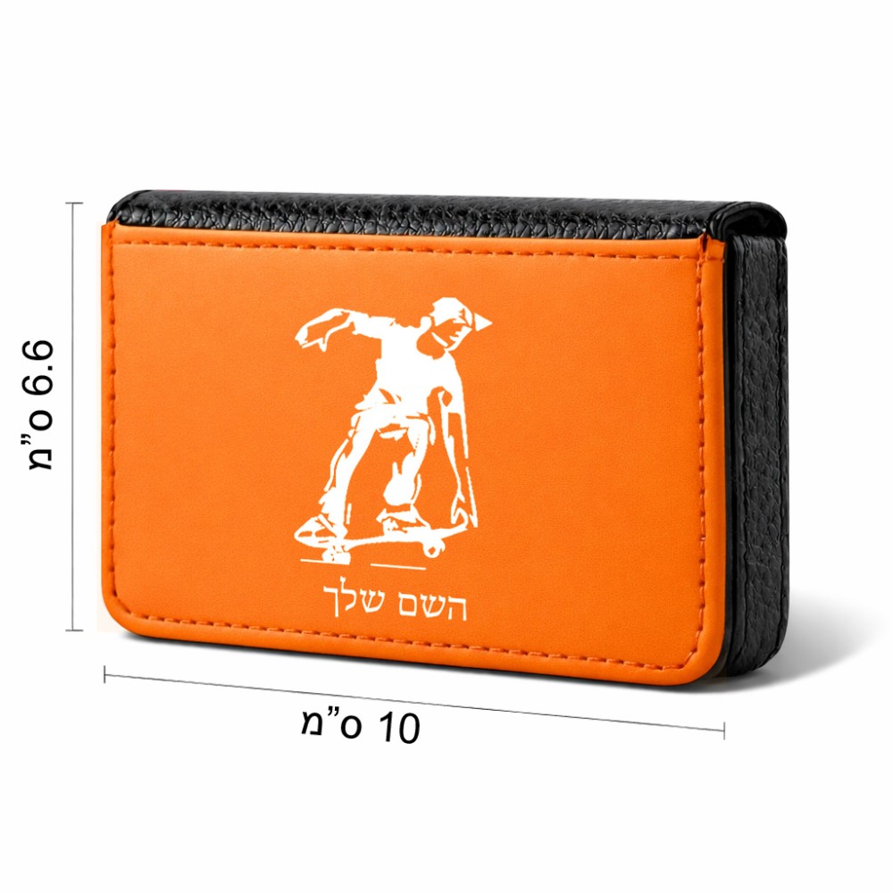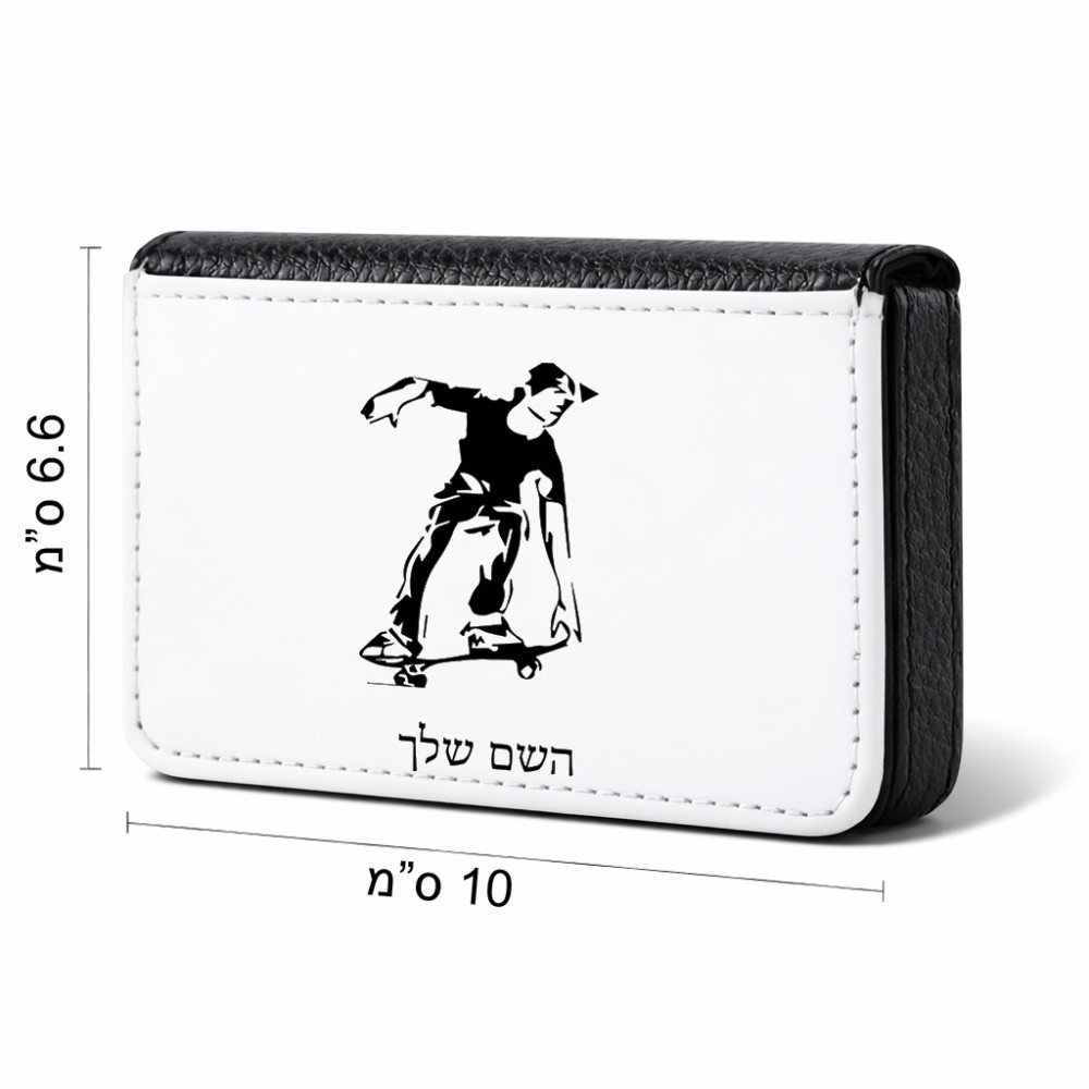 ארנק כרטיסי אשראי בעיצוב אישי עם השם שלך בעיצוב ילד סקייטבורד גודל גודל ארנק כרטיסי אשראי 10 × 6.6 ס"מ. את השם המבוקש ניתן לציין בהזמנה, אם לא צויין אנחנו ניצור קשר לבירור.