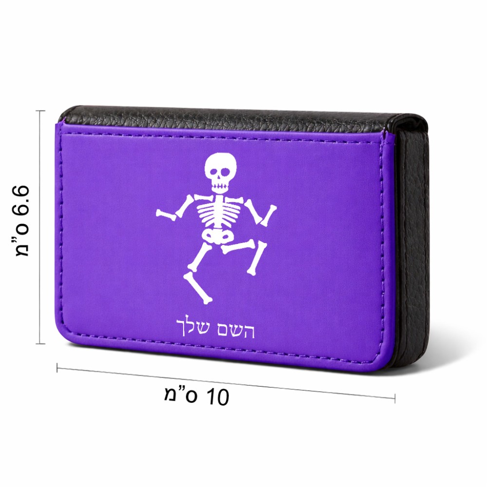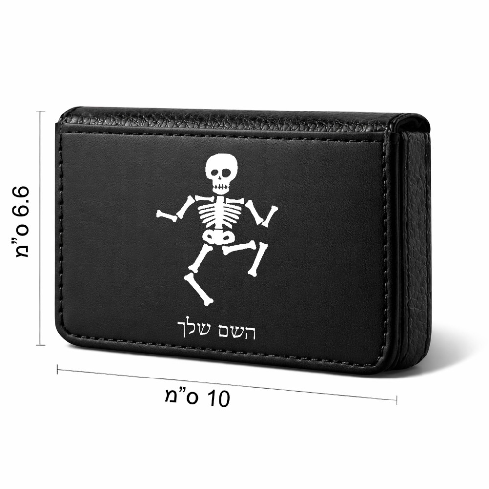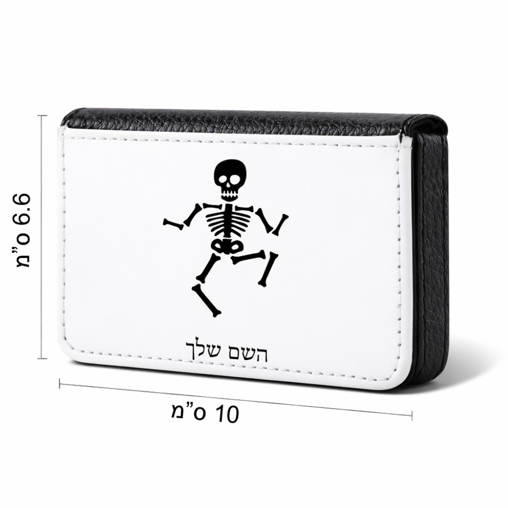ארנק כרטיסי אשראי בעיצוב אישי עם השם שלך בעיצוב סקלטון גודל גודל ארנק כרטיסי אשראי 10 × 6.6 ס"מ. את השם המבוקש ניתן לציין בהזמנה, אם לא צויין אנחנו ניצור קשר לבירור.