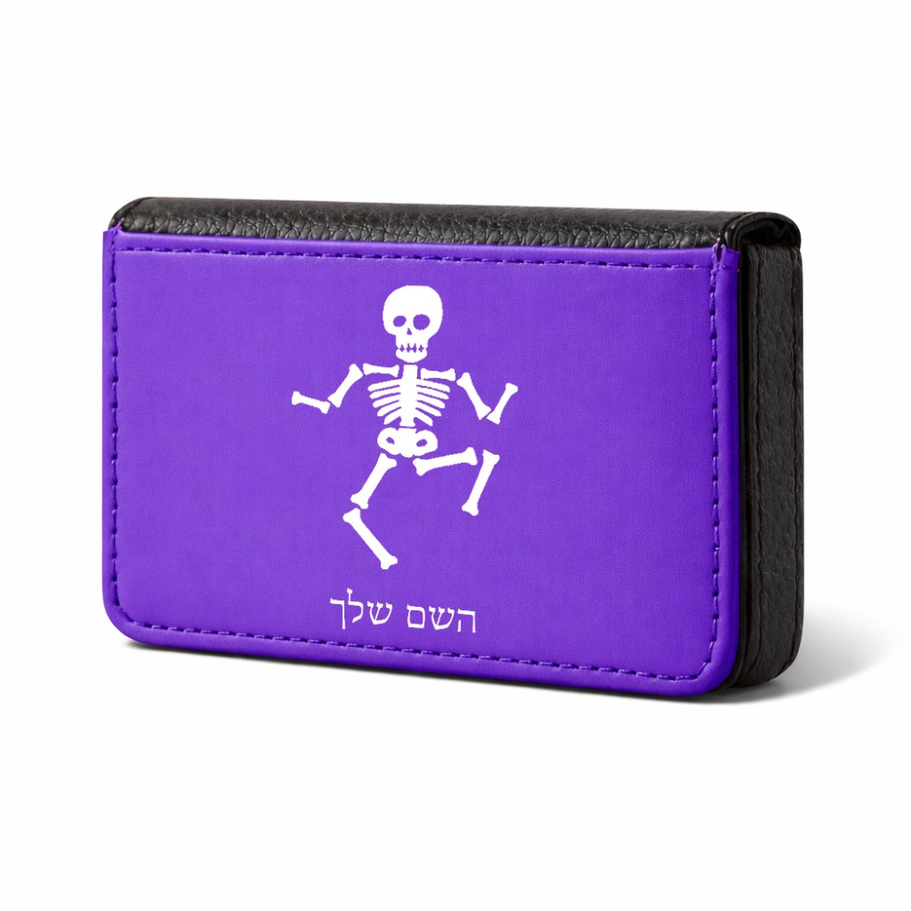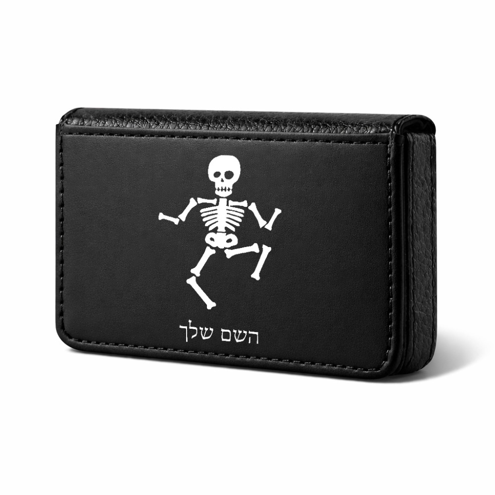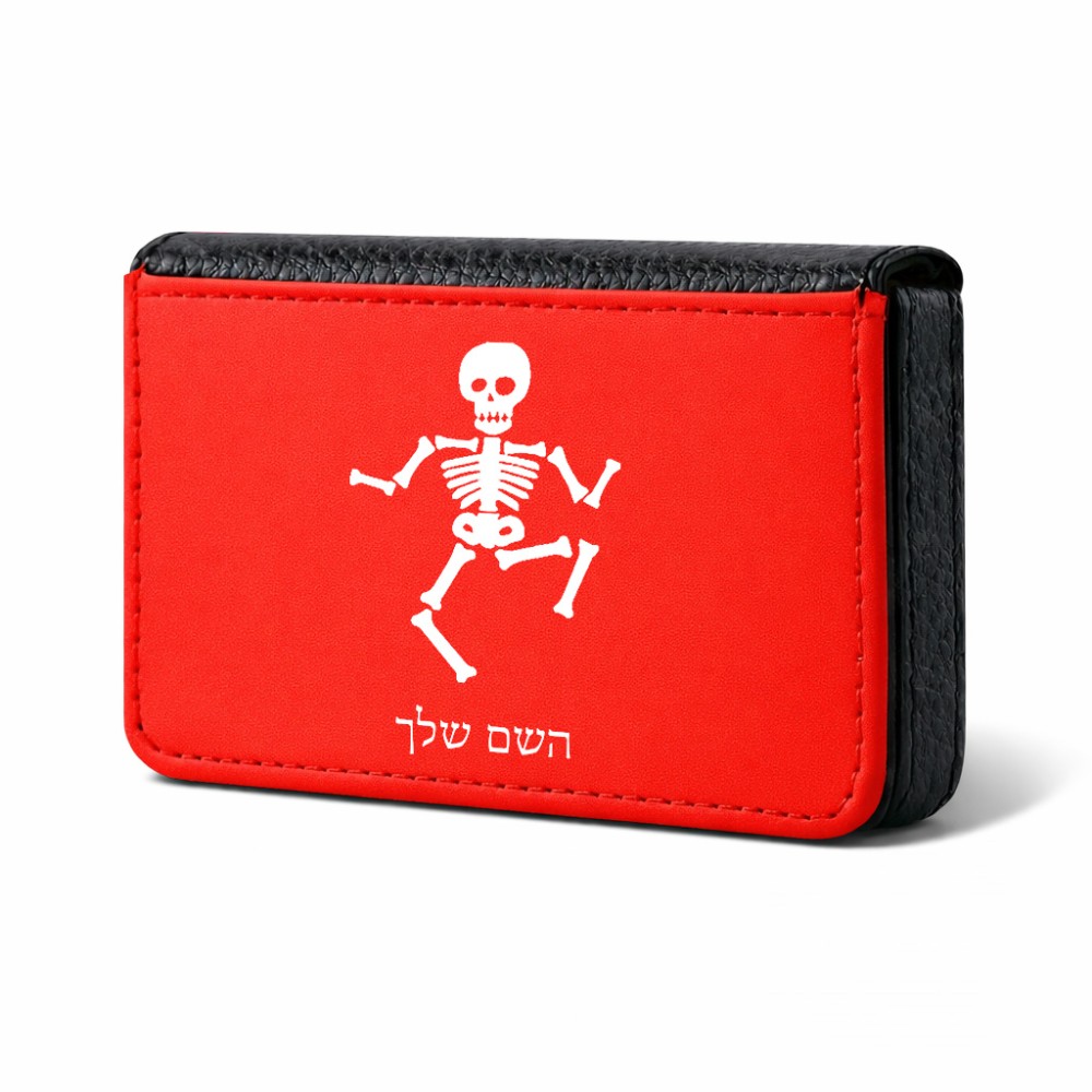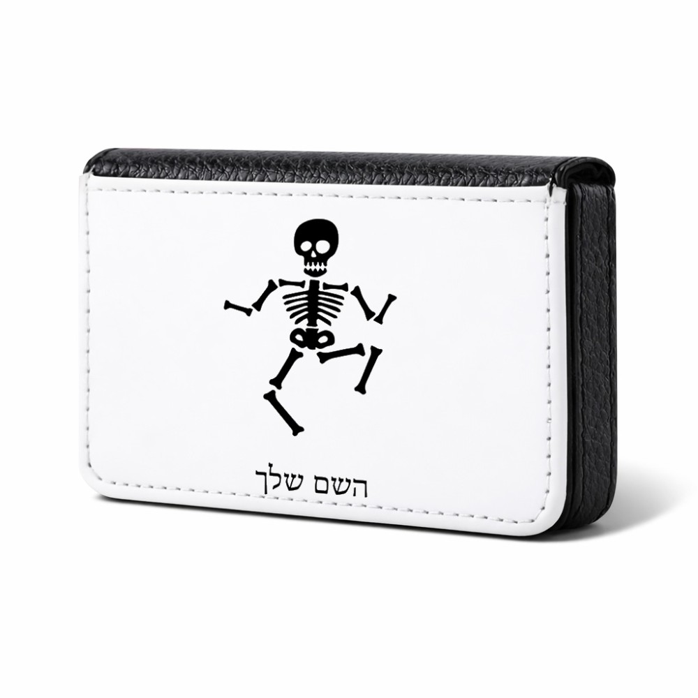 ארנק כרטיסי אשראי בעיצוב אישי עם השם שלך בעיצוב סקלטון גודל גודל ארנק כרטיסי אשראי 10 × 6.6 ס"מ. את השם המבוקש ניתן לציין בהזמנה, אם לא צויין אנחנו ניצור קשר לבירור.