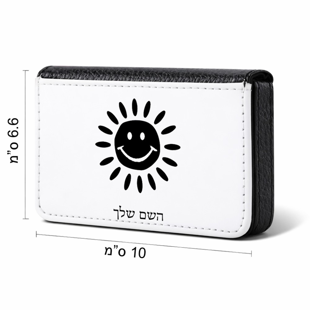 ארנק כרטיסי אשראי בעיצוב אישי עם השם שלך בעיצוב שמש גודל גודל ארנק כרטיסי אשראי 10 × 6.6 ס"מ. את השם המבוקש ניתן לציין בהזמנה, אם לא צויין אנחנו ניצור קשר לבירור.