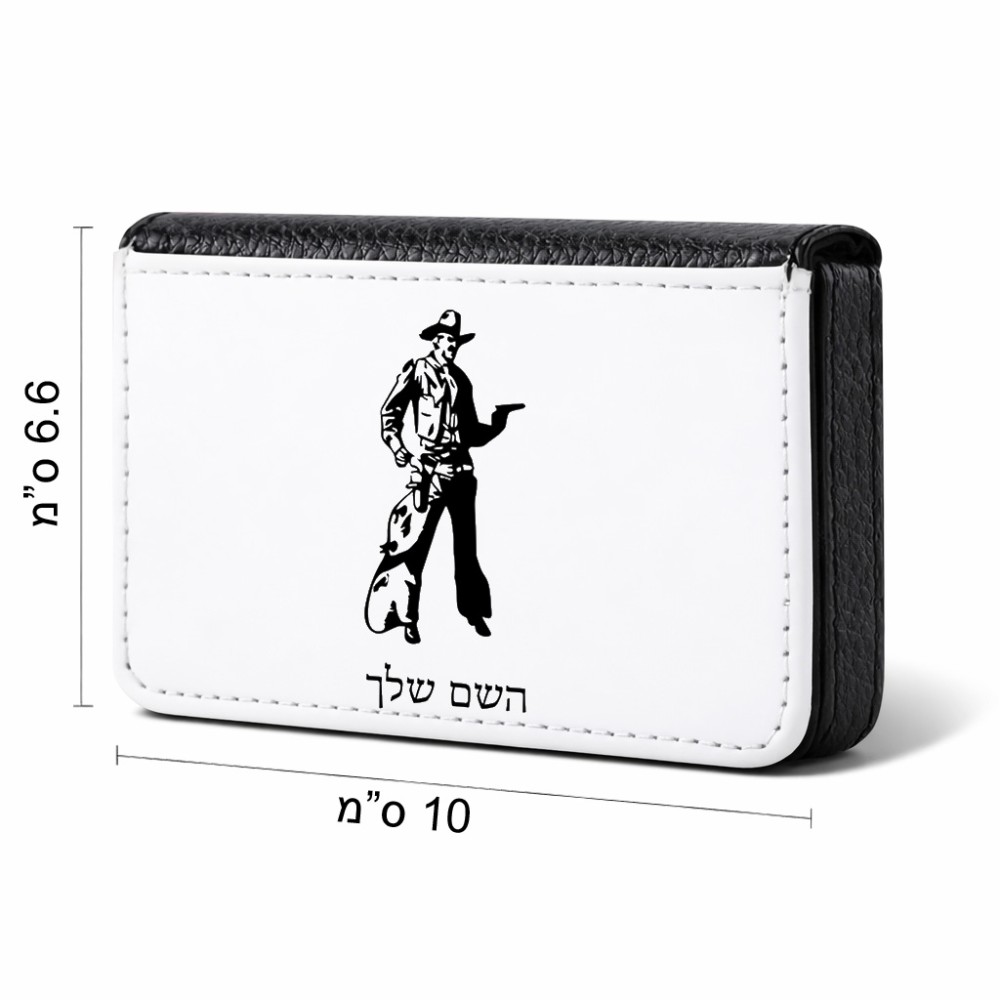 ארנק כרטיסי אשראי בעיצוב אישי עם השם שלך בעיצוב קאובוי המערב הפרוע גודל גודל ארנק כרטיסי אשראי 10 × 6.6 ס"מ. את השם המבוקש ניתן לציין בהזמנה, אם לא צויין אנחנו ניצור קשר לבירור.