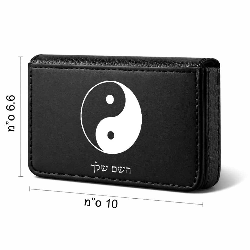 ארנק כרטיסי אשראי בעיצוב אישי עם השם שלך בעיצוב סמל יינג יאנג גודל גודל ארנק כרטיסי אשראי 10 × 6.6 ס"מ. את השם המבוקש ניתן לציין בהזמנה, אם לא צויין אנחנו ניצור קשר לבירור.
