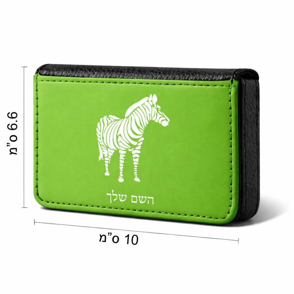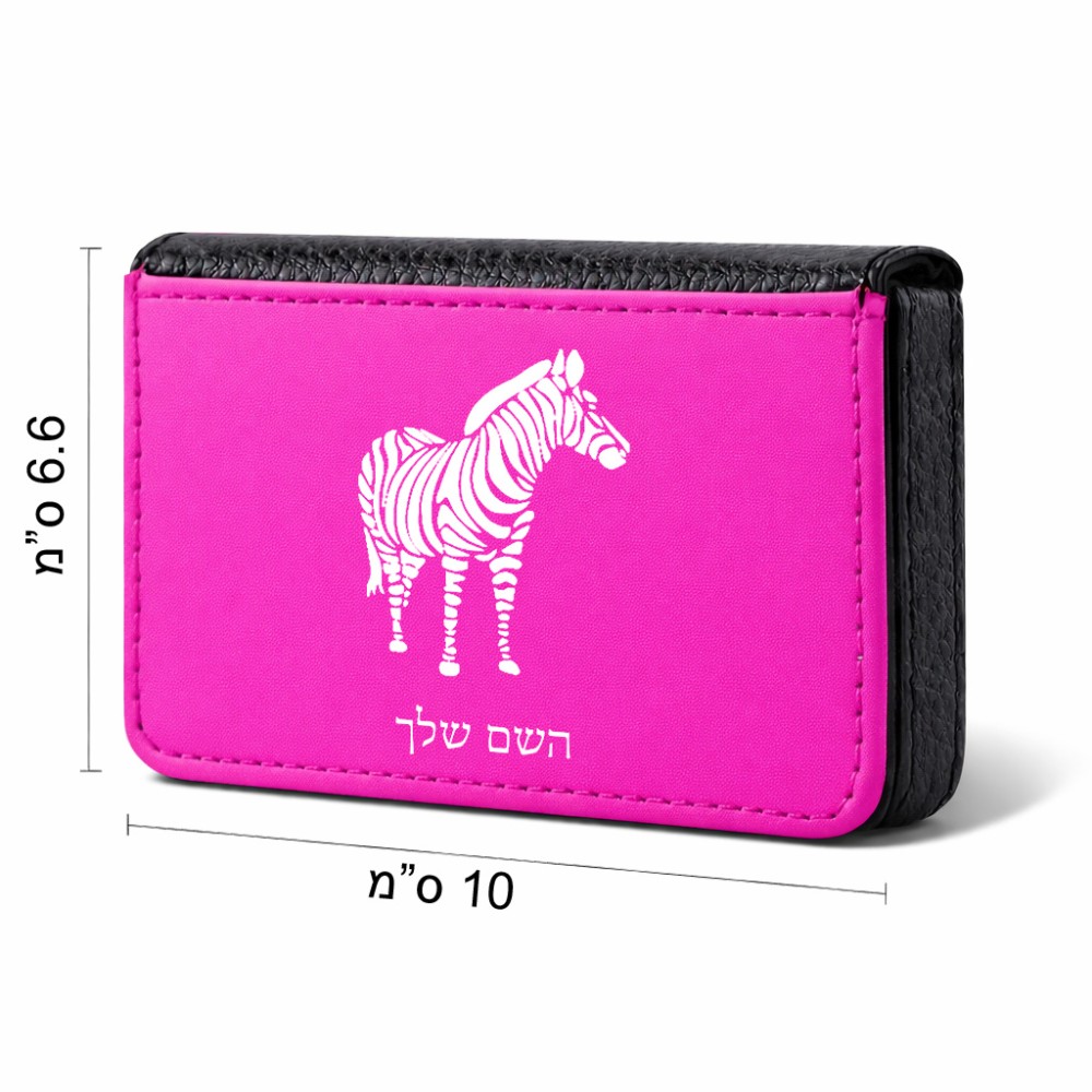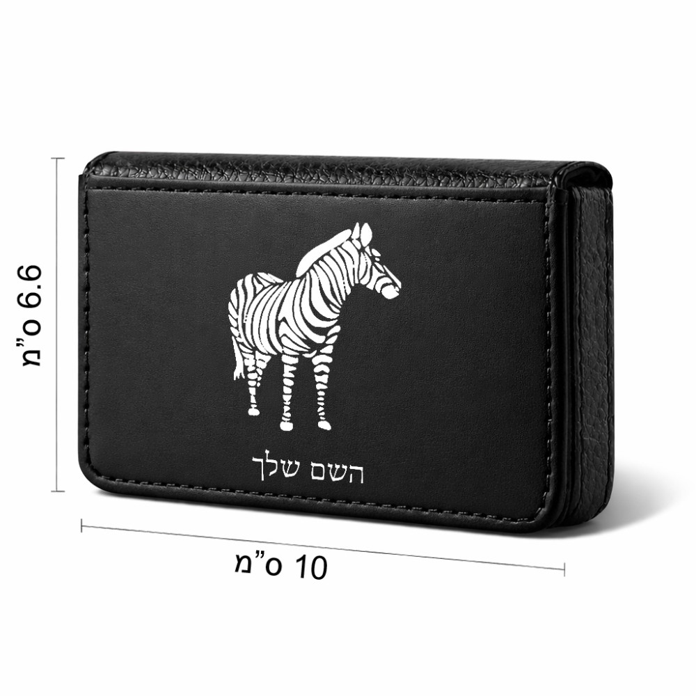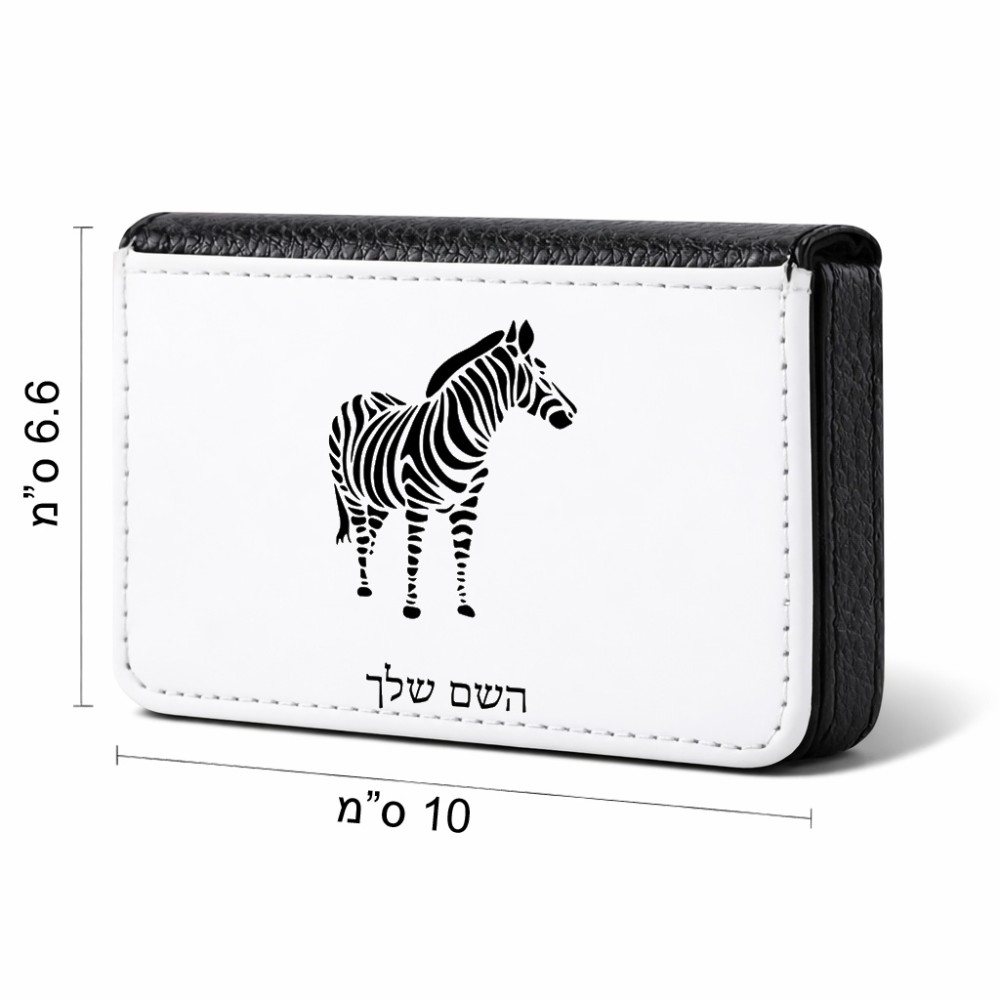 ארנק כרטיסי אשראי בעיצוב אישי עם השם שלך בעיצוב זברה גודל גודל ארנק כרטיסי אשראי 10 × 6.6 ס"מ. את השם המבוקש ניתן לציין בהזמנה, אם לא צויין אנחנו ניצור קשר לבירור.