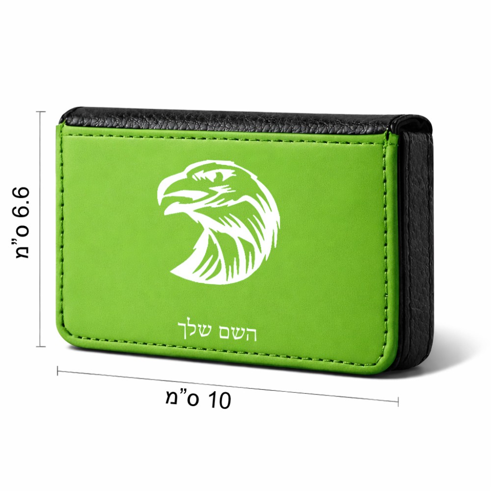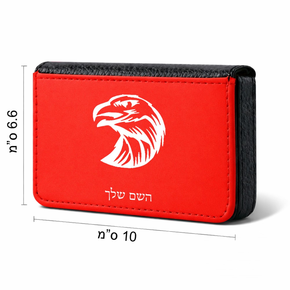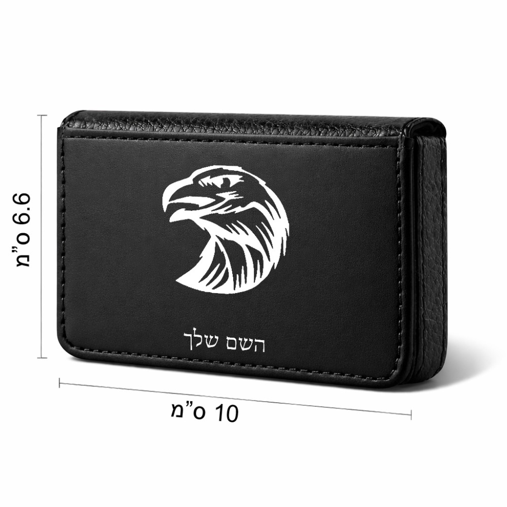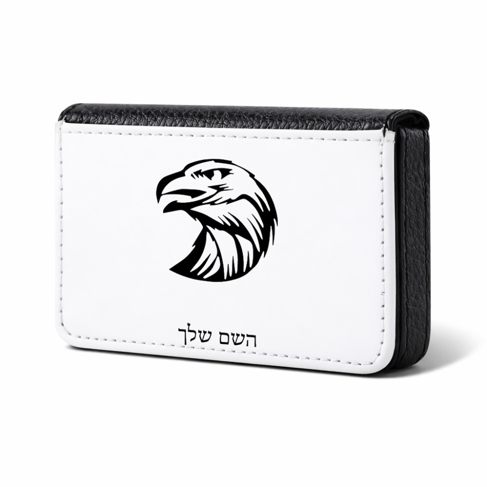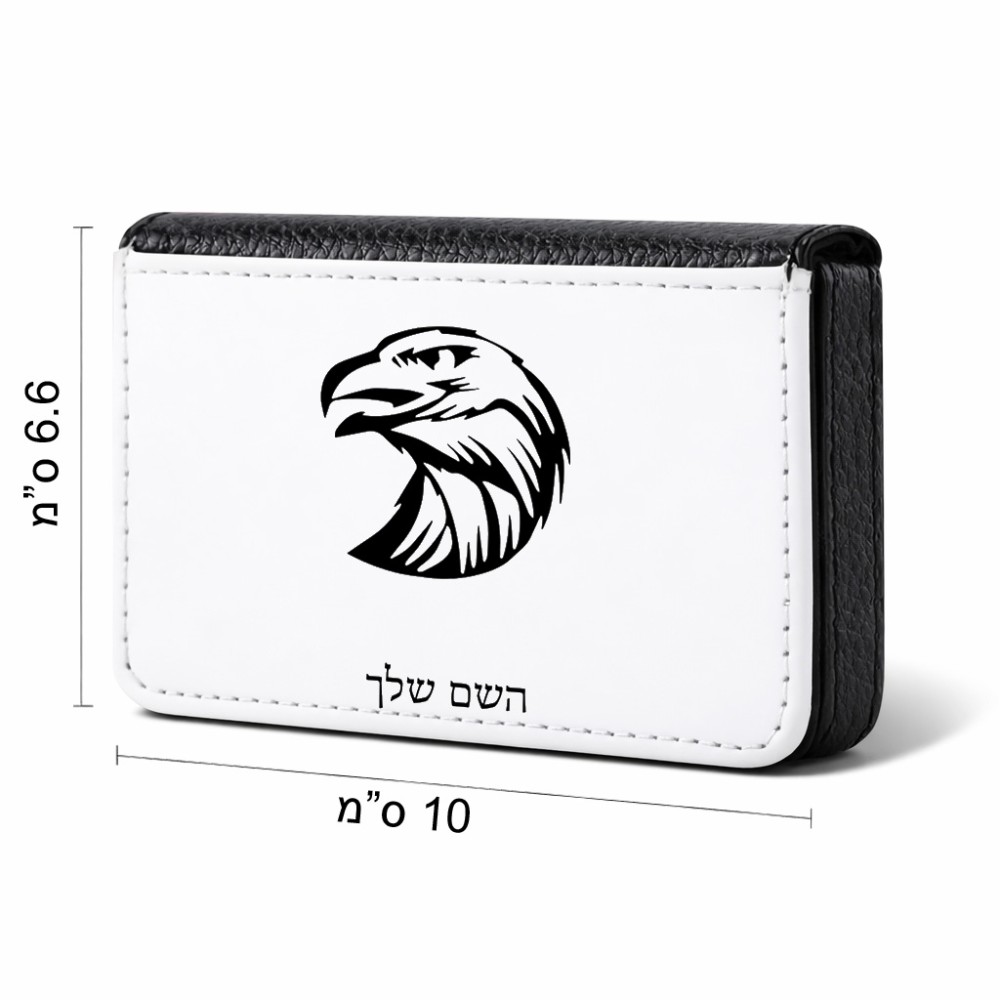 ארנק כרטיסי אשראי בעיצוב אישי עם השם שלך בעיצוב ראש נשר גודל גודל ארנק כרטיסי אשראי 10 × 6.6 ס"מ. את השם המבוקש ניתן לציין בהזמנה, אם לא צויין אנחנו ניצור קשר לבירור.