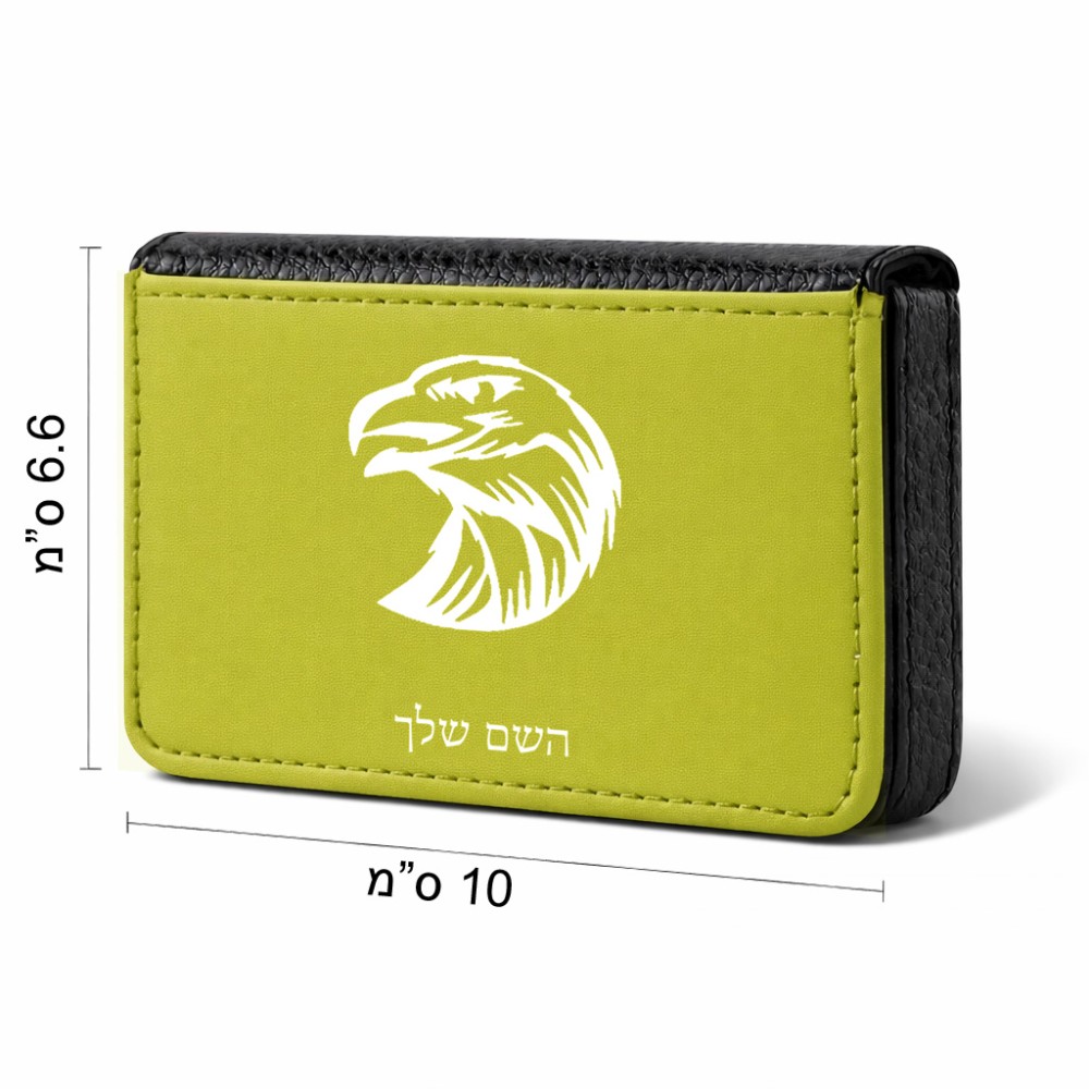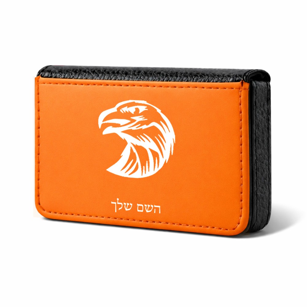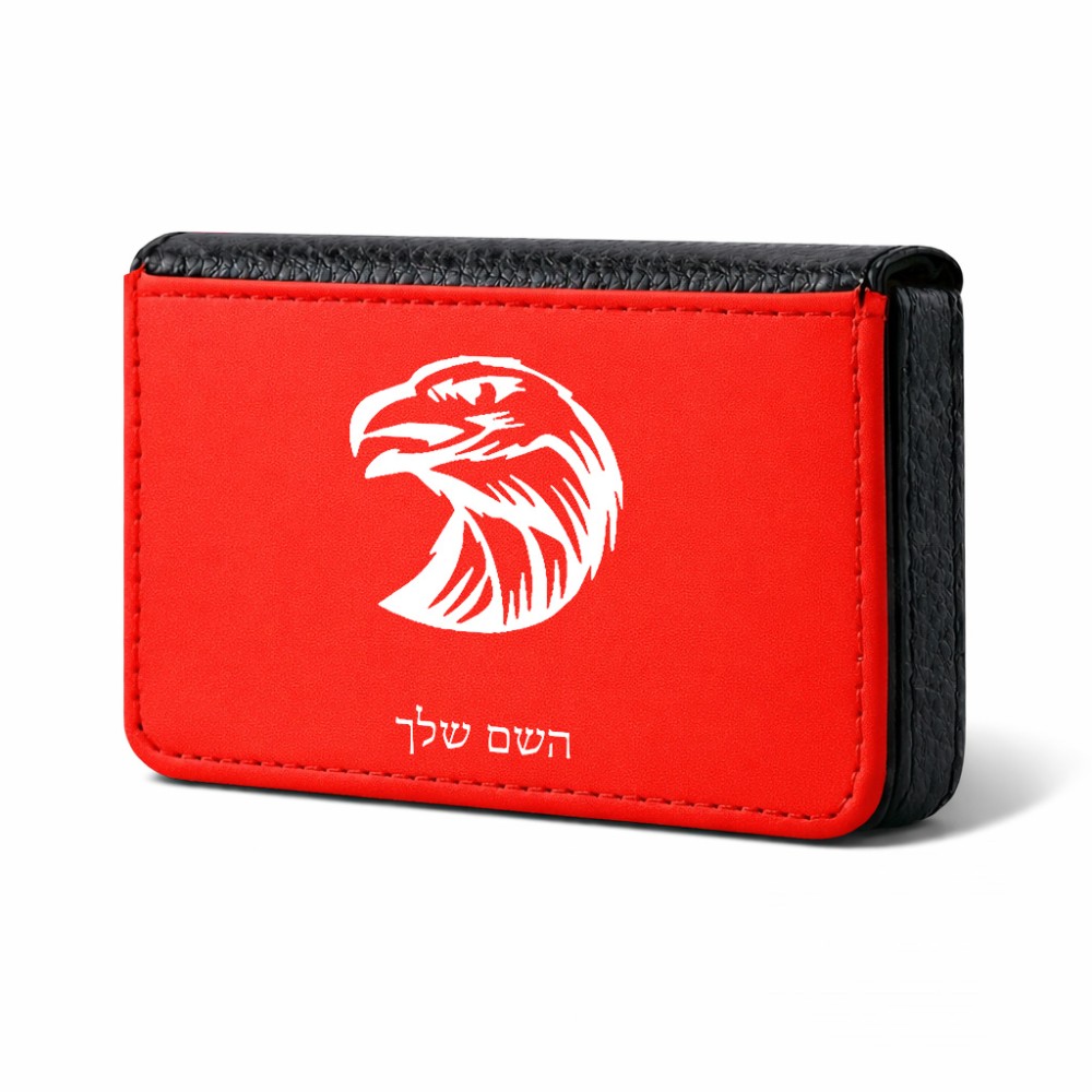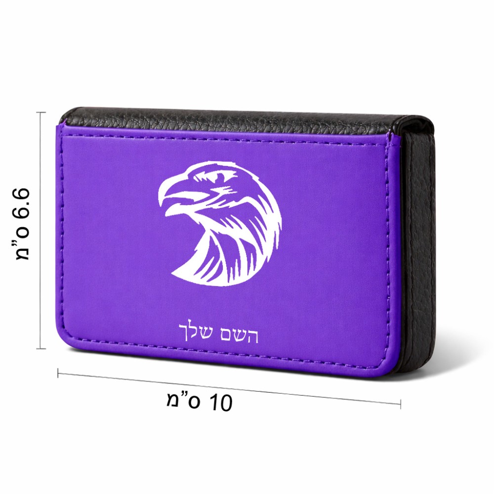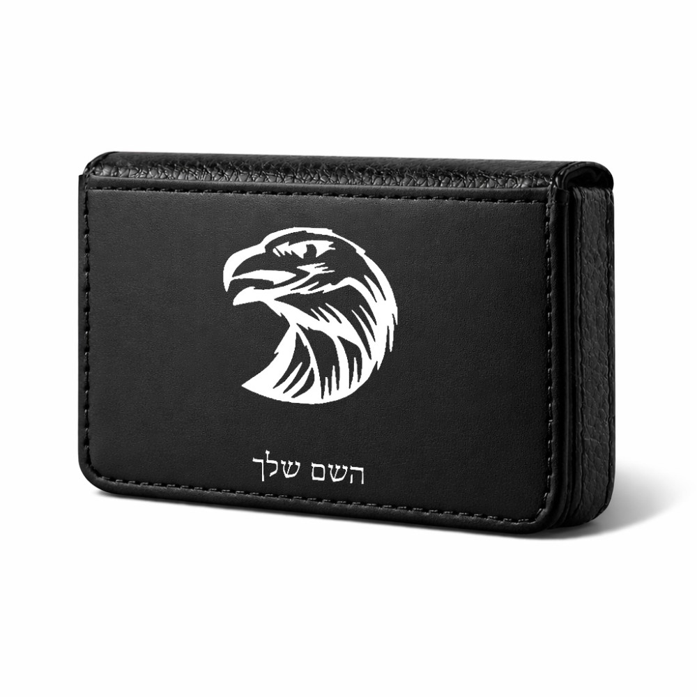 ארנק כרטיסי אשראי בעיצוב אישי עם השם שלך בעיצוב ראש נשר גודל גודל ארנק כרטיסי אשראי 10 × 6.6 ס"מ. את השם המבוקש ניתן לציין בהזמנה, אם לא צויין אנחנו ניצור קשר לבירור.